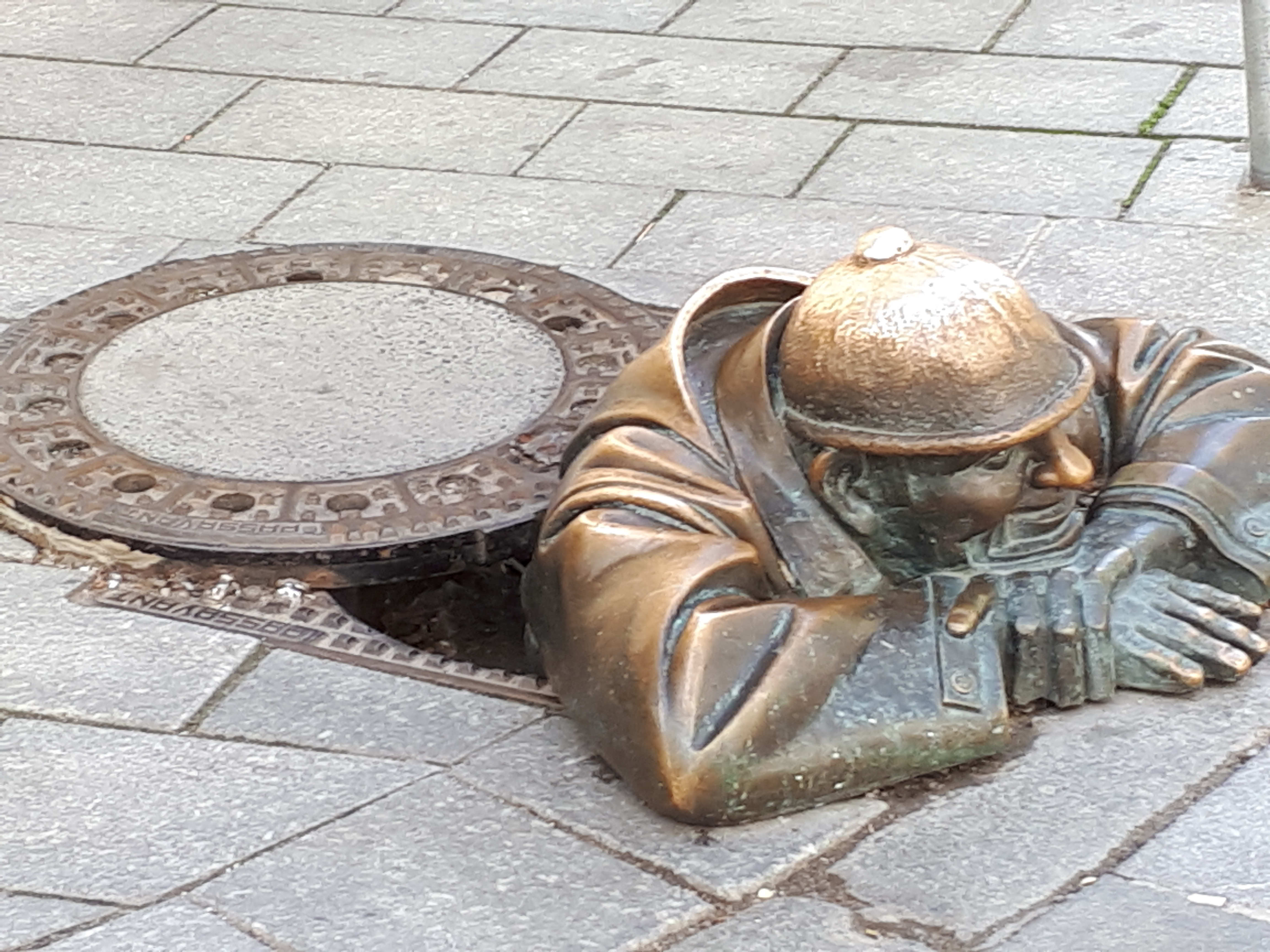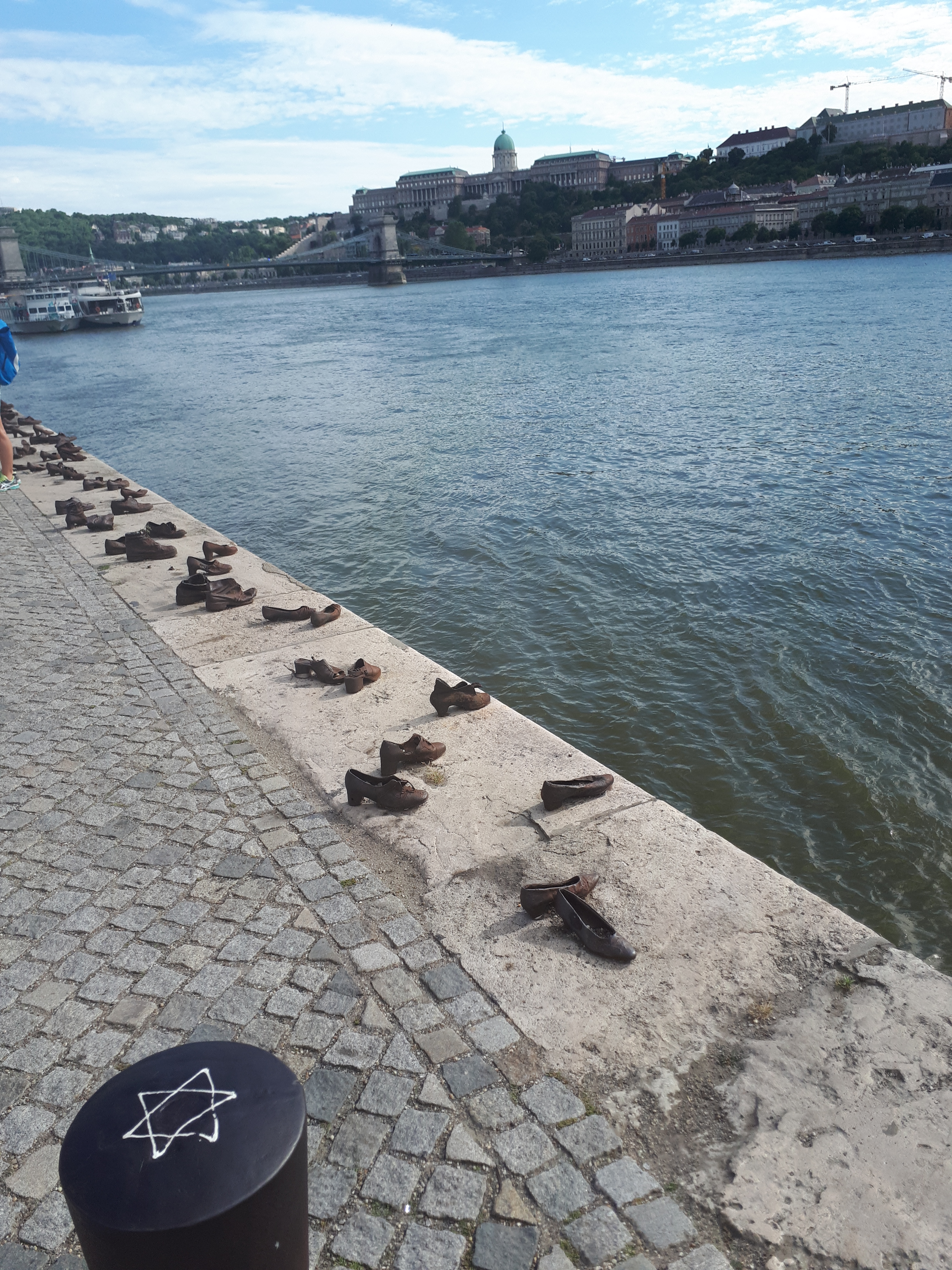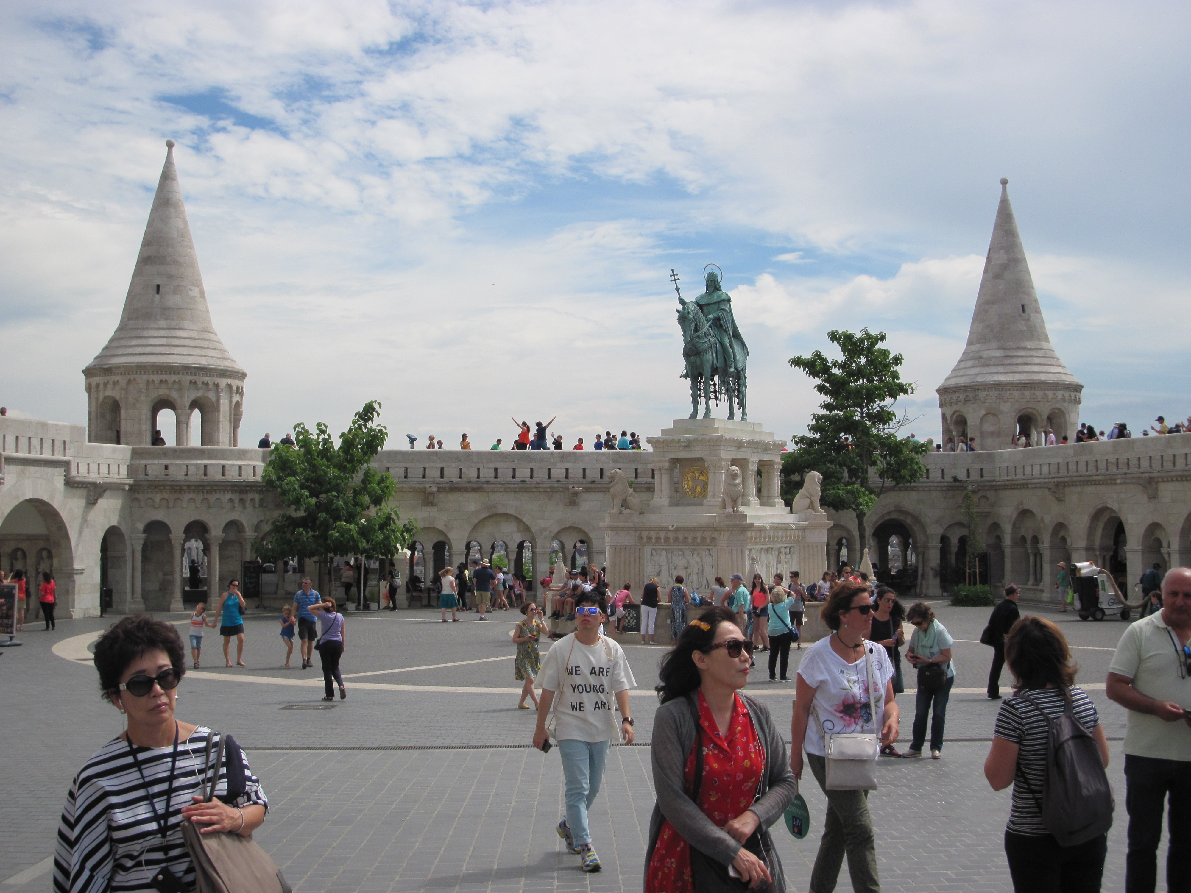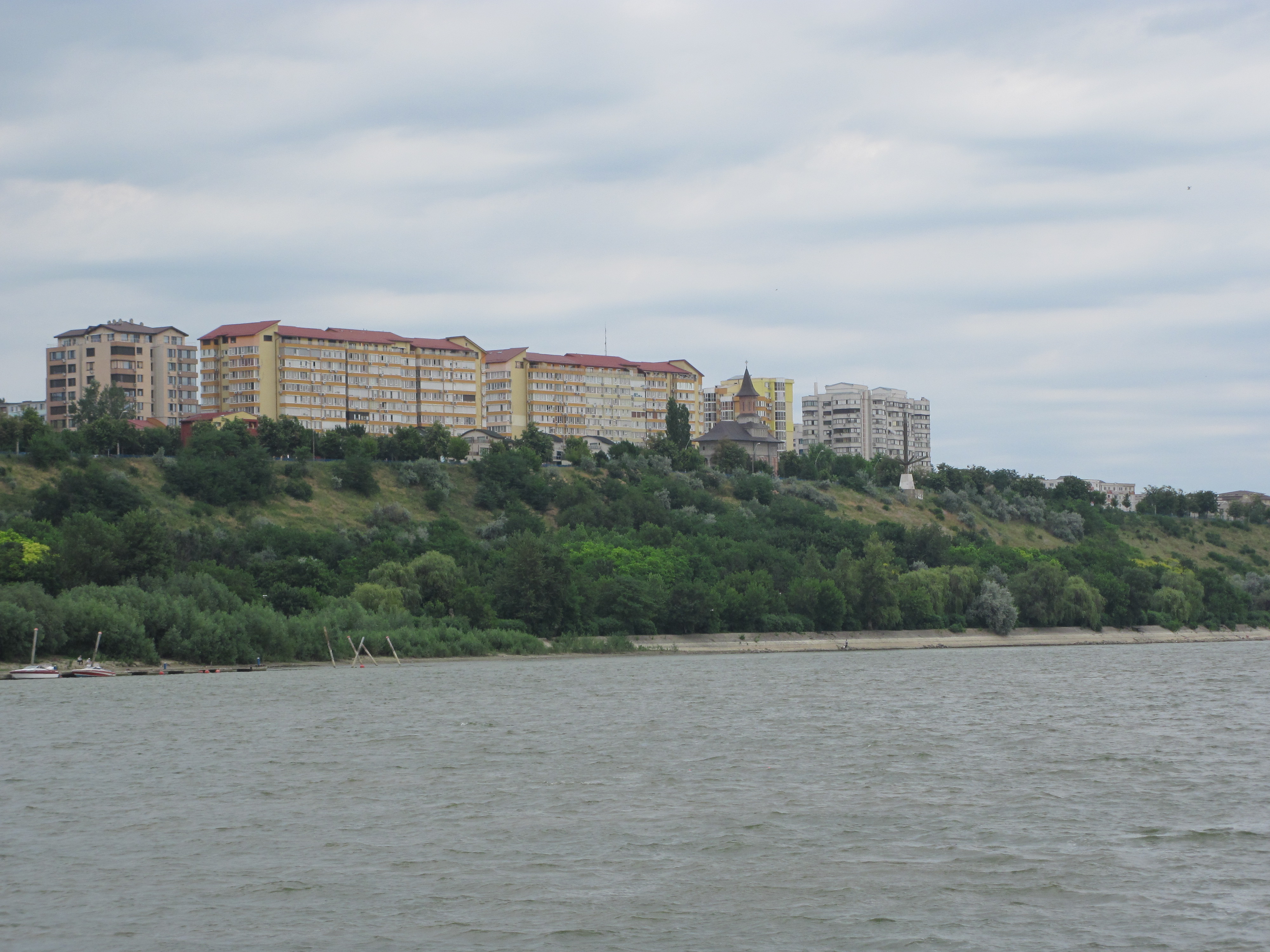 Hoewel er tussen de Weense verkeerspleinen toch wel veel verkeerslawaai geweest moet zijn heb ik toch wel weer aardig geslapen. Onze fietsroute blijkt dichterbij dan we dachten. Vanwege het mooie zomerse weer is het al vroeg druk op de naturistenstranden langs de Donau. Na een industriegebied vol met olievaten doorkruist te hebben komen we op een kilometerslange dijk te fietsen. Vorig jaar vonden we dit vanwege de hitte een heel zwaar traject, nu met de wind in de rug en zo’n 24 ° is het veel mooier en hebben we ook oog voor de best wel mooie natuur. Onze koffiepauze is er pas na zo’n 36 km. We beginnen Slowakije te naderen. Bratislava zien we al van verre liggen. Over de brug gaan we aan de verkeerde kant van de weg de stad in. Met de fiets aan de hand maken we er een wandelingetje doorheen. Mooi stadje, waar we in een parkje onze lunch opeten. Slowakije is voor ons maar 10 km lang. Daarna zijn we al in Hongarije. In het eerste dorpje Rajka kopen we bij de kruidenier ons avondeten in. Het aanbod is er niet uitgebreid maar het lukt toch wel om een aanvaardbaar menu samen te stellen. Het wordt macaroni met hamburgers uit blik en daarbij wat gemengde groenten. Als we op de camping gaan koken blijken er geen hamburgers in het blik te zitten, maar hamburgercrème. Wat je daarmee moet is voor ons niet duidelijk. Gelukkig hebben we toch voldoende gegeten als we de macaroni en de groenten weggewerkt hebben. Op de camping, ook weer dezelfde als die van vorig jaar, is het een drukte van belang vanwege een schoolkamp. De kinderen worden tot na elven goed bezig gehouden door de juffen. Wij liggen er dan al in. Gelukkig zijn de kinderen ook moe en is de hele camping weldra in diepe rust.
