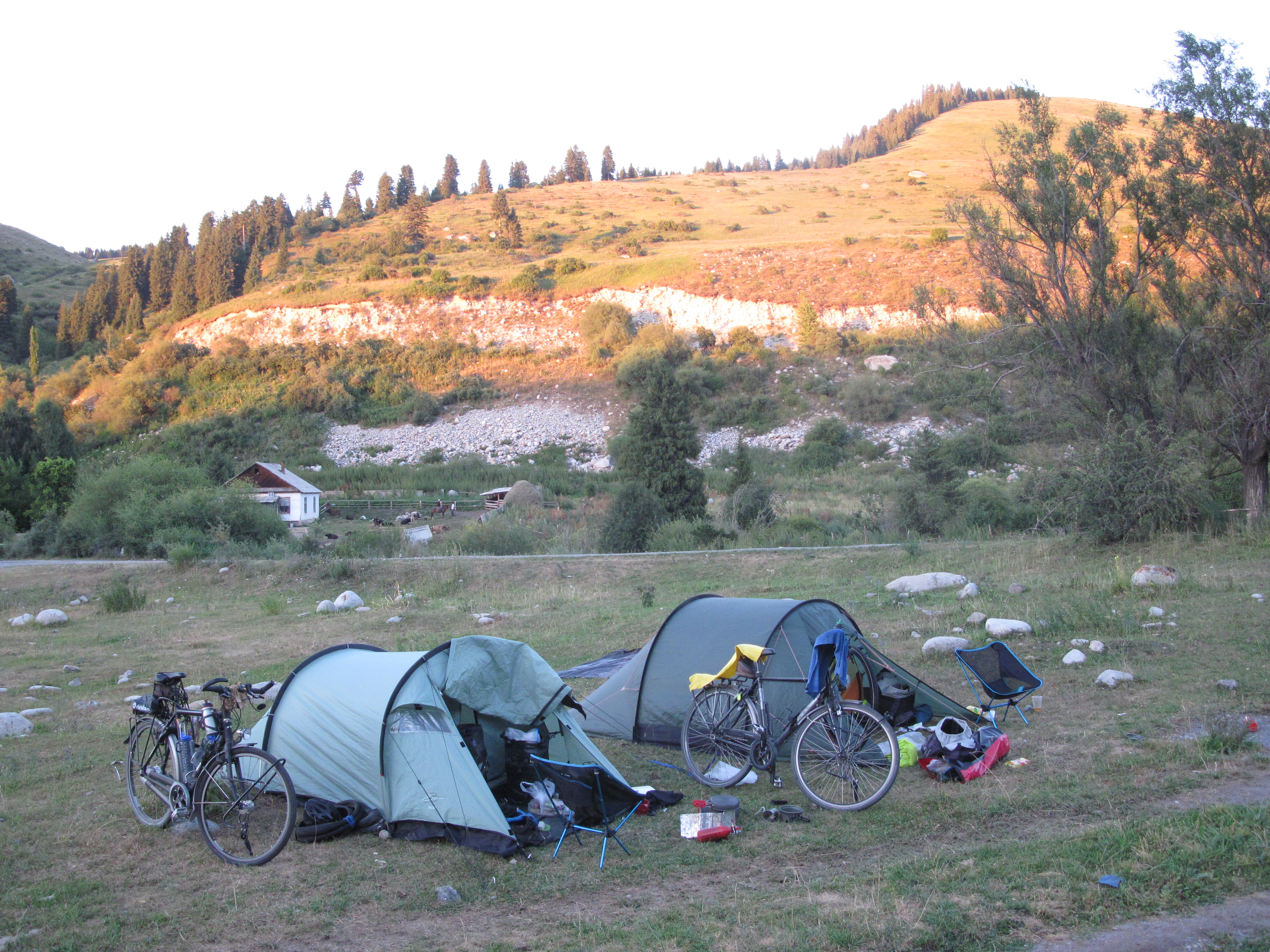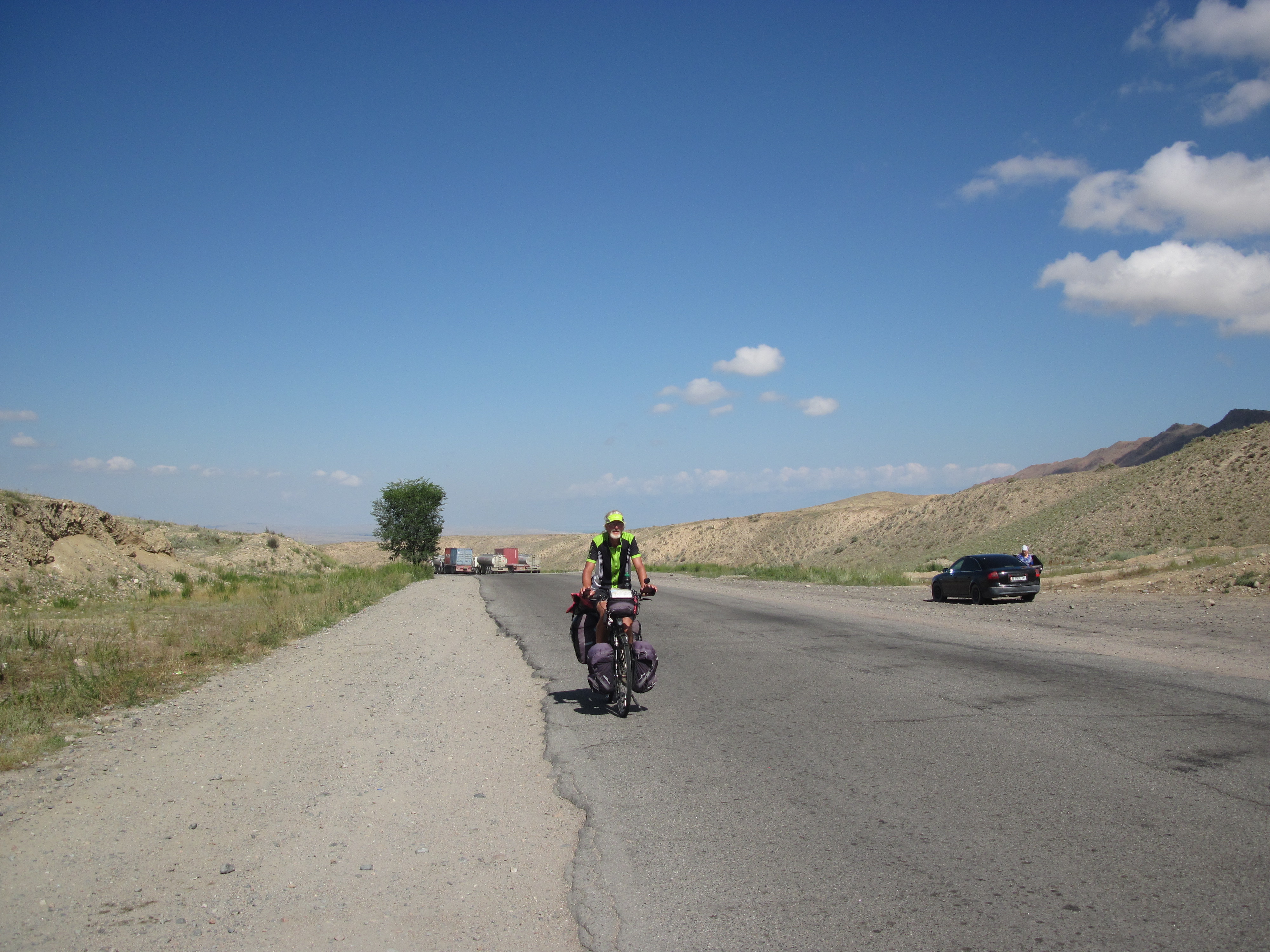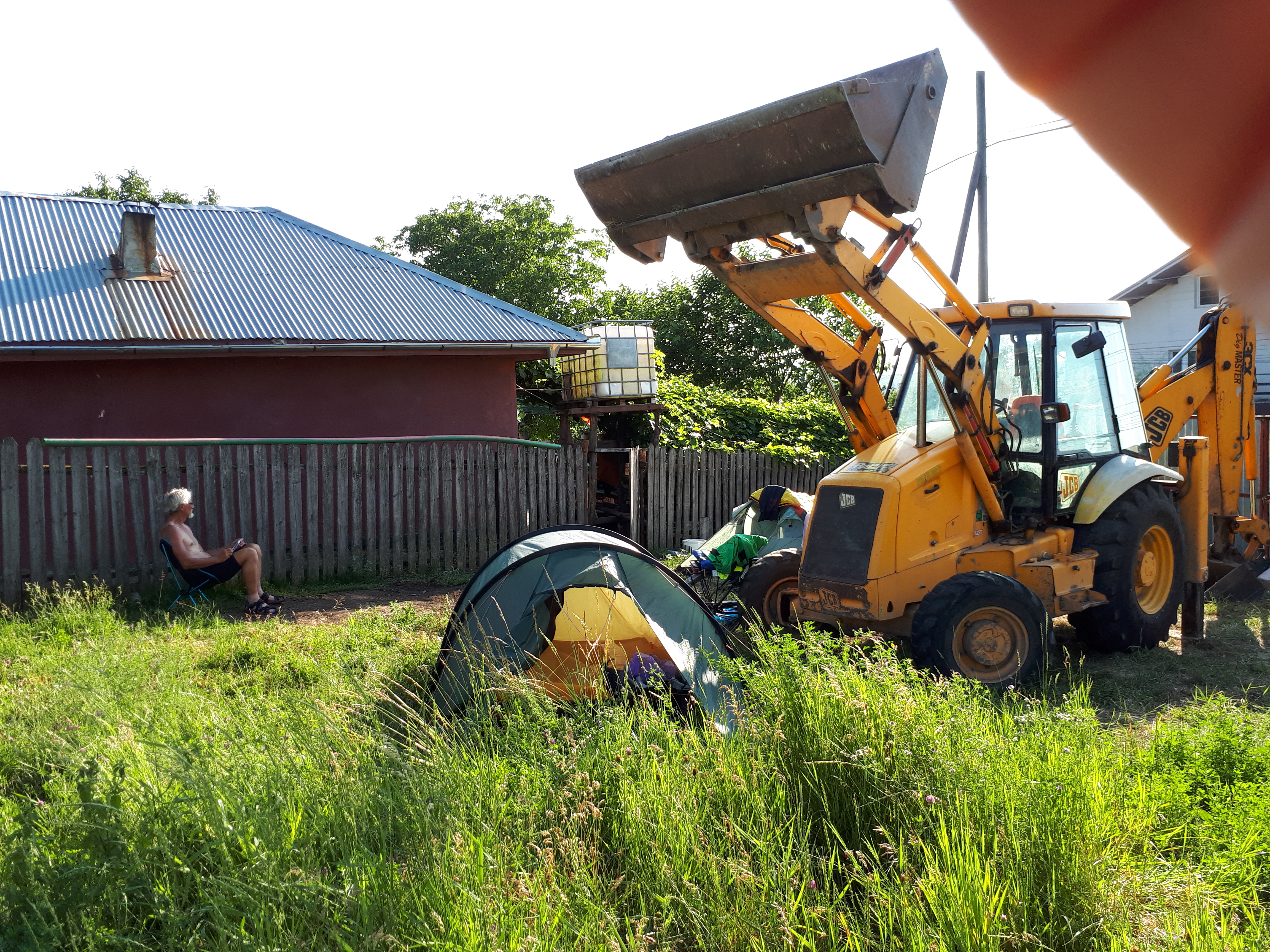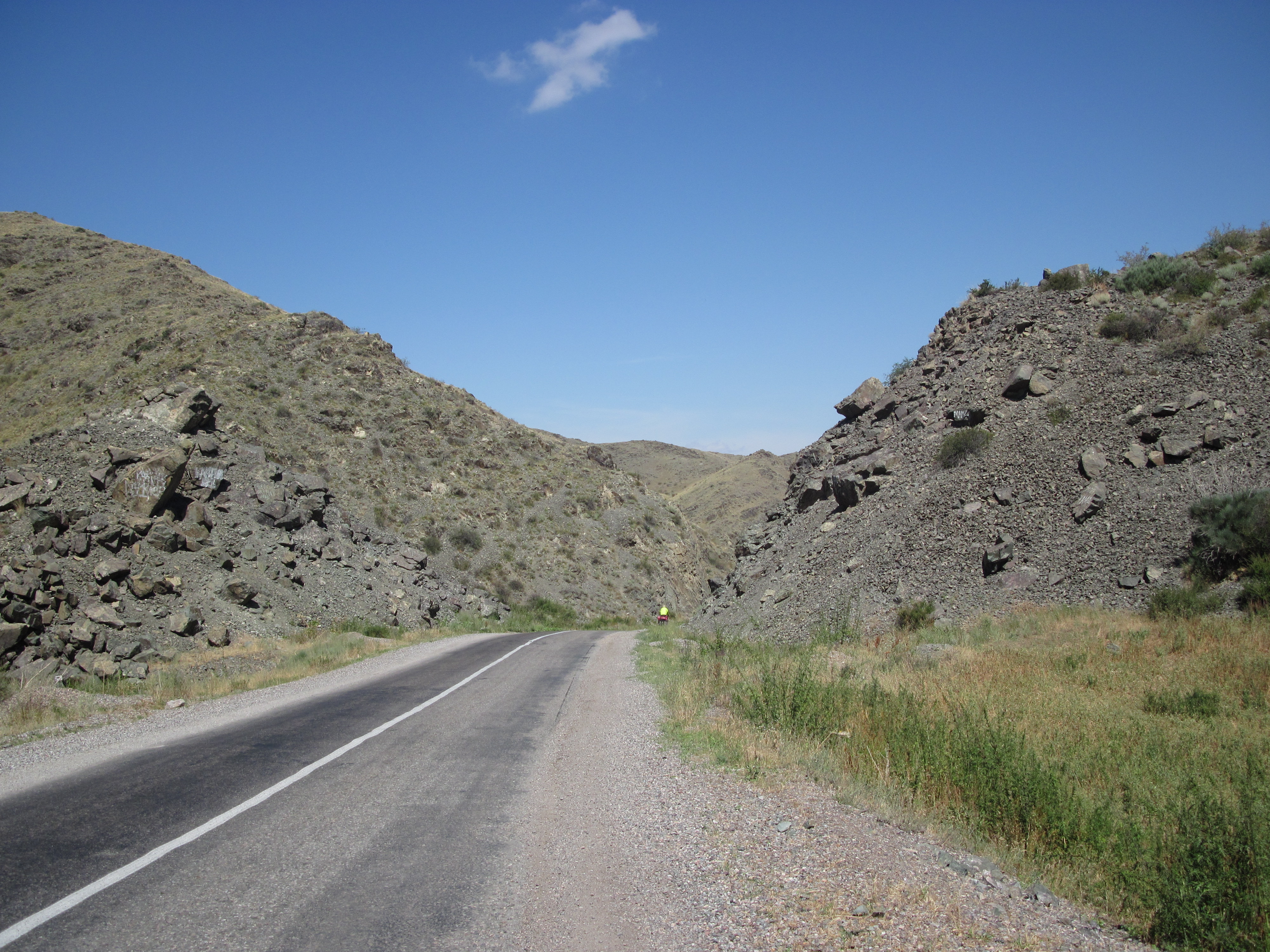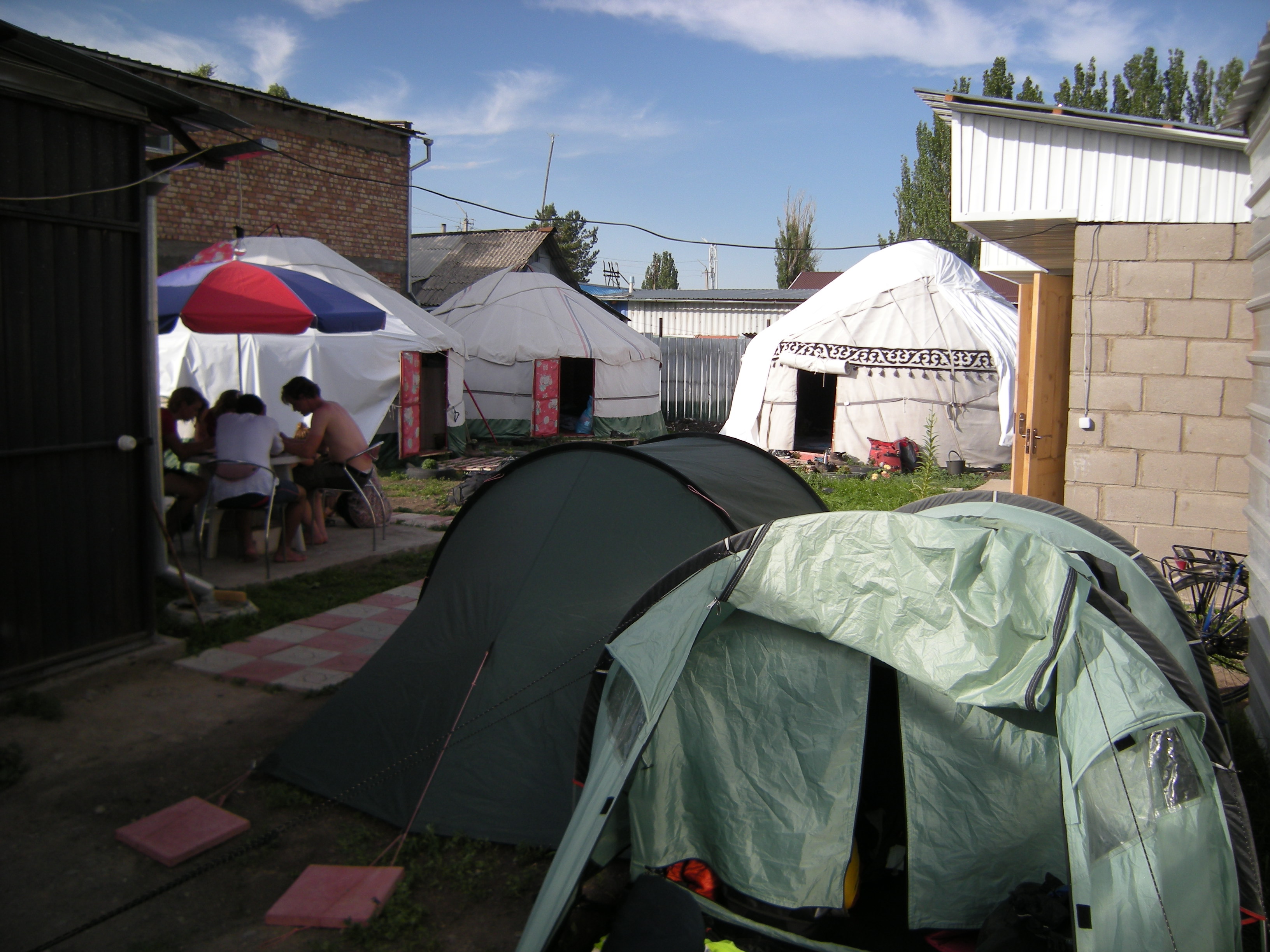 Hoewel ik wakker word met nog steeds hoofd- en keelpijn heb ik toch wel redelijk geslapen en voel ik me toch weer wat uitgerust. Wytze begint nu ook al te klagen dat hij zich niet lekker voelt. Met opnieuw wat paracetamol in het lijf gaan we toch maar op pad. We hebben voor vanavond nog geen onderdak geboekt dus we zien wel waar we uit gaan komen. Weg 109 hebben we vrij snel weer gevonden en daarna ook een winkeltje waar we weer ’n paar koekbroden kopen en die daar onder grote belangstelling opeten. Het weer is wat somber maar het blijft droog. Ook geen blubber vandaag maar wel stof!! Verschrikkelijk veel stof. Eerst fietsen we nog door een bergachtige omgeving maar daarna wordt het vlak en wordt het toch geen bijzonder mooie etappe. De vraag waar we kunnen overnachten wordt steeds nijpender. Als we een langgerekt dorp uitrijden vragen we of er een hotel is. Er moeten er wel 2 zijn dus moeten we terug. Als we het eerste hotel binnengaan kunnen we er niemand vinden. We kijken alvast wat rond. Wat een troep. Als we weer buiten zijn komen er wat mensen naar ons toe gelopen, die ons gelukkig snel duidelijk maken dat we er niet mogen blijven om te overnachten. Naar het tweede hotel zoeken we maar heel kort want het is ons snel duidelijk dat er in dit dorp geen hotel voor buitenlanders zal zijn. Ook in het volgende dorp kunnen we niet terecht. Wytze wil doorfietsen tot het donker is en dan ergens in een hut of schuur overnachten. Dat zie ik niet zo zitten. Ik wil liever proberen om bij mensen in de tuin te kamperen en denk dat we daarvoor al wel een mogelijkheid gepasseerd zijn. Wytze wil echter niet meer terug en dus fietsen we maar weer verder. We komen onverwacht toch nog bij een winkeltje waar we nog wat te eten en te drinken kopen. Ik grijp mijn kans en vraag aan de man of we onze tent bij de winkel op mogen zetten. Hij twijfelt even maar overlegt dan toch met zijn vrouw. We mogen meekomen en hij wijst ons een plek aan bij een bouwput achter het winkeltje waar ze bezig zijn met het aanleggen van een nieuwe weg. Maar we mogen ook slapen in een plastic bogentent waar wat was te drogen hangt. Nou dan kiezen we toch voor de bogentent. Ik zet er mijn tentje in op maar Wytze blijft bij zijn verlangen om zonder tent te slapen en rolt alleen zijn grondzeil en zijn slaapzak uit. Er staan nog 2 bogententen meer. 1 wordt gebruikt om gojibessen te drogen, in de andere slapen de wegwerkers. De wegwerkers zijn heel benieuwd naar hun nieuwe buren en komen natuurlijk de hele avond naar ons kijken en selfie’s maken. Ze komen zelfs heel attent een emmer water brengen zodat we ons wat kunnen wassen. Er is geen wifi dus hebben geen contact met het thuisfront. Na het eten van onze warme noedels is het vrij snel donker en dus tijd om te gaan slapen. Ben benieuwd wie er morgen het beste geslapen heeft.