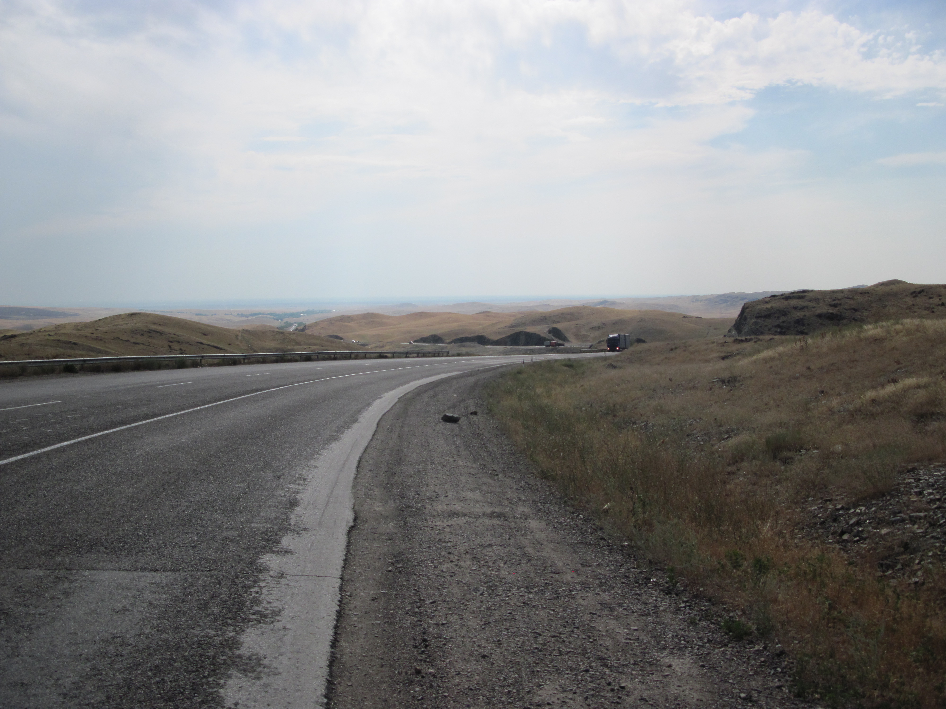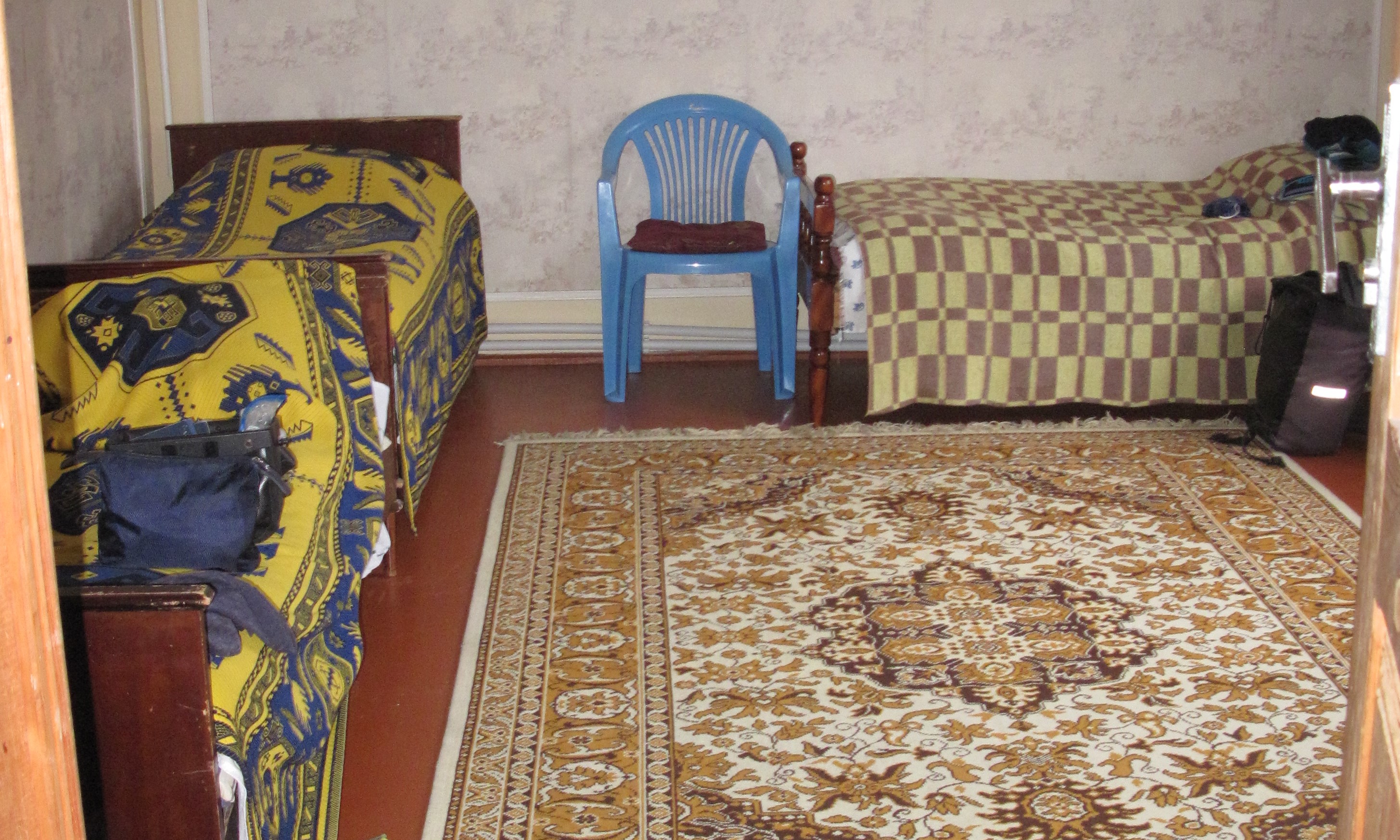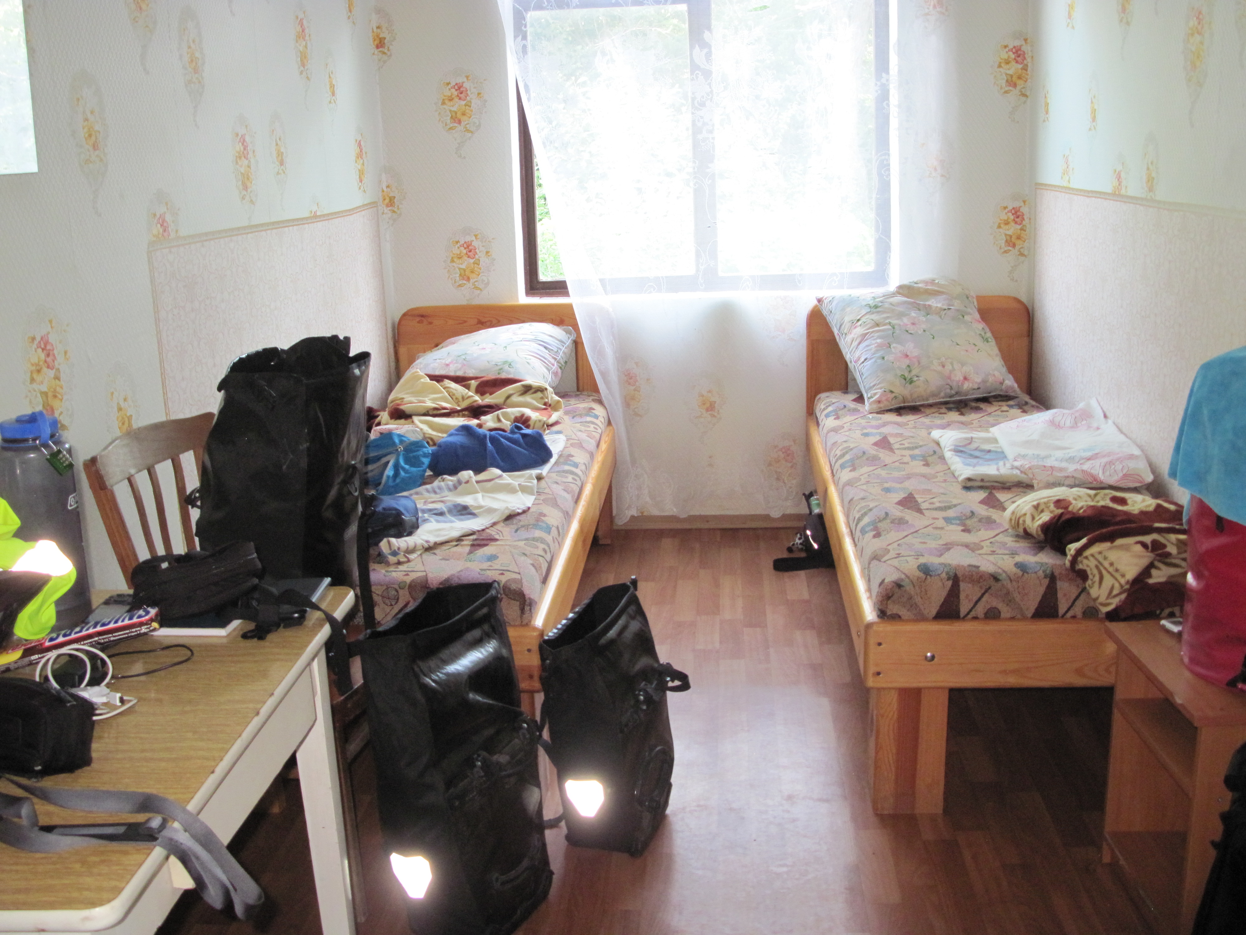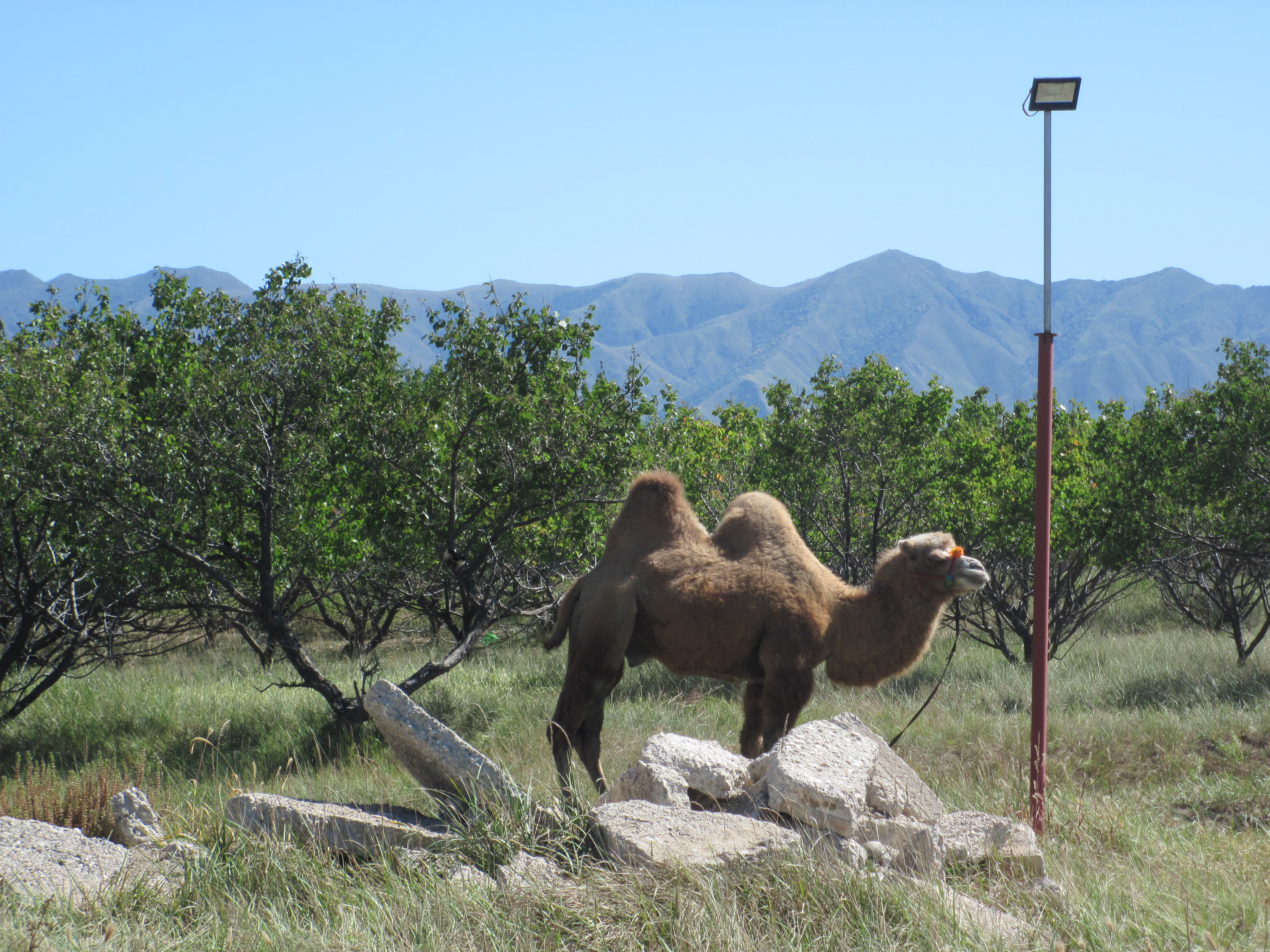 Hoewel ik wakker word met nog steeds hoofd- en keelpijn heb ik toch wel redelijk geslapen en voel ik me toch weer wat uitgerust. Wytze begint nu ook al te klagen dat hij zich niet lekker voelt. Met opnieuw wat paracetamol in het lijf gaan we toch maar op pad. We hebben voor vanavond nog geen onderdak geboekt dus we zien wel waar we uit gaan komen. Weg 109 hebben we vrij snel weer gevonden en daarna ook een winkeltje waar we weer ’n paar koekbroden kopen en die daar onder grote belangstelling opeten. Het weer is wat somber maar het blijft droog. Ook geen blubber vandaag maar wel stof!! Verschrikkelijk veel stof. Eerst fietsen we nog door een bergachtige omgeving maar daarna wordt het vlak en wordt het toch geen bijzonder mooie etappe. De vraag waar we kunnen overnachten wordt steeds nijpender. Als we een langgerekt dorp uitrijden vragen we of er een hotel is. Er moeten er wel 2 zijn dus moeten we terug. Als we het eerste hotel binnengaan kunnen we er niemand vinden. We kijken alvast wat rond. Wat een troep. Als we weer buiten zijn komen er wat mensen naar ons toe gelopen, die ons gelukkig snel duidelijk maken dat we er niet mogen blijven om te overnachten. Naar het tweede hotel zoeken we maar heel kort want het is ons snel duidelijk dat er in dit dorp geen hotel voor buitenlanders zal zijn. Ook in het volgende dorp kunnen we niet terecht. Wytze wil doorfietsen tot het donker is en dan ergens in een hut of schuur overnachten. Dat zie ik niet zo zitten. Ik wil liever proberen om bij mensen in de tuin te kamperen en denk dat we daarvoor al wel een mogelijkheid gepasseerd zijn. Wytze wil echter niet meer terug en dus fietsen we maar weer verder. We komen onverwacht toch nog bij een winkeltje waar we nog wat te eten en te drinken kopen. Ik grijp mijn kans en vraag aan de man of we onze tent bij de winkel op mogen zetten. Hij twijfelt even maar overlegt dan toch met zijn vrouw. We mogen meekomen en hij wijst ons een plek aan bij een bouwput achter het winkeltje waar ze bezig zijn met het aanleggen van een nieuwe weg. Maar we mogen ook slapen in een plastic bogentent waar wat was te drogen hangt. Nou dan kiezen we toch voor de bogentent. Ik zet er mijn tentje in op maar Wytze blijft bij zijn verlangen om zonder tent te slapen en rolt alleen zijn grondzeil en zijn slaapzak uit. Er staan nog 2 bogententen meer. 1 wordt gebruikt om gojibessen te drogen, in de andere slapen de wegwerkers. De wegwerkers zijn heel benieuwd naar hun nieuwe buren en komen natuurlijk de hele avond naar ons kijken en selfie’s maken. Ze komen zelfs heel attent een emmer water brengen zodat we ons wat kunnen wassen. Er is geen wifi dus hebben geen contact met het thuisfront. Na het eten van onze warme noedels is het vrij snel donker en dus tijd om te gaan slapen. Ben benieuwd wie er morgen het beste geslapen heeft.