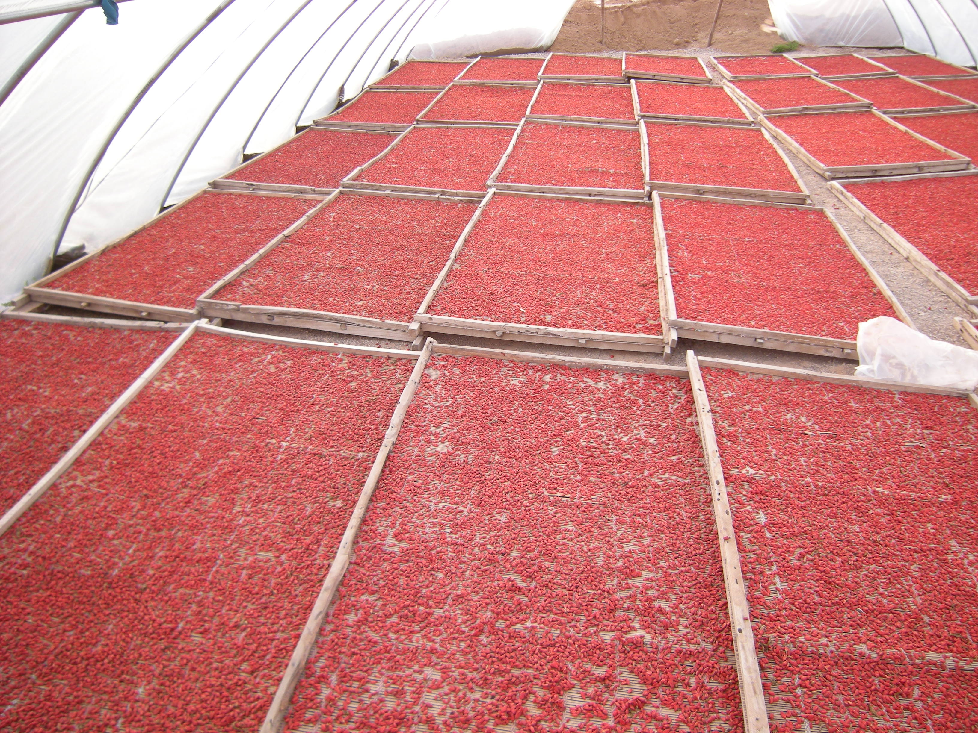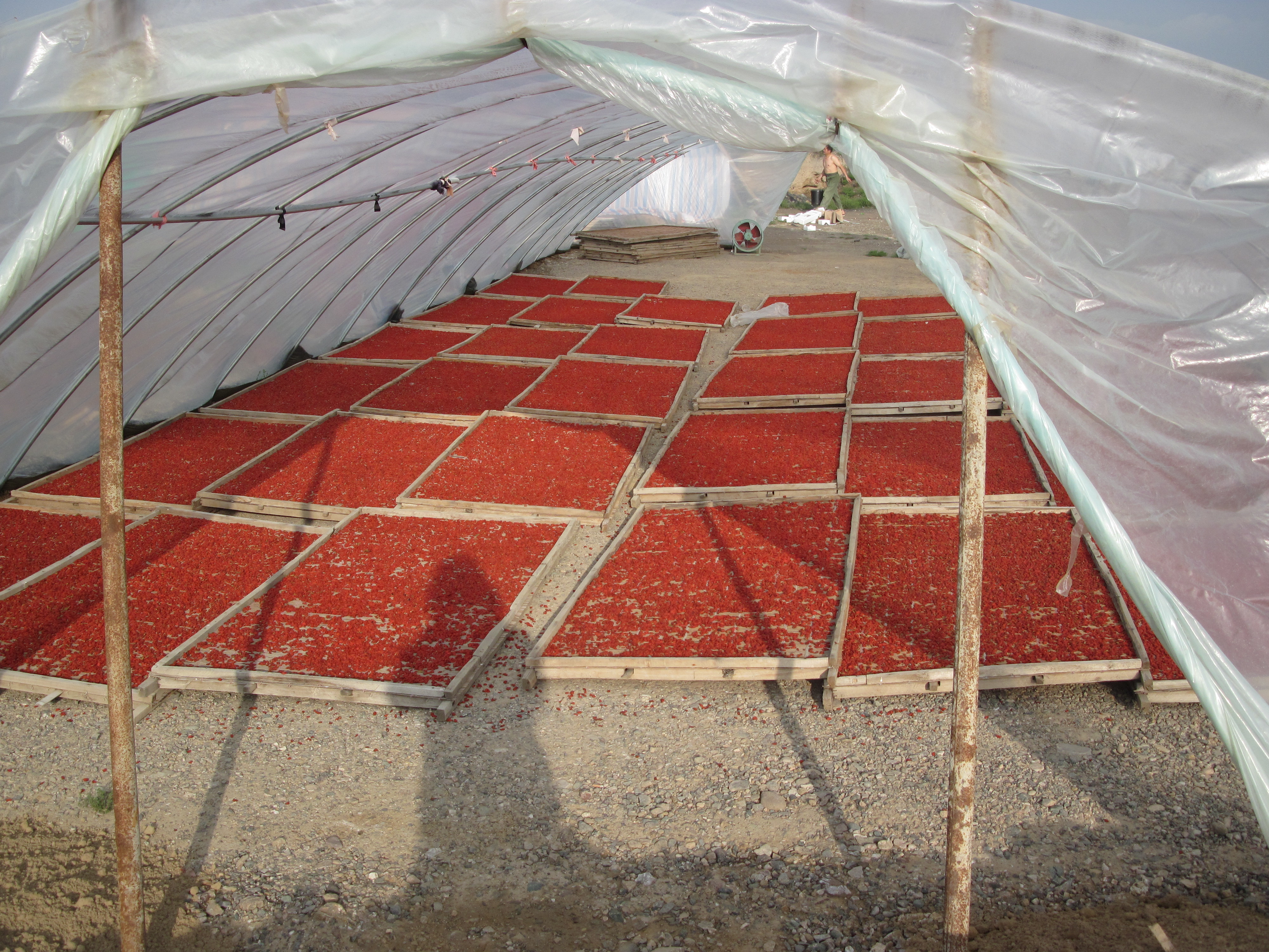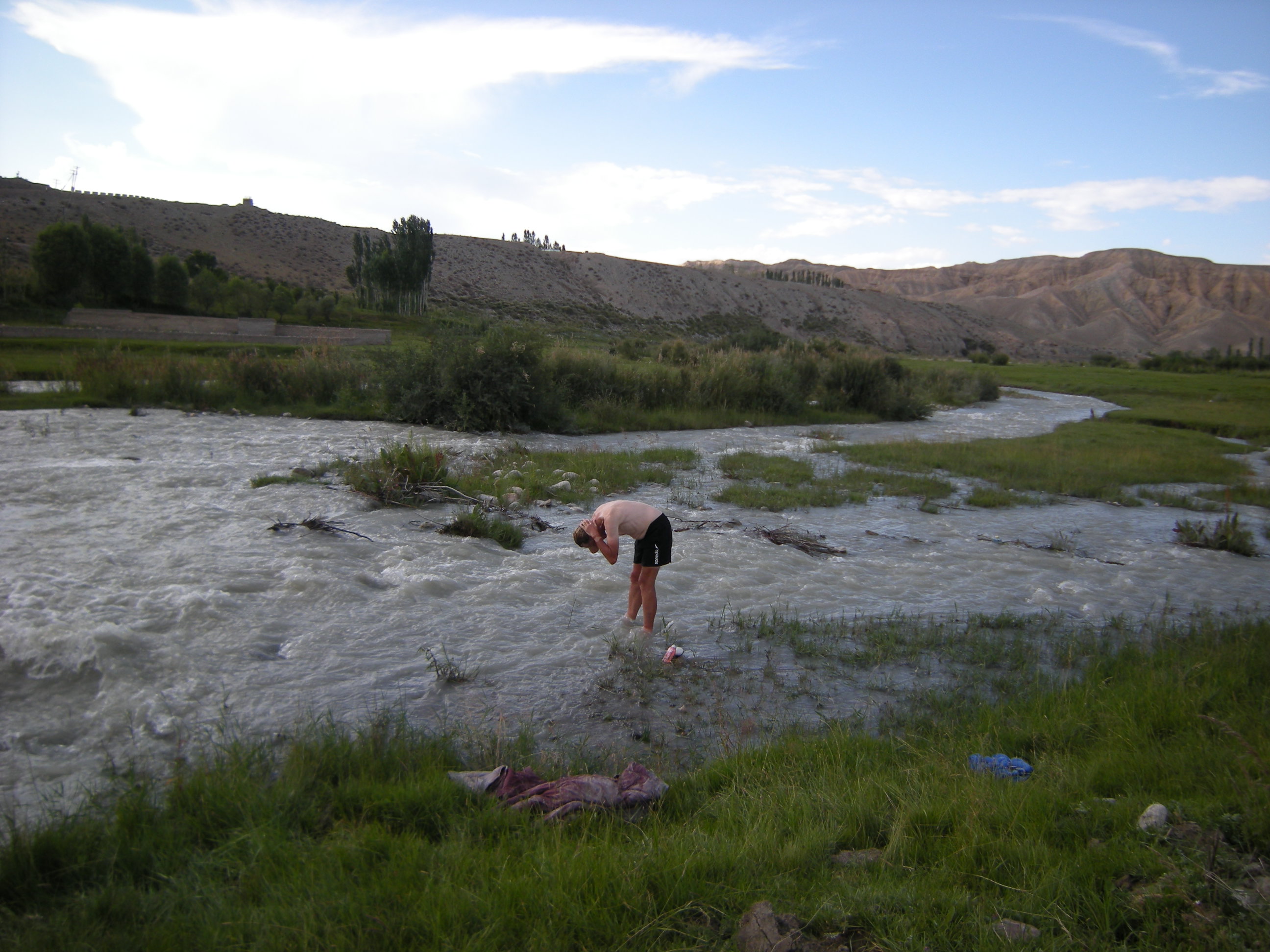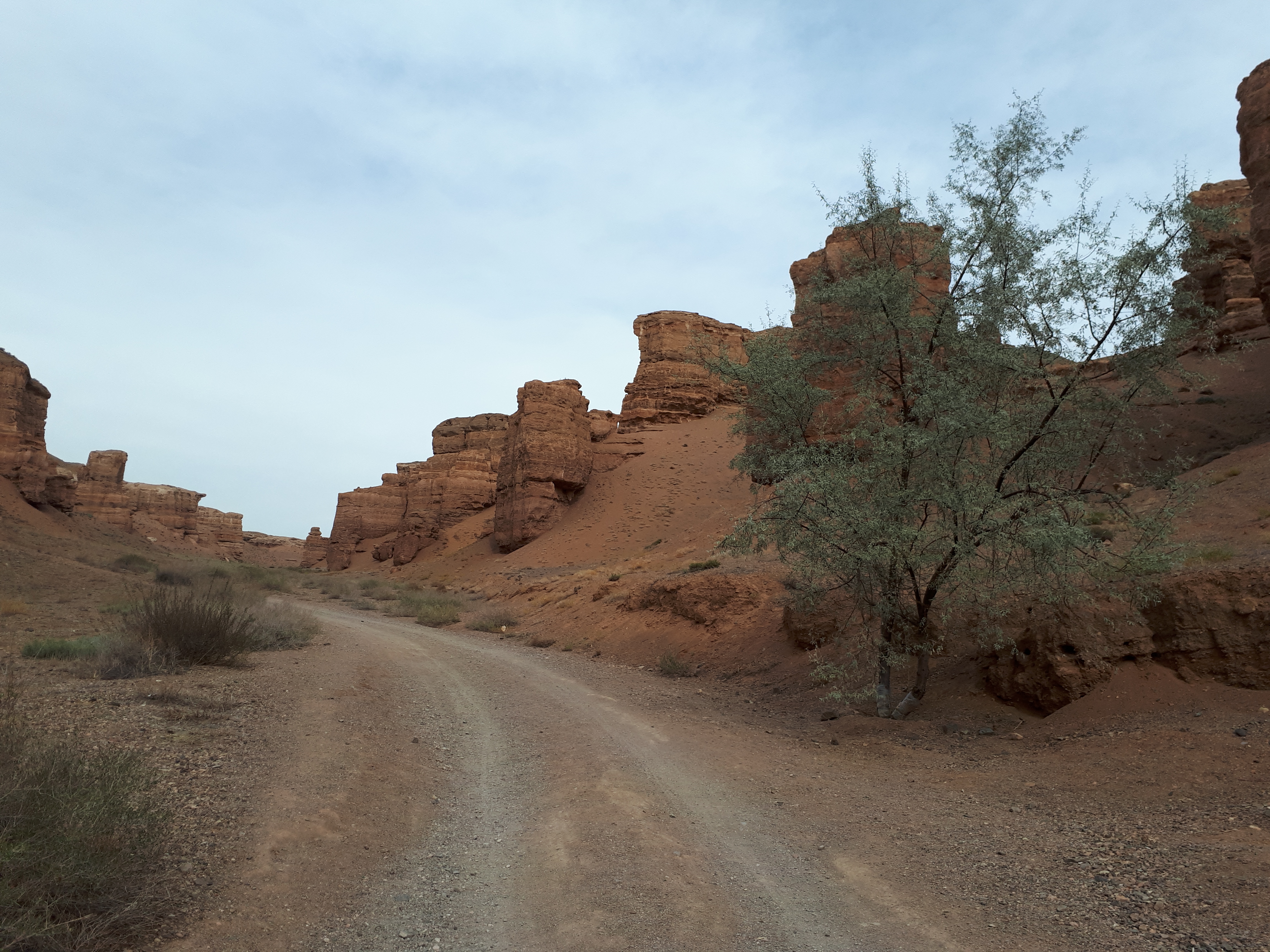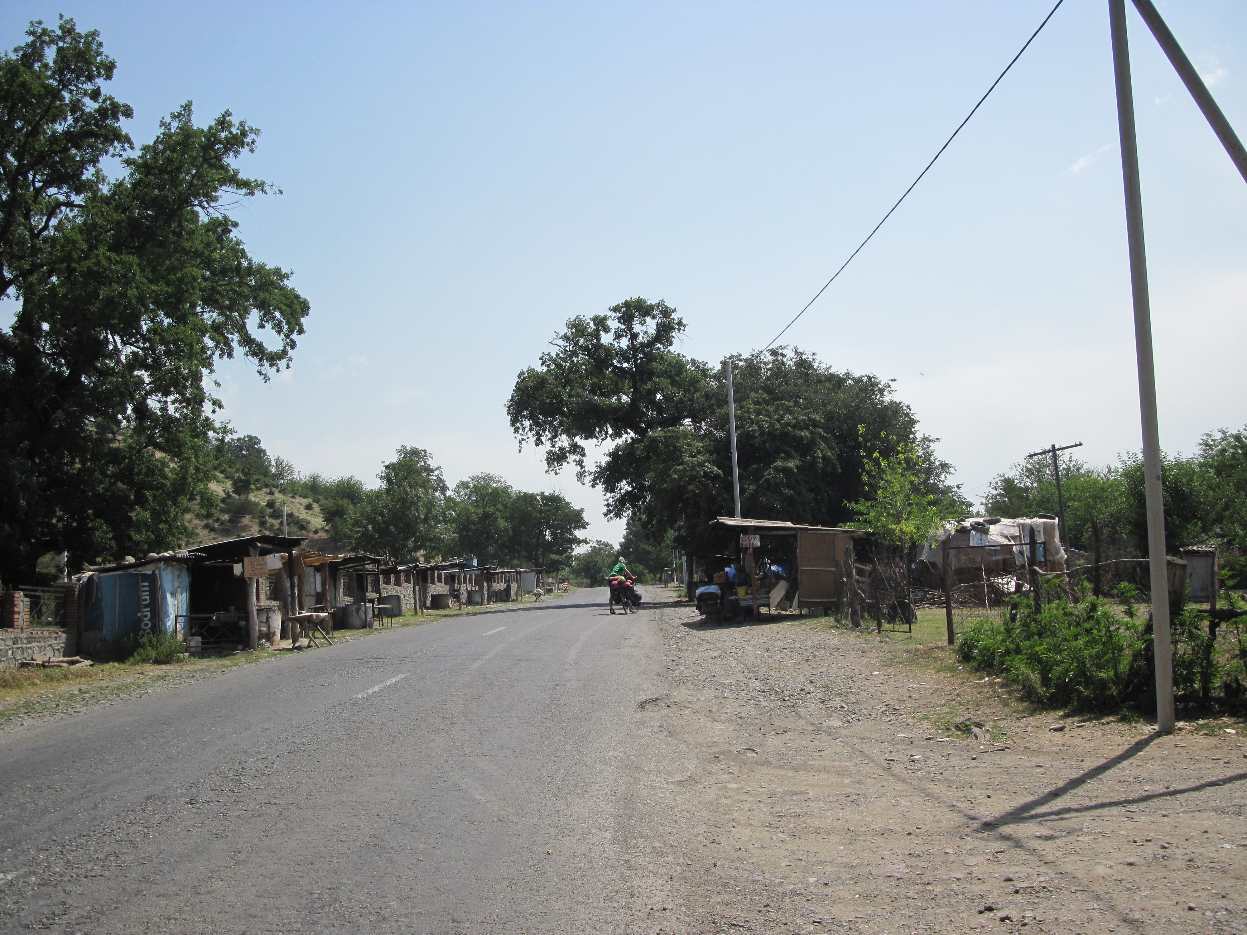 Hoewel ik wakker word met nog steeds hoofd- en keelpijn heb ik toch wel redelijk geslapen en voel ik me toch weer wat uitgerust. Wytze begint nu ook al te klagen dat hij zich niet lekker voelt. Met opnieuw wat paracetamol in het lijf gaan we toch maar op pad. We hebben voor vanavond nog geen onderdak geboekt dus we zien wel waar we uit gaan komen. Weg 109 hebben we vrij snel weer gevonden en daarna ook een winkeltje waar we weer ’n paar koekbroden kopen en die daar onder grote belangstelling opeten. Het weer is wat somber maar het blijft droog. Ook geen blubber vandaag maar wel stof!! Verschrikkelijk veel stof. Eerst fietsen we nog door een bergachtige omgeving maar daarna wordt het vlak en wordt het toch geen bijzonder mooie etappe. De vraag waar we kunnen overnachten wordt steeds nijpender. Als we een langgerekt dorp uitrijden vragen we of er een hotel is. Er moeten er wel 2 zijn dus moeten we terug. Als we het eerste hotel binnengaan kunnen we er niemand vinden. We kijken alvast wat rond. Wat een troep. Als we weer buiten zijn komen er wat mensen naar ons toe gelopen, die ons gelukkig snel duidelijk maken dat we er niet mogen blijven om te overnachten. Naar het tweede hotel zoeken we maar heel kort want het is ons snel duidelijk dat er in dit dorp geen hotel voor buitenlanders zal zijn. Ook in het volgende dorp kunnen we niet terecht. Wytze wil doorfietsen tot het donker is en dan ergens in een hut of schuur overnachten. Dat zie ik niet zo zitten. Ik wil liever proberen om bij mensen in de tuin te kamperen en denk dat we daarvoor al wel een mogelijkheid gepasseerd zijn. Wytze wil echter niet meer terug en dus fietsen we maar weer verder. We komen onverwacht toch nog bij een winkeltje waar we nog wat te eten en te drinken kopen. Ik grijp mijn kans en vraag aan de man of we onze tent bij de winkel op mogen zetten. Hij twijfelt even maar overlegt dan toch met zijn vrouw. We mogen meekomen en hij wijst ons een plek aan bij een bouwput achter het winkeltje waar ze bezig zijn met het aanleggen van een nieuwe weg. Maar we mogen ook slapen in een plastic bogentent waar wat was te drogen hangt. Nou dan kiezen we toch voor de bogentent. Ik zet er mijn tentje in op maar Wytze blijft bij zijn verlangen om zonder tent te slapen en rolt alleen zijn grondzeil en zijn slaapzak uit. Er staan nog 2 bogententen meer. 1 wordt gebruikt om gojibessen te drogen, in de andere slapen de wegwerkers. De wegwerkers zijn heel benieuwd naar hun nieuwe buren en komen natuurlijk de hele avond naar ons kijken en selfie’s maken. Ze komen zelfs heel attent een emmer water brengen zodat we ons wat kunnen wassen. Er is geen wifi dus hebben geen contact met het thuisfront. Na het eten van onze warme noedels is het vrij snel donker en dus tijd om te gaan slapen. Ben benieuwd wie er morgen het beste geslapen heeft.