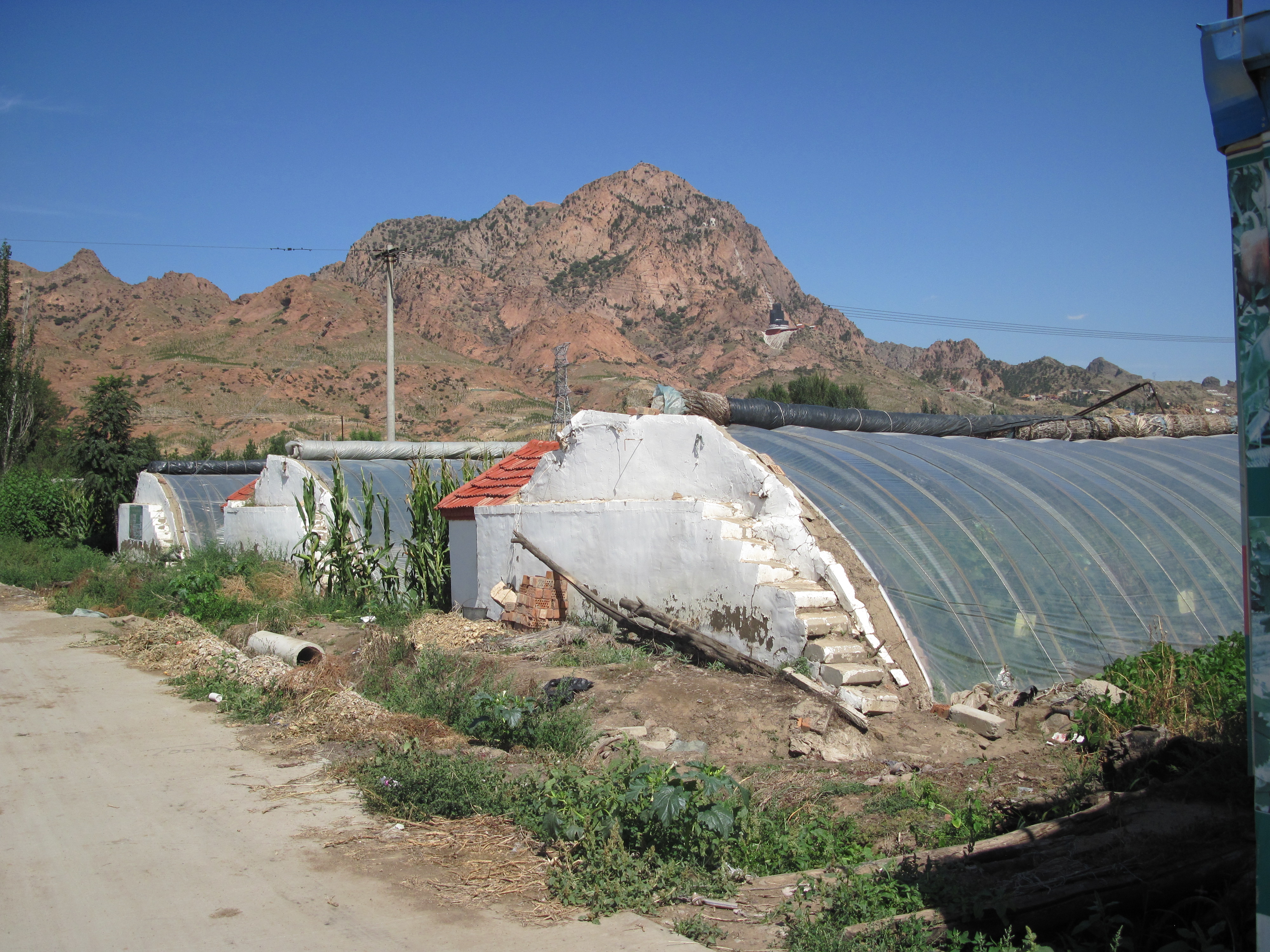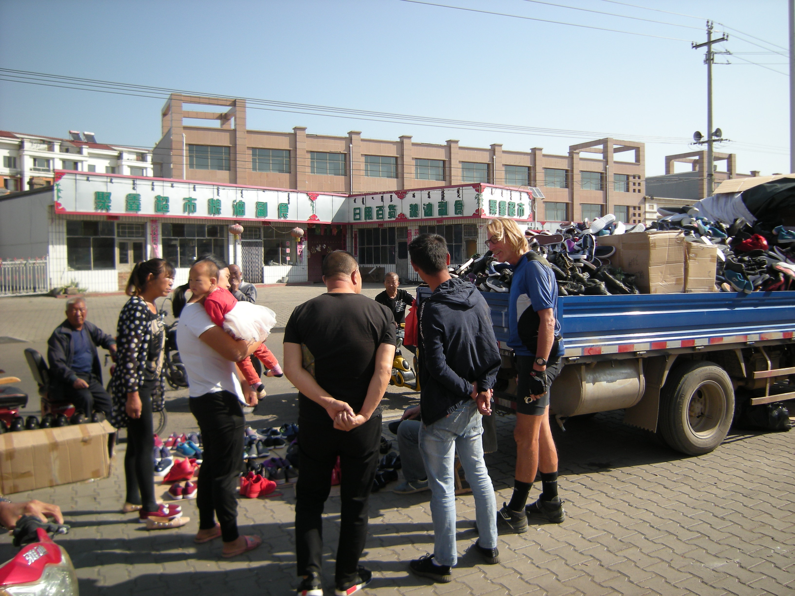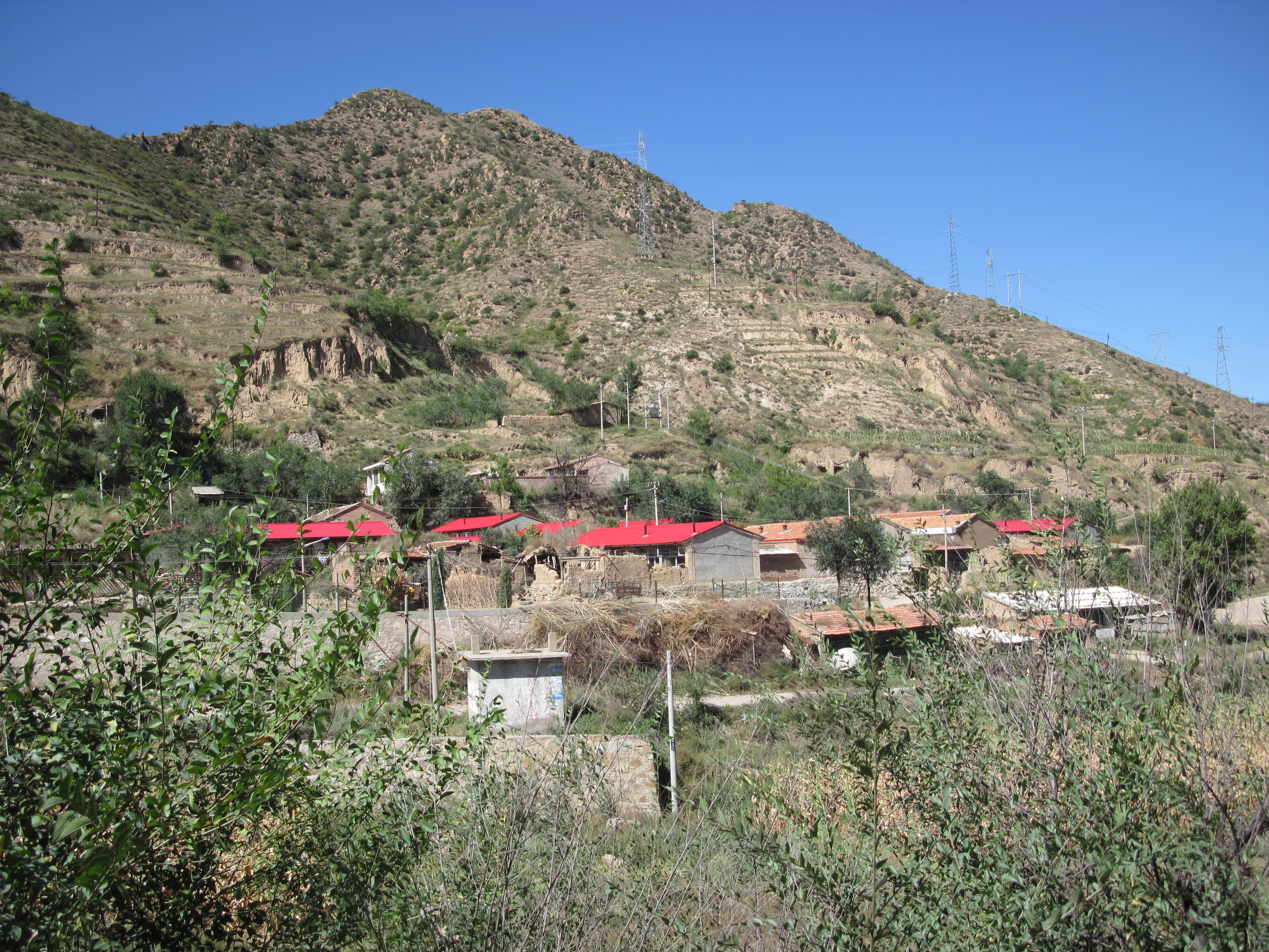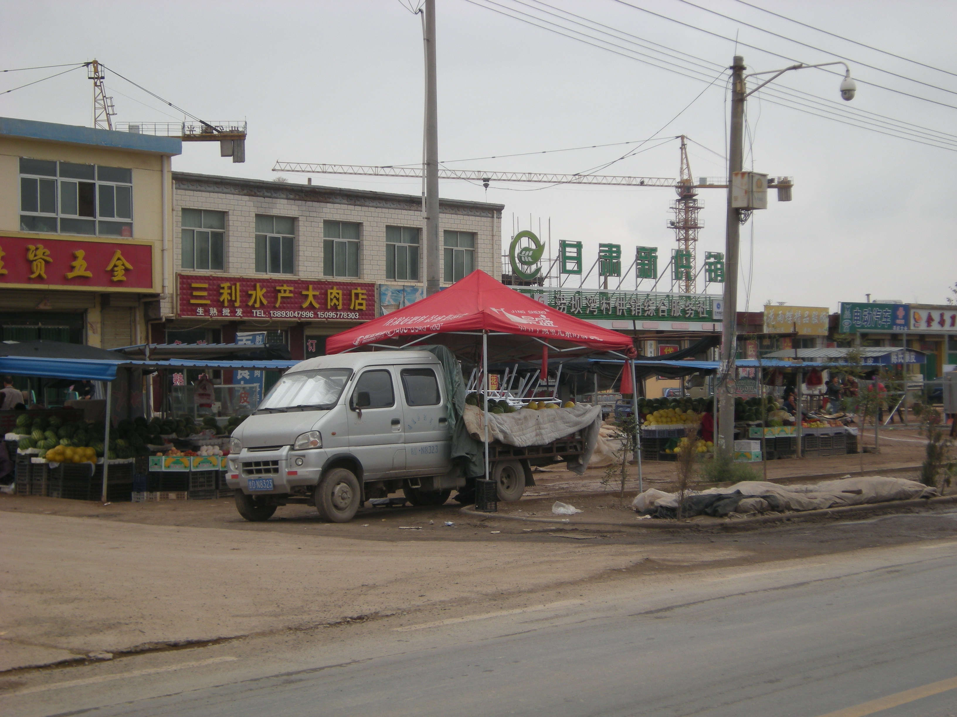 Ik heb redelijk geslapen in m’n tent in de bogentent. Het is in ieder geval rustig gebleven. De buitenkant van mijn slaapzak is wat nat en ik heb geen idee waar dat vandaan komt. Misschien heeft mijn bidon wat gelekt. Ik hang ‘m buiten op wat goji-droogrekken in de zon. Het droogt goed dus nemen we toch al vroeg afscheid van de winkeljuffrouw en nog wat andere vrouwen die een hakmes aan het slijpen zijn en in een teil vlees van het zojuist geslachte dier aan het wassen zijn. De zon schijnt er lekker op los en de eerste 20 km dalen we lekker door dorpjes met heel veel steenfabrieken. Het leem dat nodig is voor de stenen is overal in sleuven en gaten weggegraven wat een heel apart landschap oplevert. Voor de huizen liggen er ook grote hopen met grote brokken steenkool. Na zo’n 58 km komen we in Haojihai waar we wat eten. Er is daar zelfs een hotel. We twijfelen even omdat het er wel heel netjes uitziet maar als de eigenaresse zegt dat er 6 km verderop in Xingrenbu nog wel 5 slaapgelegenheden zijn fietsen we toch maar door. In Xingrenbu worden we naar een hotel verwezen maar als we eenmaal binnen zijn blijkt het toch niet veel soeps te zijn. Er is geen warm water. Het is er vies en de prullenbak in de kamer zit nog vol troep van de vorige gasten. Er zijn geen handdoeken maar als we er om vragen krijgen we dan toch 2 kleine harde lapjes. Waardeloos, maar voor 80 Yuan (ca. € 10,00) mag je natuurlijk ook niet veel verwachten. Op mijn Ziggo email-account krijg ik bericht dat ik waarschijnlijk gehackt ben en dat ze daarom mijn account maar geblokkeerd hebben. Ik wil ze laten weten dat dat waarschijnlijk te maken heeft met de VPS-app maar kan ze door de blokkade niet meer bereiken. Ik verander het wachtwoord maar ook dat helpt me niet verder. Ik vraag Peet of ze contact op wil nemen met Ziggo en activeer mijn Gmail-account zodat ik toch weer kan emailen. Ik stuur de gegevens van onze vliegtickets voor 27 oktober van Peking naar Amsterdam naar Sanne en Peet met de vraag of zij met D-reizen willen bespreken hoe we die kunnen annuleren of overboeken. We eten in het stadje en lopen nog wat rond door het vieze centrum.