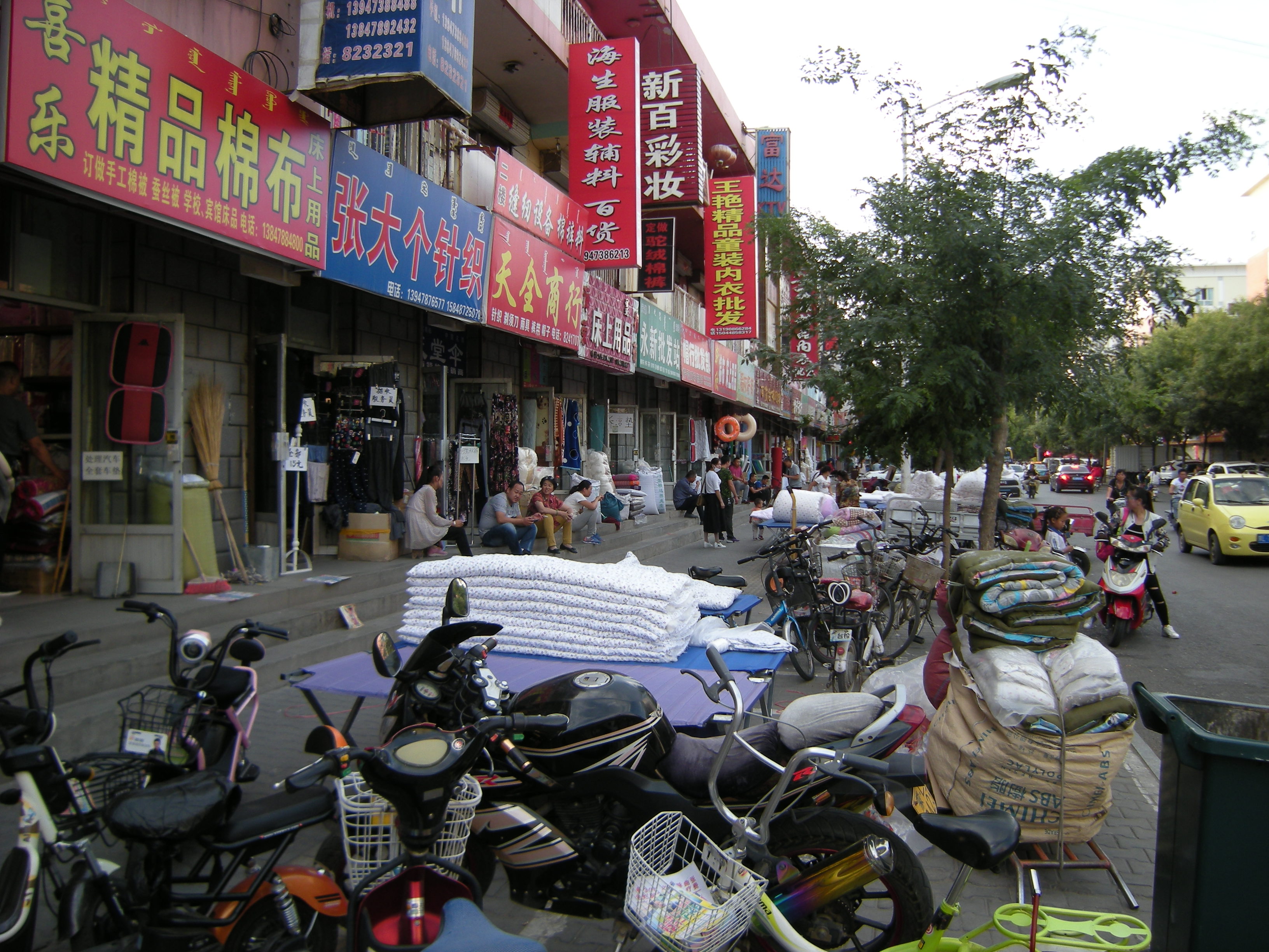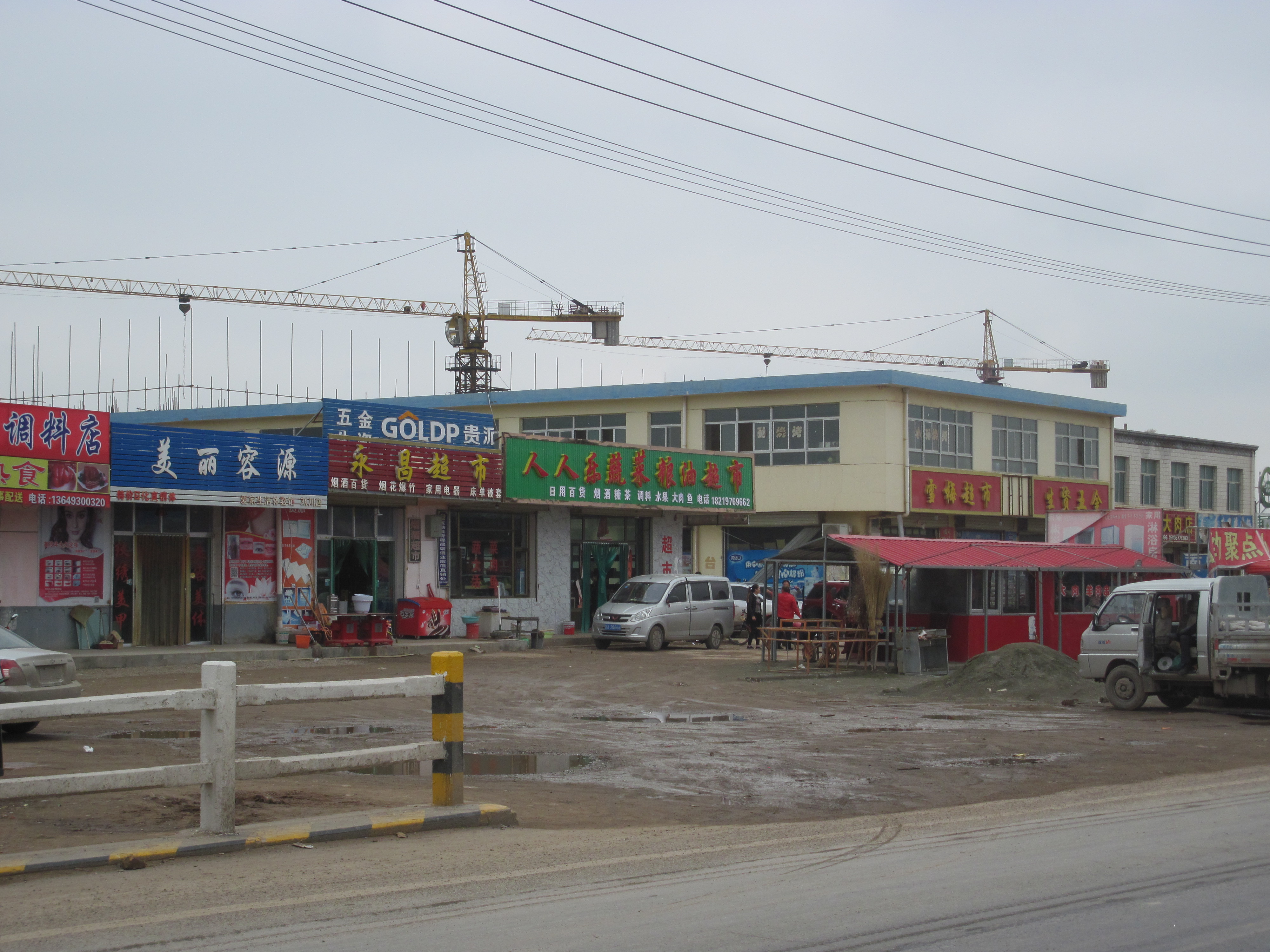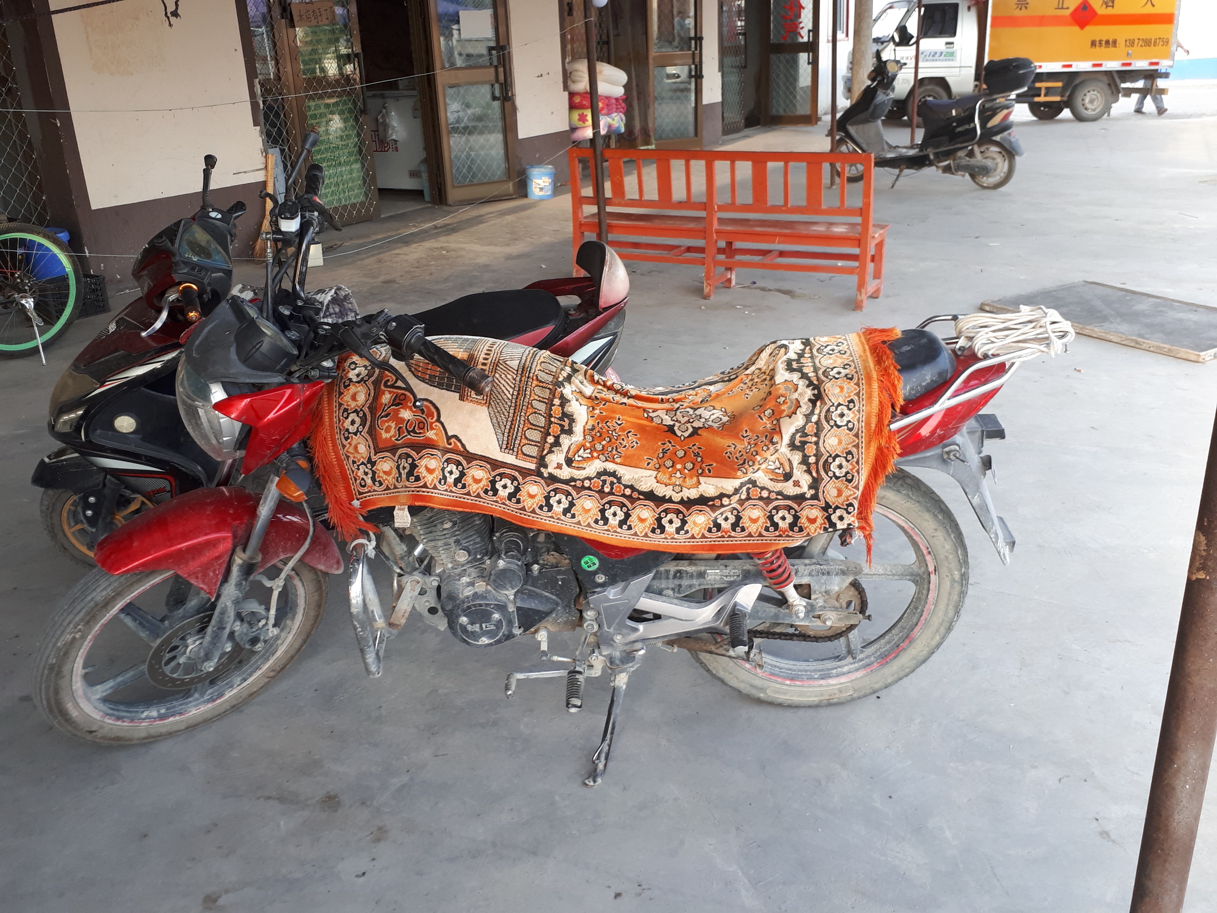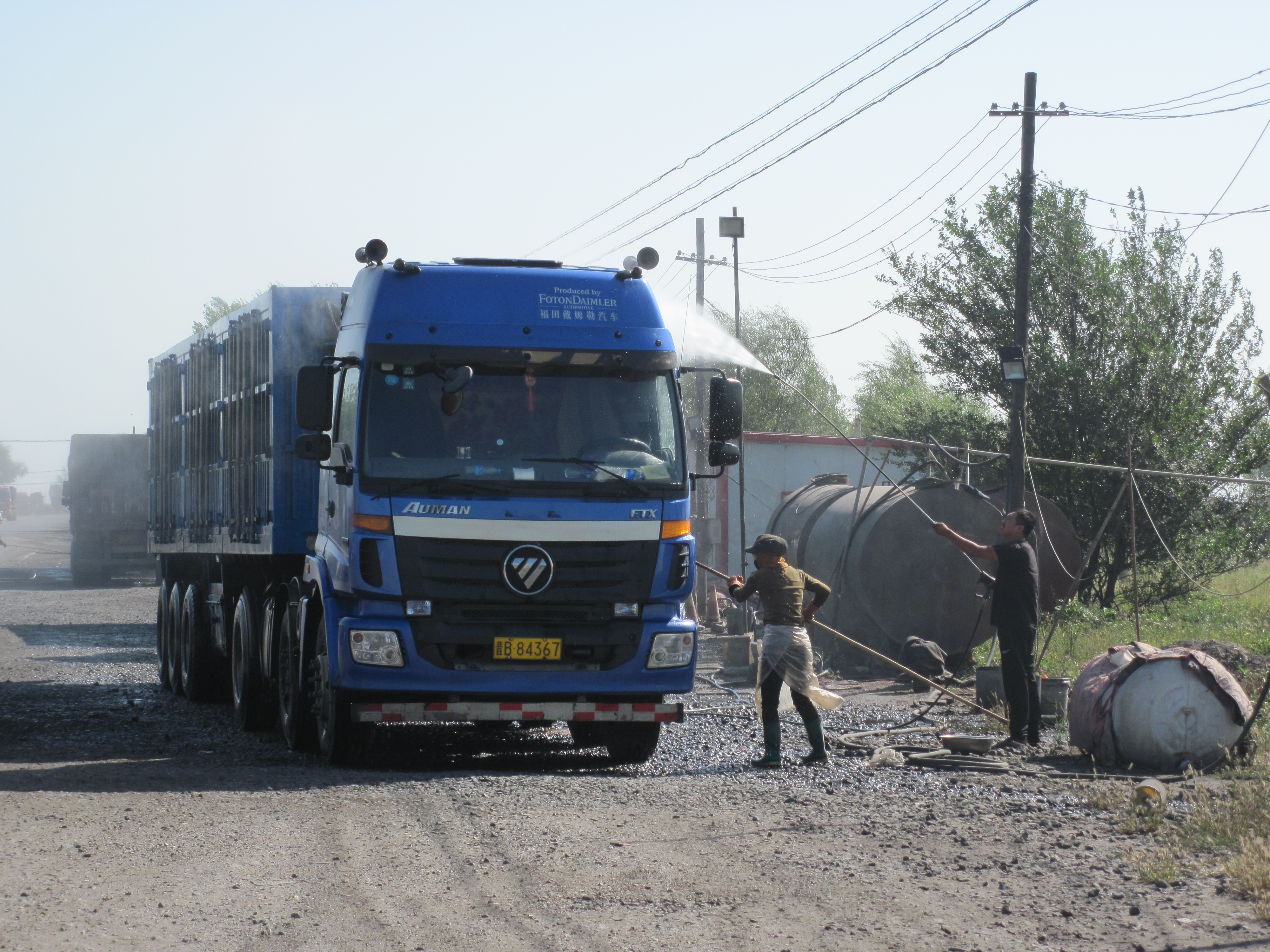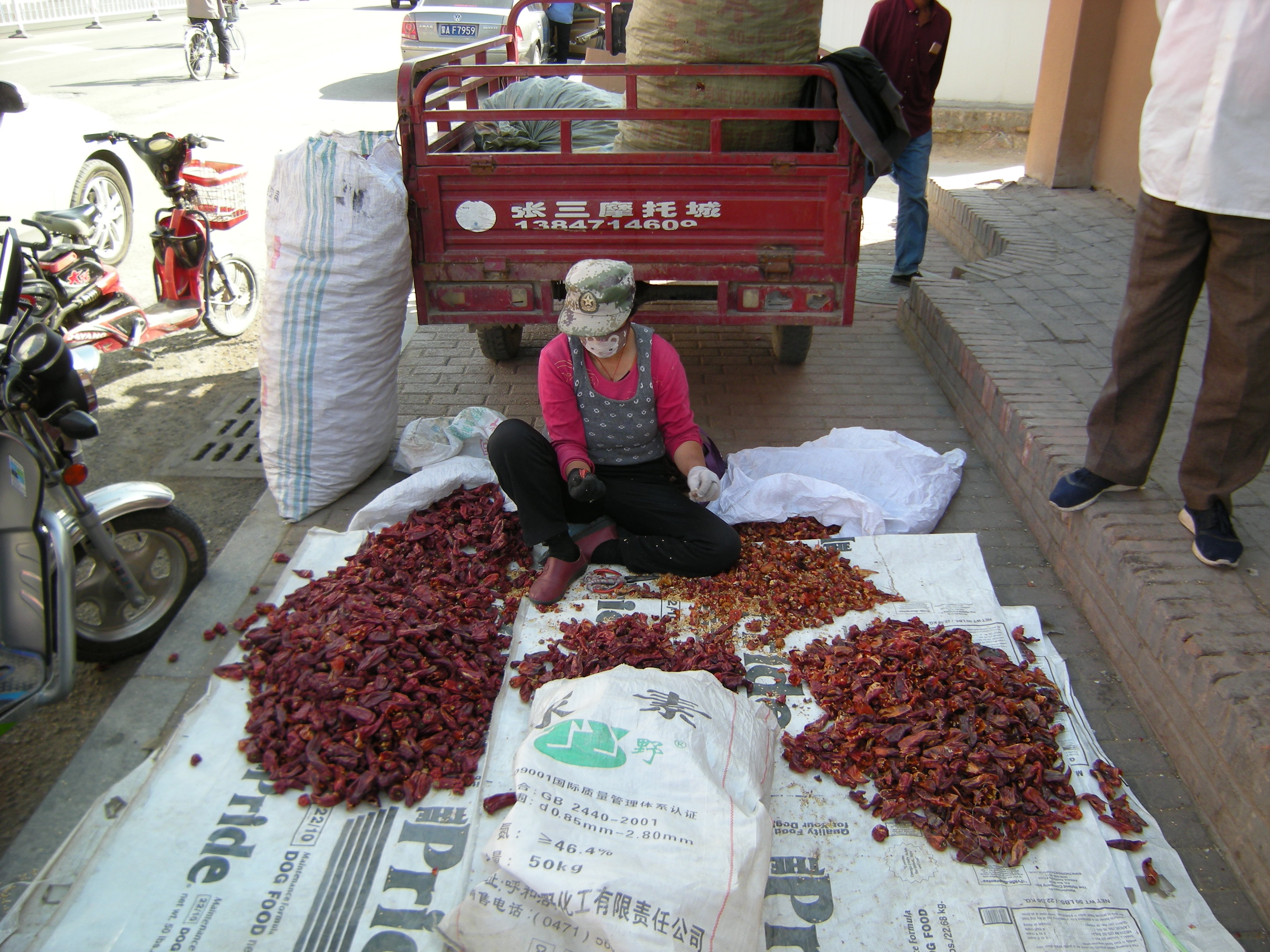 Ik heb redelijk geslapen in m’n tent in de bogentent. Het is in ieder geval rustig gebleven. De buitenkant van mijn slaapzak is wat nat en ik heb geen idee waar dat vandaan komt. Misschien heeft mijn bidon wat gelekt. Ik hang ‘m buiten op wat goji-droogrekken in de zon. Het droogt goed dus nemen we toch al vroeg afscheid van de winkeljuffrouw en nog wat andere vrouwen die een hakmes aan het slijpen zijn en in een teil vlees van het zojuist geslachte dier aan het wassen zijn. De zon schijnt er lekker op los en de eerste 20 km dalen we lekker door dorpjes met heel veel steenfabrieken. Het leem dat nodig is voor de stenen is overal in sleuven en gaten weggegraven wat een heel apart landschap oplevert. Voor de huizen liggen er ook grote hopen met grote brokken steenkool. Na zo’n 58 km komen we in Haojihai waar we wat eten. Er is daar zelfs een hotel. We twijfelen even omdat het er wel heel netjes uitziet maar als de eigenaresse zegt dat er 6 km verderop in Xingrenbu nog wel 5 slaapgelegenheden zijn fietsen we toch maar door. In Xingrenbu worden we naar een hotel verwezen maar als we eenmaal binnen zijn blijkt het toch niet veel soeps te zijn. Er is geen warm water. Het is er vies en de prullenbak in de kamer zit nog vol troep van de vorige gasten. Er zijn geen handdoeken maar als we er om vragen krijgen we dan toch 2 kleine harde lapjes. Waardeloos, maar voor 80 Yuan (ca. € 10,00) mag je natuurlijk ook niet veel verwachten. Op mijn Ziggo email-account krijg ik bericht dat ik waarschijnlijk gehackt ben en dat ze daarom mijn account maar geblokkeerd hebben. Ik wil ze laten weten dat dat waarschijnlijk te maken heeft met de VPS-app maar kan ze door de blokkade niet meer bereiken. Ik verander het wachtwoord maar ook dat helpt me niet verder. Ik vraag Peet of ze contact op wil nemen met Ziggo en activeer mijn Gmail-account zodat ik toch weer kan emailen. Ik stuur de gegevens van onze vliegtickets voor 27 oktober van Peking naar Amsterdam naar Sanne en Peet met de vraag of zij met D-reizen willen bespreken hoe we die kunnen annuleren of overboeken. We eten in het stadje en lopen nog wat rond door het vieze centrum.