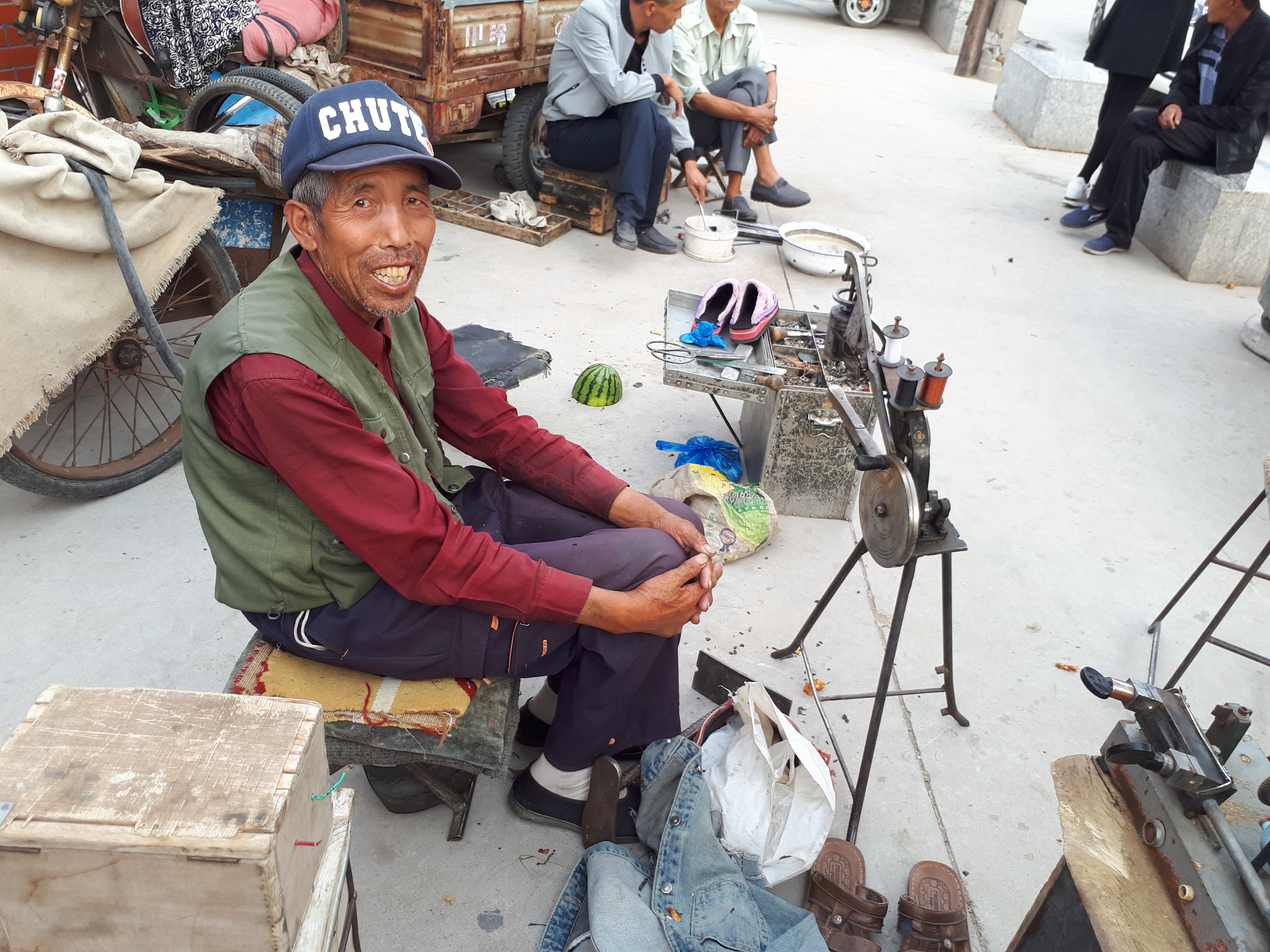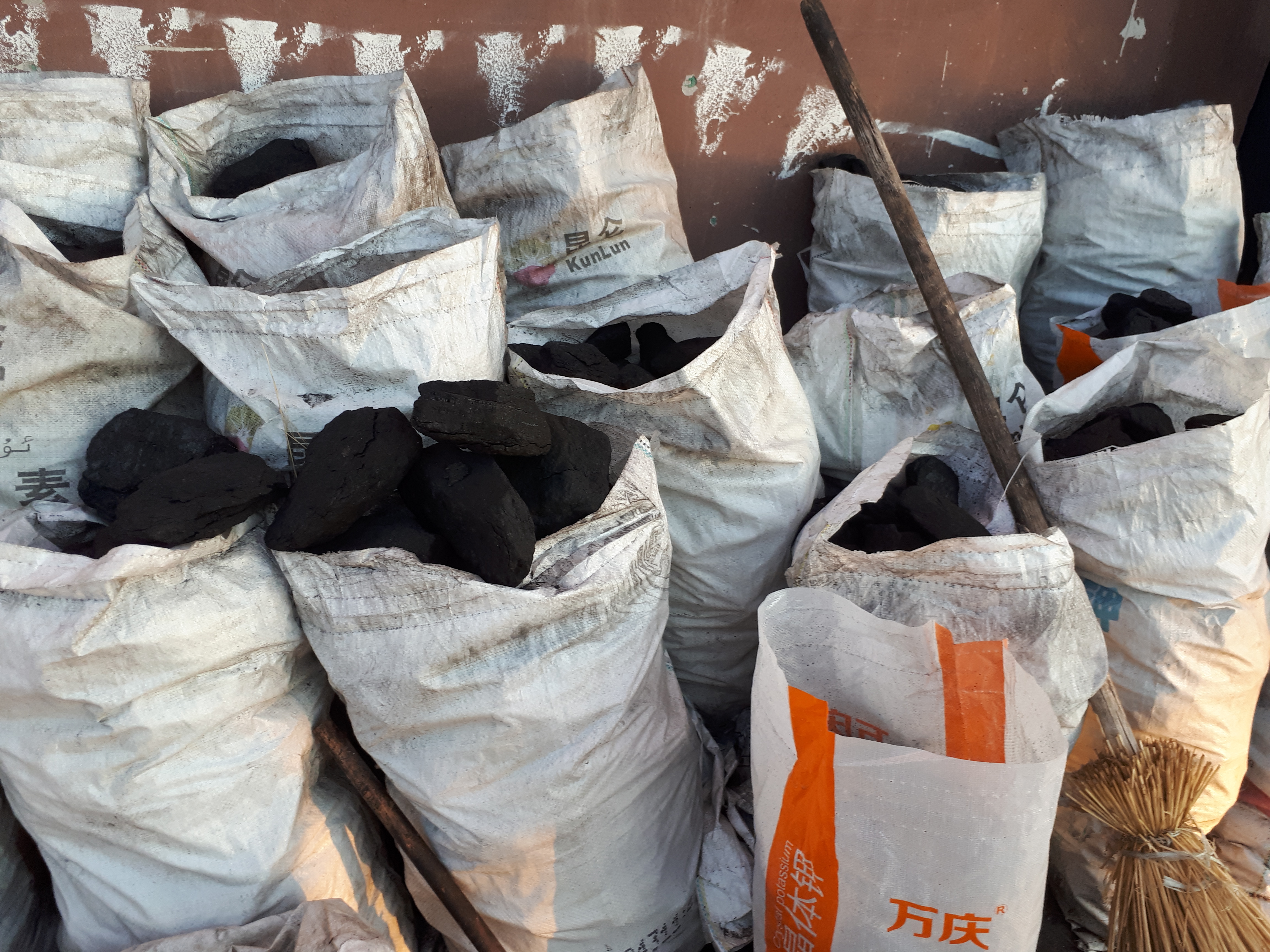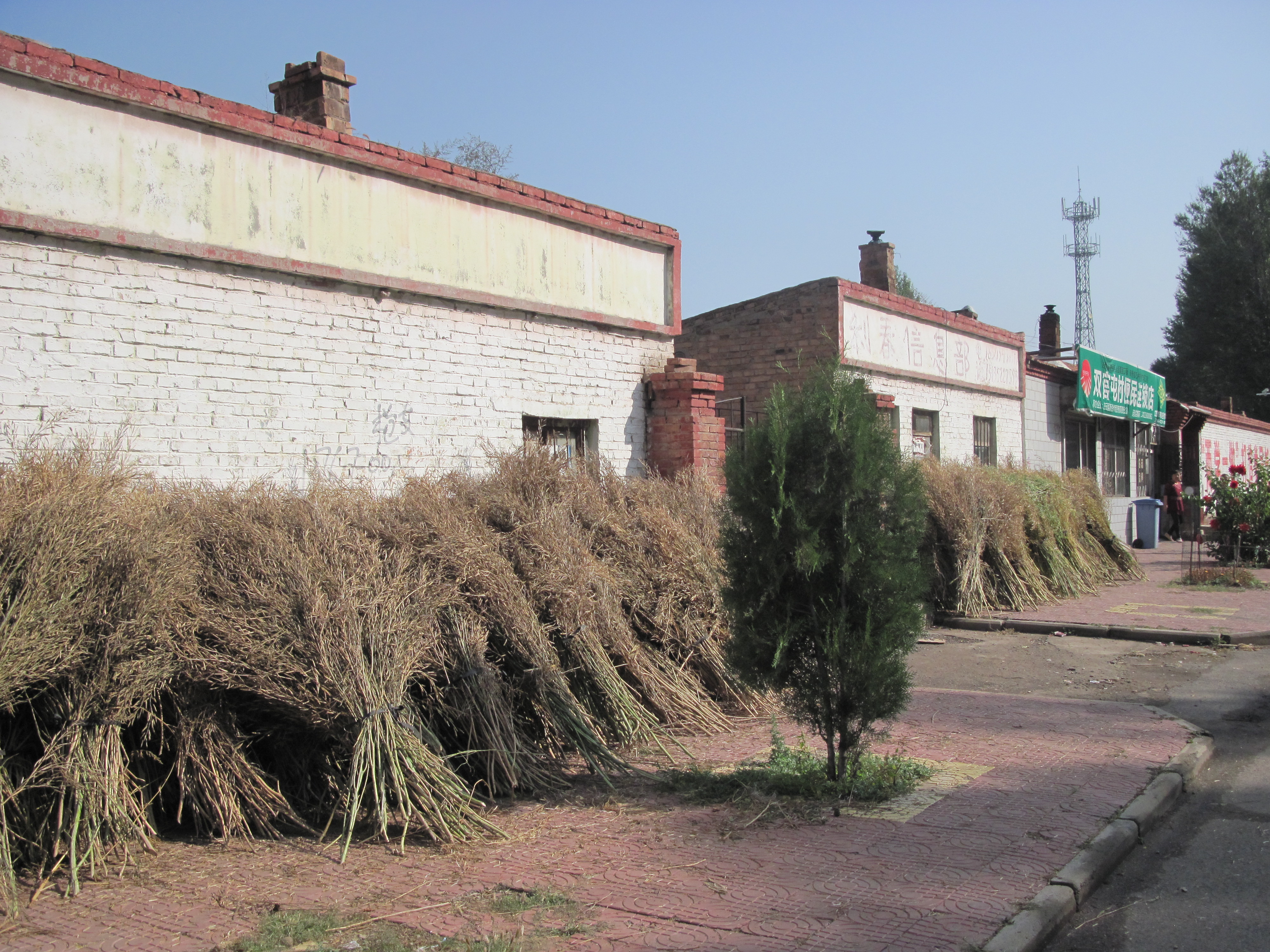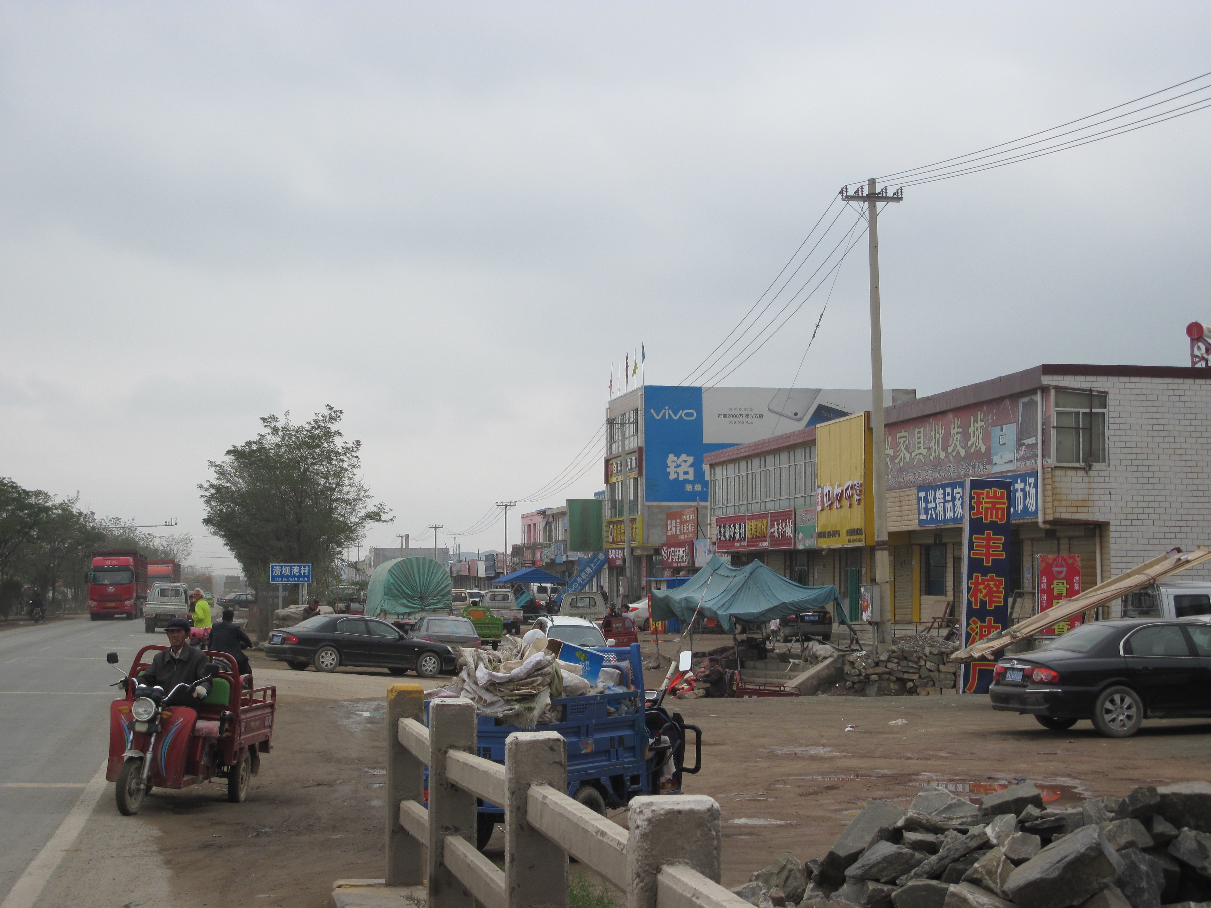 Ik heb redelijk geslapen in m’n tent in de bogentent. Het is in ieder geval rustig gebleven. De buitenkant van mijn slaapzak is wat nat en ik heb geen idee waar dat vandaan komt. Misschien heeft mijn bidon wat gelekt. Ik hang ‘m buiten op wat goji-droogrekken in de zon. Het droogt goed dus nemen we toch al vroeg afscheid van de winkeljuffrouw en nog wat andere vrouwen die een hakmes aan het slijpen zijn en in een teil vlees van het zojuist geslachte dier aan het wassen zijn. De zon schijnt er lekker op los en de eerste 20 km dalen we lekker door dorpjes met heel veel steenfabrieken. Het leem dat nodig is voor de stenen is overal in sleuven en gaten weggegraven wat een heel apart landschap oplevert. Voor de huizen liggen er ook grote hopen met grote brokken steenkool. Na zo’n 58 km komen we in Haojihai waar we wat eten. Er is daar zelfs een hotel. We twijfelen even omdat het er wel heel netjes uitziet maar als de eigenaresse zegt dat er 6 km verderop in Xingrenbu nog wel 5 slaapgelegenheden zijn fietsen we toch maar door. In Xingrenbu worden we naar een hotel verwezen maar als we eenmaal binnen zijn blijkt het toch niet veel soeps te zijn. Er is geen warm water. Het is er vies en de prullenbak in de kamer zit nog vol troep van de vorige gasten. Er zijn geen handdoeken maar als we er om vragen krijgen we dan toch 2 kleine harde lapjes. Waardeloos, maar voor 80 Yuan (ca. € 10,00) mag je natuurlijk ook niet veel verwachten. Op mijn Ziggo email-account krijg ik bericht dat ik waarschijnlijk gehackt ben en dat ze daarom mijn account maar geblokkeerd hebben. Ik wil ze laten weten dat dat waarschijnlijk te maken heeft met de VPS-app maar kan ze door de blokkade niet meer bereiken. Ik verander het wachtwoord maar ook dat helpt me niet verder. Ik vraag Peet of ze contact op wil nemen met Ziggo en activeer mijn Gmail-account zodat ik toch weer kan emailen. Ik stuur de gegevens van onze vliegtickets voor 27 oktober van Peking naar Amsterdam naar Sanne en Peet met de vraag of zij met D-reizen willen bespreken hoe we die kunnen annuleren of overboeken. We eten in het stadje en lopen nog wat rond door het vieze centrum.