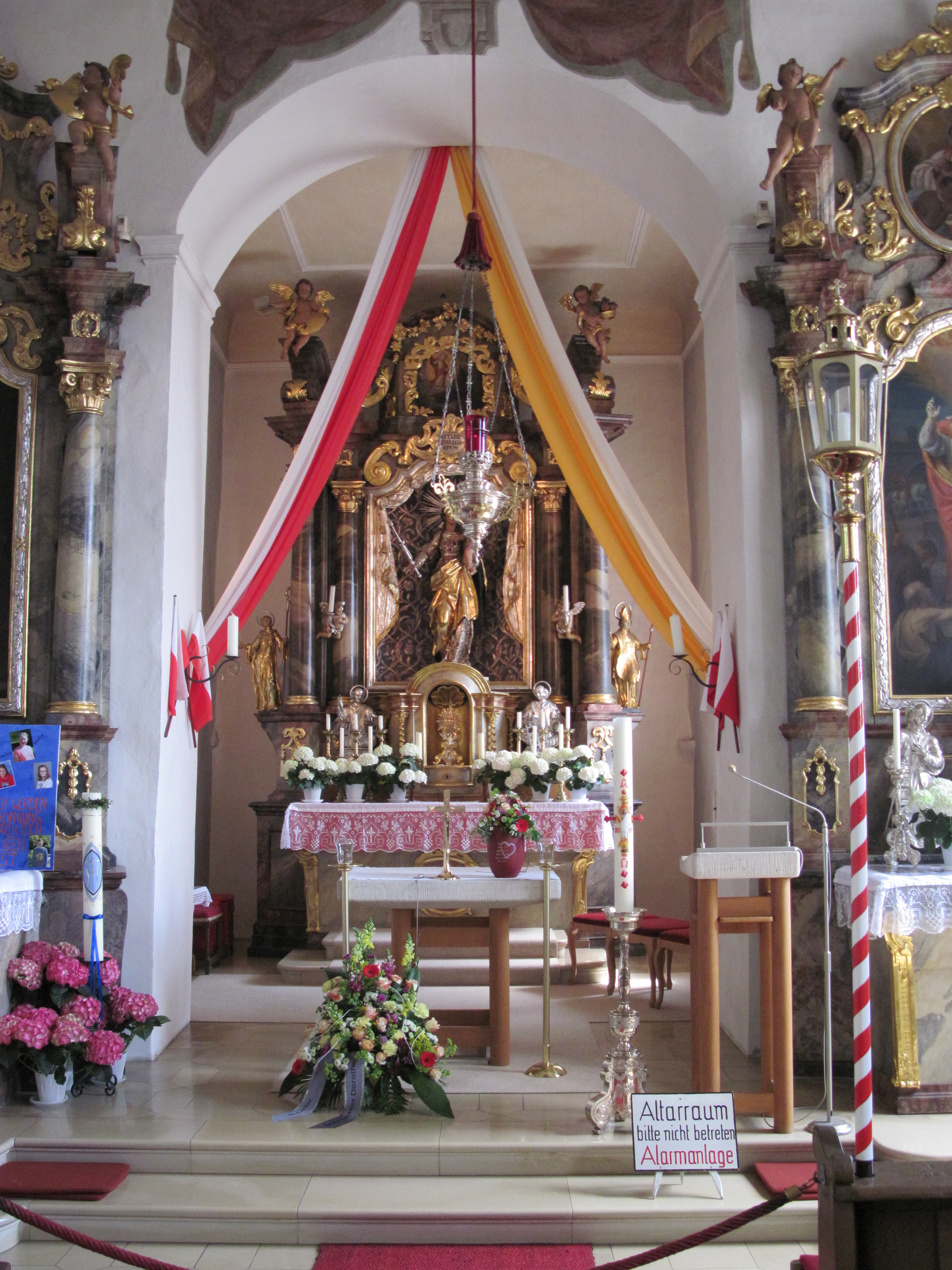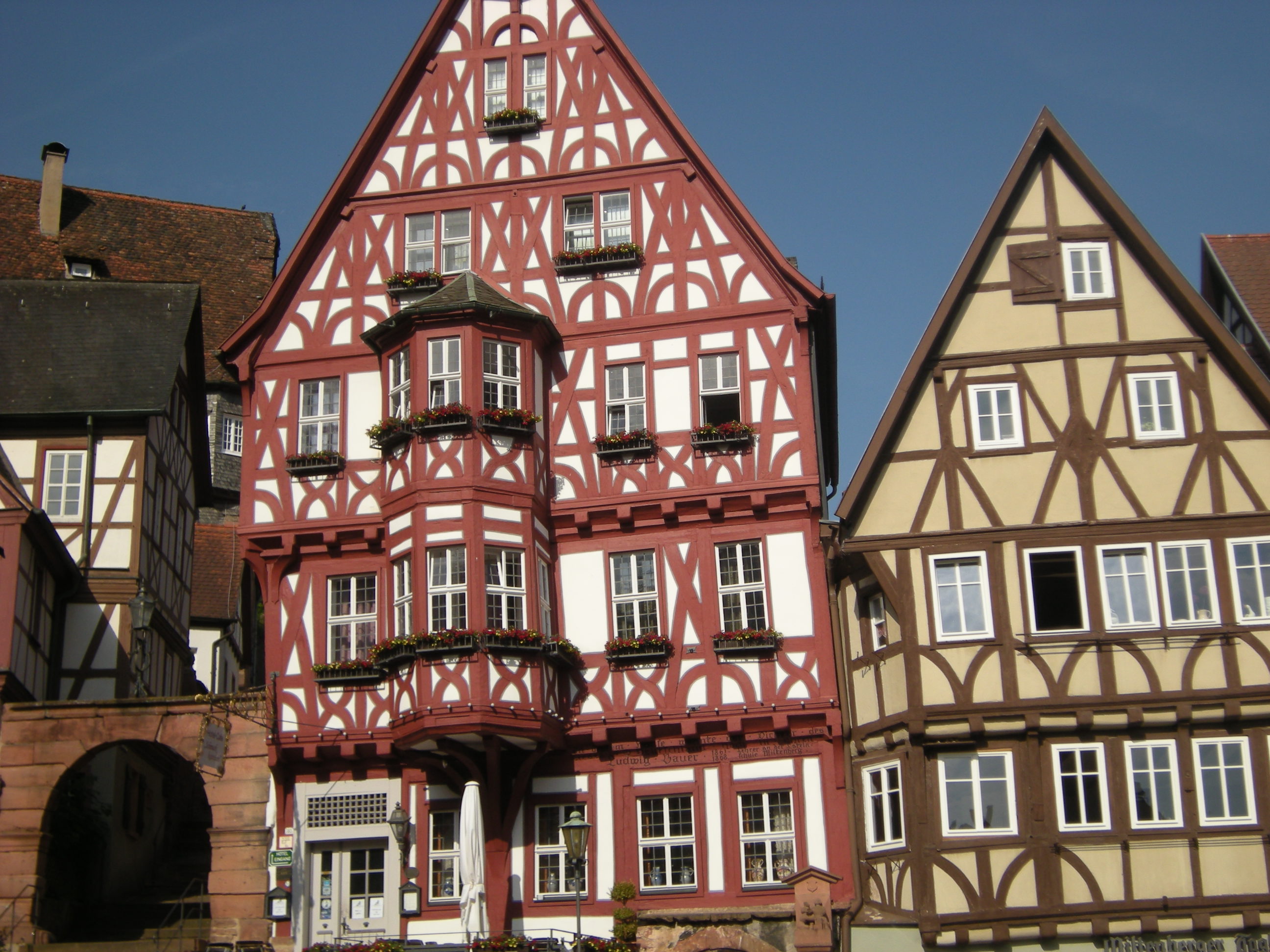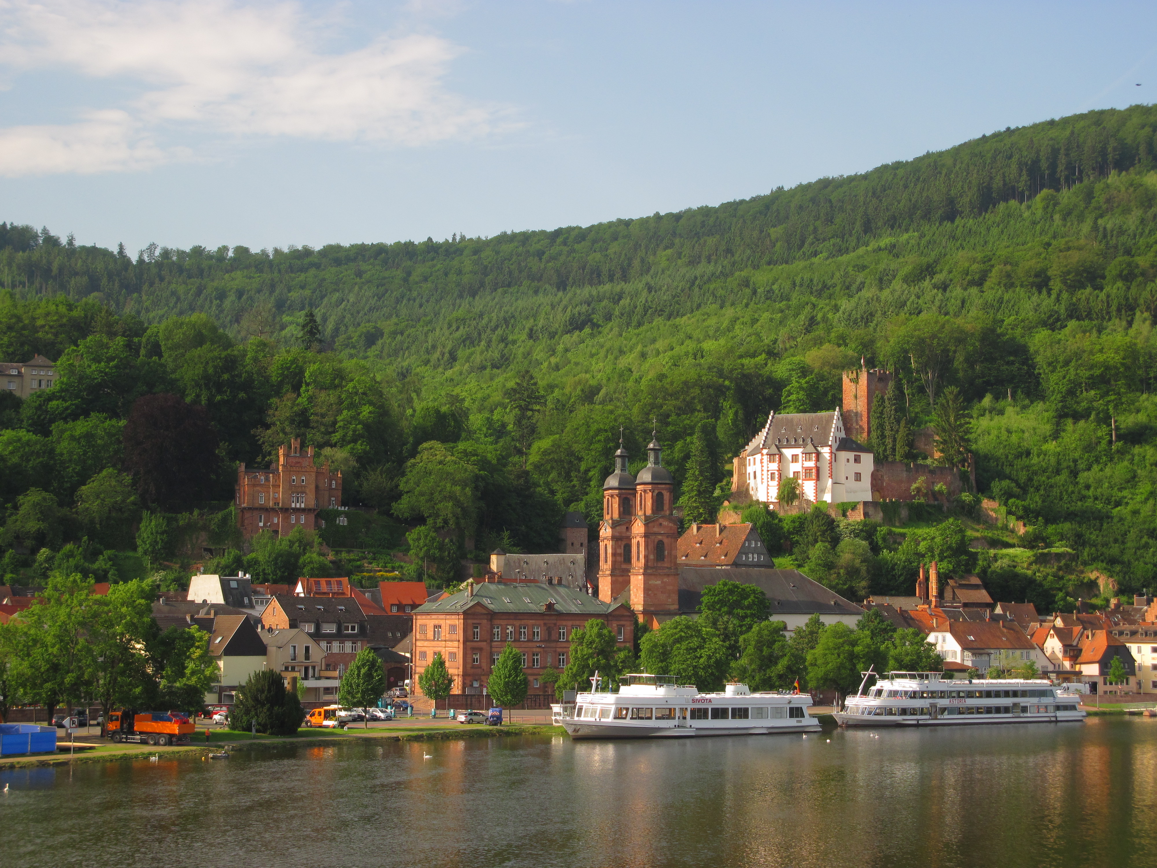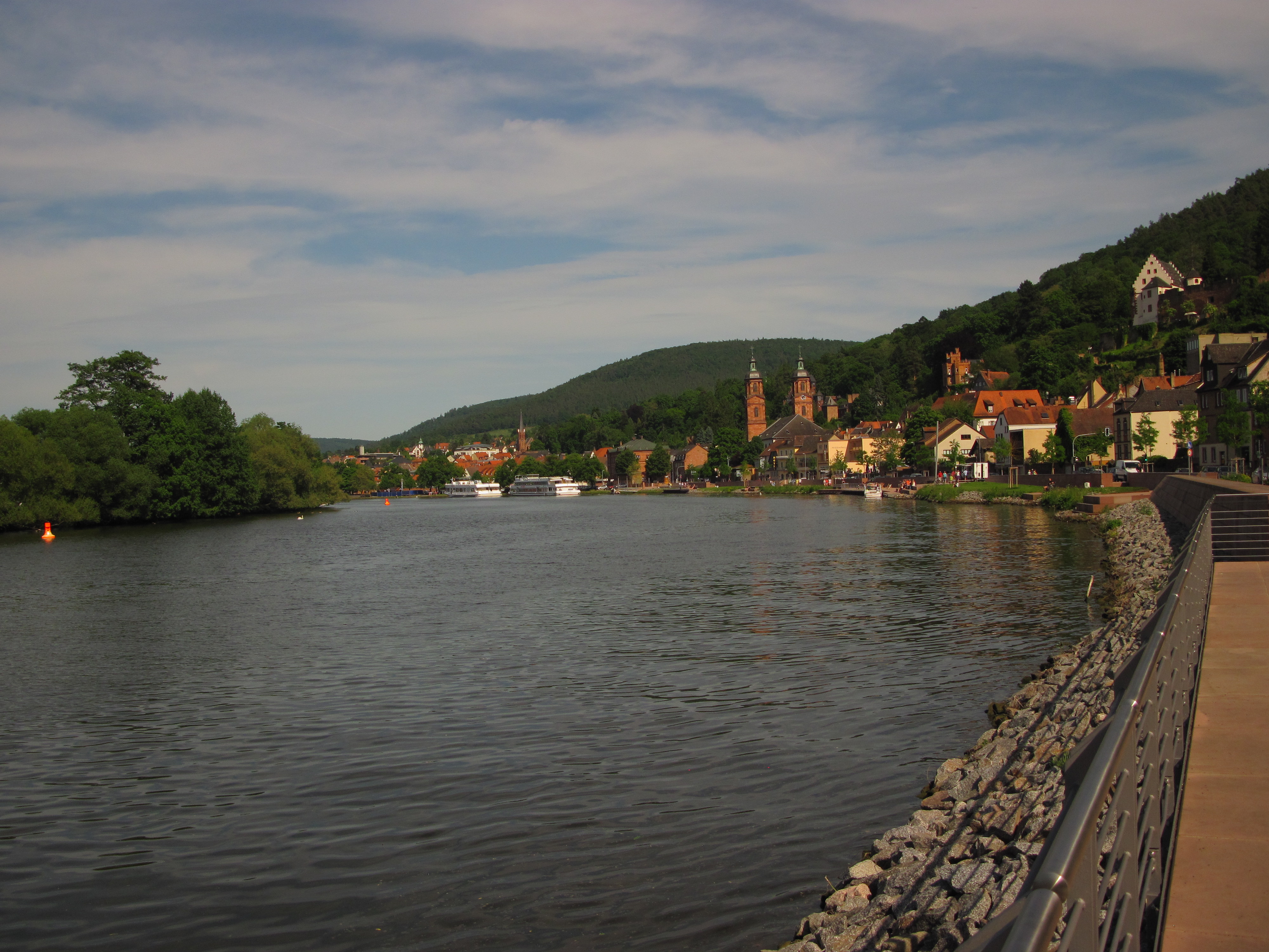 Het is zondag en daar worden we in elk dorpje dat we passeren door der Pfarrer goed aan herinnerd. Overal worden we met klokkengebeier ontvangen. Bij Seligen-Stadtmoeten we met een pontje de Main over. Voor we oversteken gaan we even het stadje in voor een koffiepauze. Het is er druk en we horen een fanfare kerkmuziek spelen. Er lopen ook veel jonge kinderen, begeleid door hun familie,rond in mooie kleren en met een boeketje bloemen. Het is de dag van hun Plechtige Communie? We lopen naar de basiliek en komen dan uit bij een openluchtmis die bijna ten einde is. We kijken het even af en gaan na de plechtigheid nog even de kerk in. 4 mannen in mooie pakken bewaken daar een zilveren kist. Wat er in zit weten we niet maar het ziet er wel ‘belangrijk en heilig’ uit. We lopen nog even door en paar mooie straatjes en steken dan met het pontje de Main over. Het is een mooie maar ook weer hete dag. Als we door het open veld fietsen voel je de zon branden. Het is zeker 35 graden! Maar goed dat we veel water meegenomen hebben vanmorgen. In Aschaffenburg komen we in een optocht terecht. We fietsen even met de stoet mee op en zwaaien ook maar naar het enthousiaste publiek. Voorbij fietsen wordt door de brandweer verhinderd. Via een omweggetje kunnen we de stoet toch passeren. Rond half vijf arriveren we op een mooie aan de Main gelegen camping in Miltenberg. Het was opnieuw een mooie dag. Heet maar toch weer 87 km dichter bij Peking! Als we ’s avonds op een terras een lekker koud biertje drinken horen we dat Dumoulin de Giro gewonnen heeft. Nu wij nog! Na het eten lopen we nog een rondje door de Altstad.