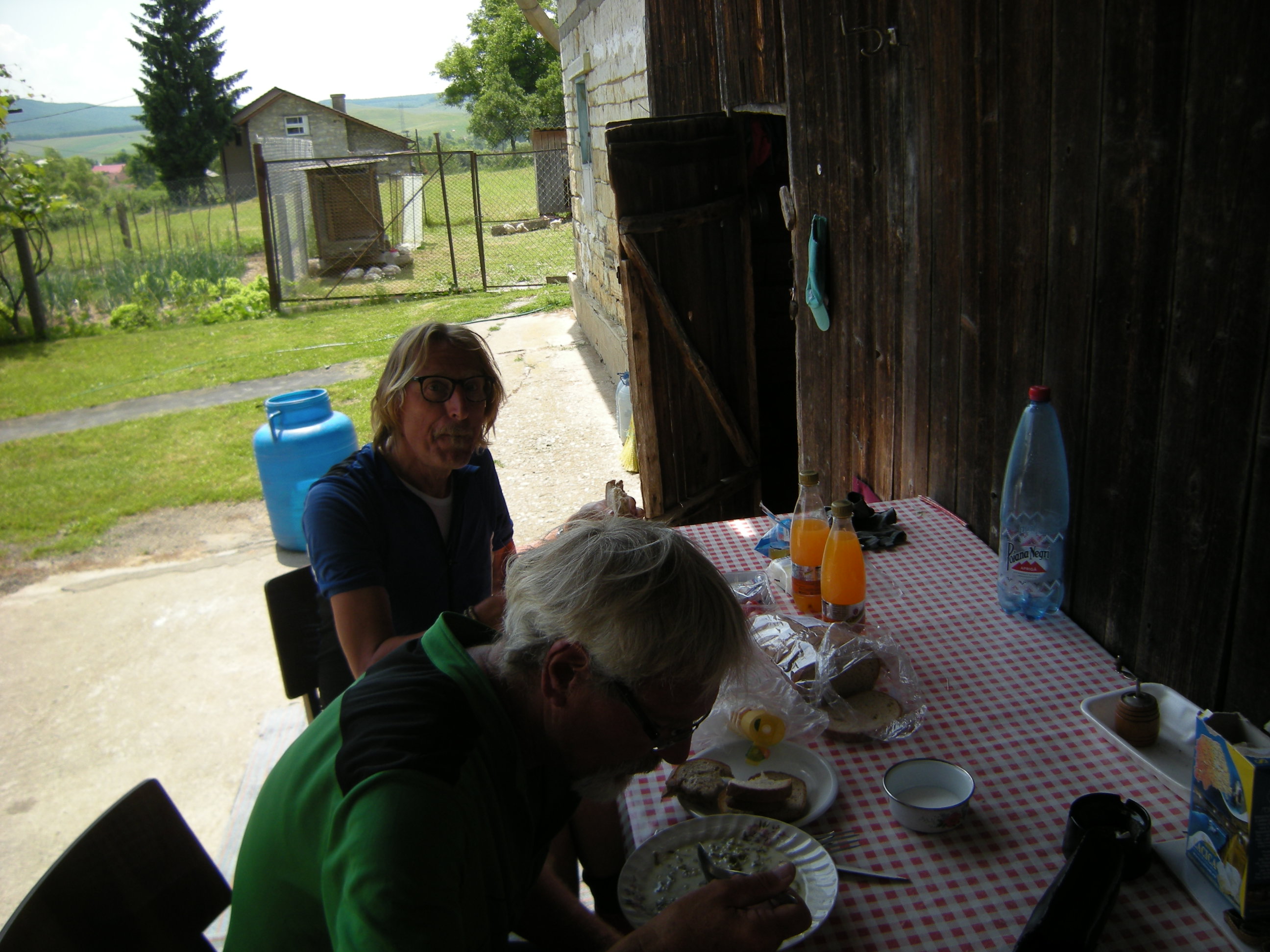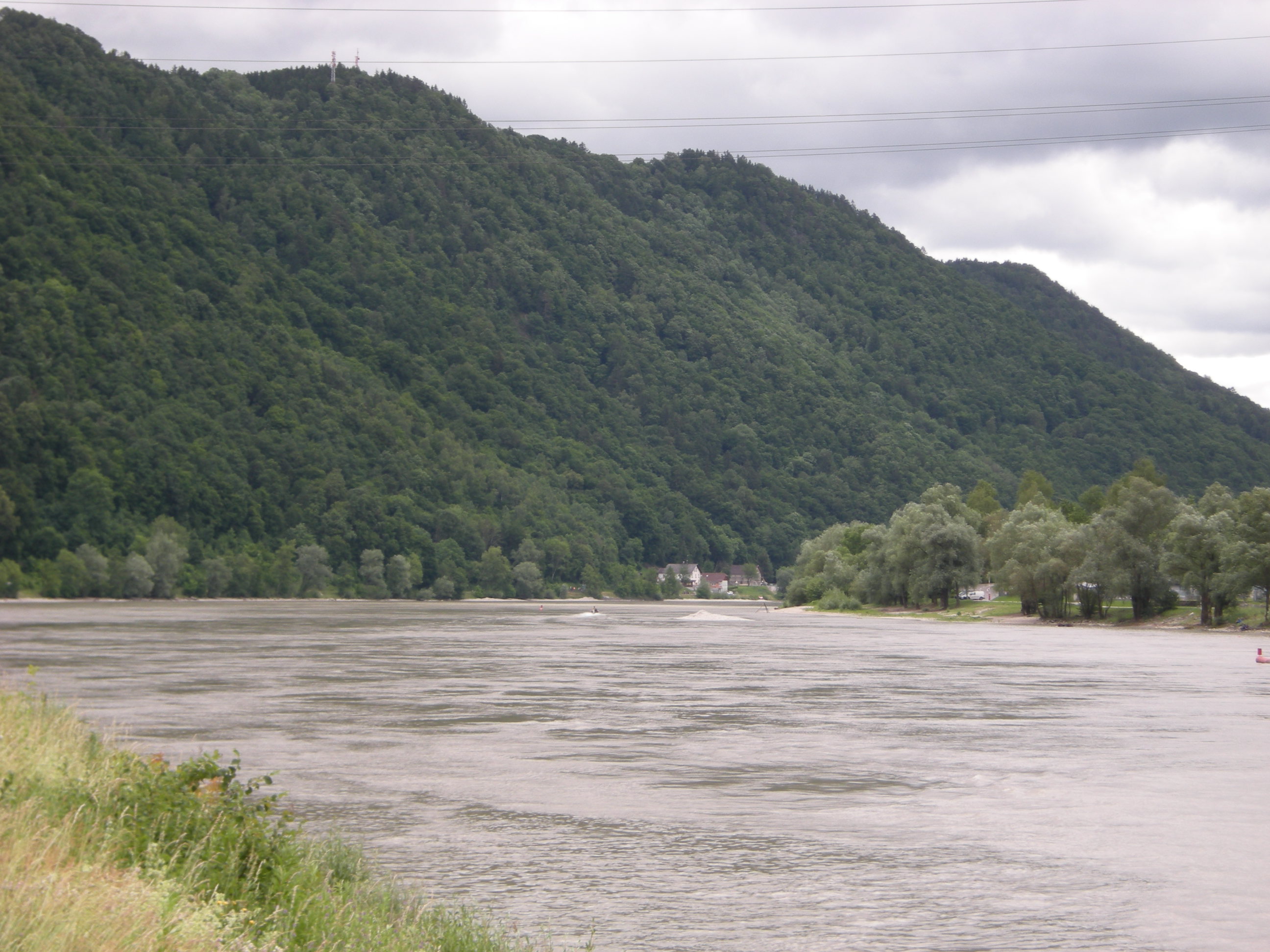 Vandaag rijden we de hele dag langs de, door de velden slingerende, Donau. Soms klopt het Limesboekje niet met de GPS-route. De GPS-route is waarschijnlijk wat verouderd en stuurt ons soms over nu doodlopende straten op een industrieterrein. Wytze heeft moeite met het lezen van het routeboekje dus af en toe moeten we de route zelf zien te vinden. Als we door de kleine stadjes fietsen kijken we uit naar winkels die mogelijk slaapmatrasjes verkopen. Die van Wytze heeft namelijk vannacht zijn laatste adem uitgeblazen. Als we in Bogen bij een klein terrasje aan de koffie zitten tipt de serveerster ons om naar een outdoor-winkel in het centrum te fietsen. De winkel is snel gevonden maar helaas ze verkopen er eigenlijk alleen maar outdoor-kleding. Op de vraag:”Haben Sie ein selbst aufgeblasenen Matratse?” Sturen ze ons door naar een sportzaak van Inter. Bij Inter is het uitverkoop en warempel ze verkopen er zelfs ook selfinflating matrasjes. Wytze is gered en klaart helemaal op. De route verloopt verder probleemloos en kent ook geen echte bijzonderheden. We slingeren de hele dag met de Donau mee door de Beierische velden en luisteren bijna onophoudelijk naar het geroep van de koekoek die ons al sinds we in Duitsland fietsen vergezelt. Onze camping, Camping Dreiflüsse, ligt bij Irring, zo’n 500 m van de route af. Op het terrein is zelfs een Lourdesgrot! Er zijn daar veel Nederlanders. Vol ongeloof horen ze onze plannen aan en wensen ons heel veel succes. Ze vinden ons toch wel heel stoer. Het avondeten hebben we onderweg al ergens ingeslagen. Voor 2 dagen zelfs omdat het morgen alweer zondag is. We laten het ons goed smaken. Voor de knabbel hebben we voor vanavond een doosje dadels klaarliggen. Ook lekker.