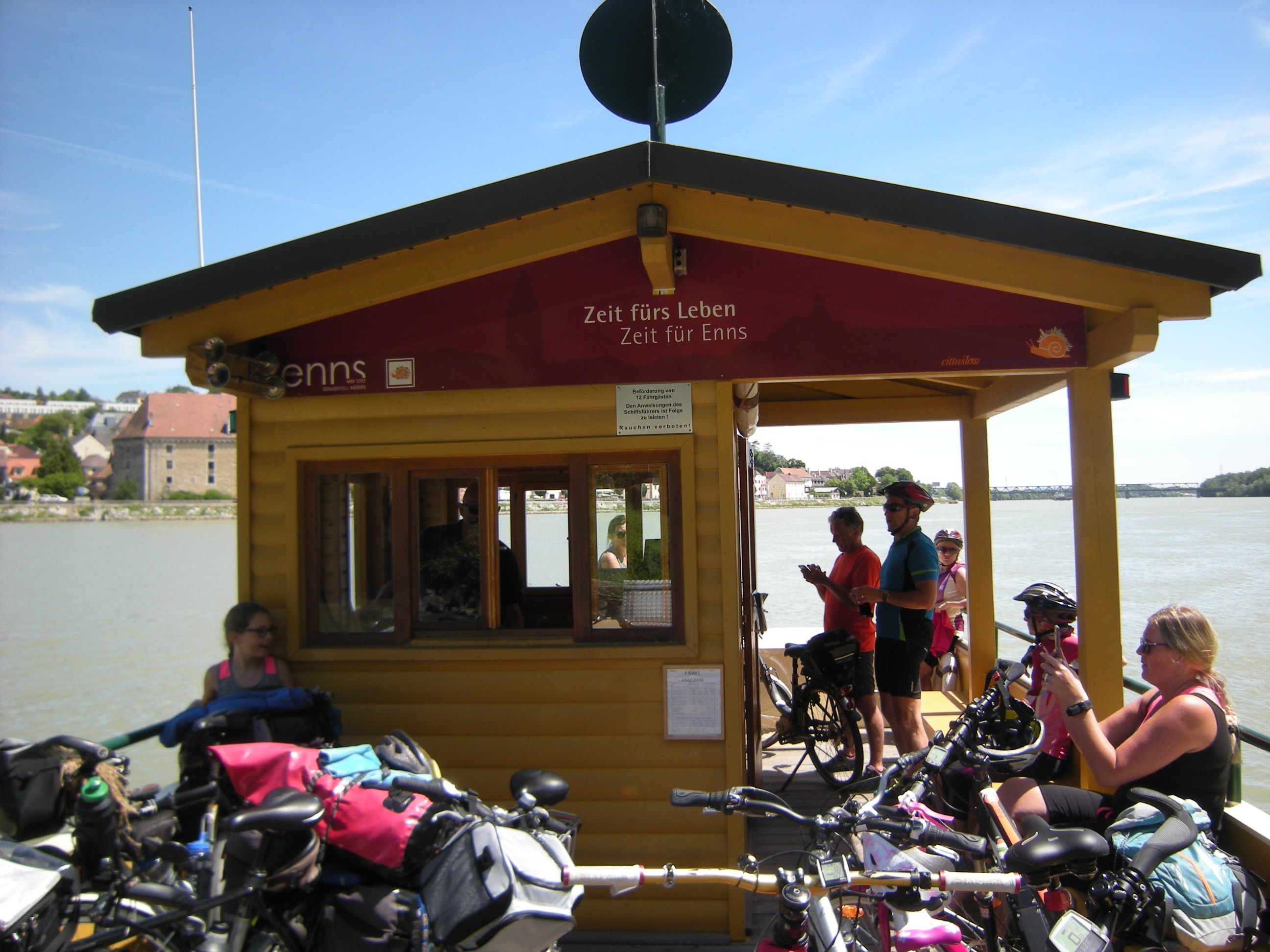 Wytze heeft opnieuw niet goed geslapen. Hij heeft veel last gehad van de verkeersdrukte en is slecht gehumeurd. Ook zijn tent blijft veel te lang nat naar zijn zin. Toch zitten we wel weer mooi op tijd op het zadel. Recht voor de camping kun je met een bootje naar de overkant van de Donau en hoef je niet terug te fietsen naar de brug. Dit is voor Wytze echter geen optie! Voor de boot moet je betalen, de brug is gratis en we fietsen toch graag!!?? , dus gaan we over de brug! Het is heerlijk fietsweer en de wind neemt ons in een lekker tempo mee. Bij Ybbs loopt de gps-route door het centrum. Dat lijkt me een mooie plek om even te stoppen voor een kopje koffie en wat rond te kijken, maar Wytze wil er nog niet aan. Hij wil per se het routeboekje volgen waarin de route langs het centrum afloopt.Gelukkig is er even verder als we zo’n 30 km gefietst hebben ook nog een terras dus stel ik voorzichtig voor om daar dan even te stoppen. Helaas vindt Wytze het geen inspirerende plek en dus fietsen we toch maar weer verder. Ik kan het niet laten om even aan te geven dat ik fietsen leuk vind maar dat de pauzes eigenlijk de tocht pas leuk maken omdat er dan tijd is om wat met elkaar te praten. Even verder komt er heus nog wel een gelegenheid om te stoppen zegt Wytze. Maar er komt niets. Pas na 40 km is er eindelijk iets. We zeggen niet veel tegen elkaar en het is duidelijk dat we na zo’n 3 weken, waarin we 24 uur per dag met elkaar optrekken, onze irritaties aan elkaar willen laten zien. In de stiltes begin ik een beetje inzicht te krijgen in Wytzes voorkeuren, nl.: