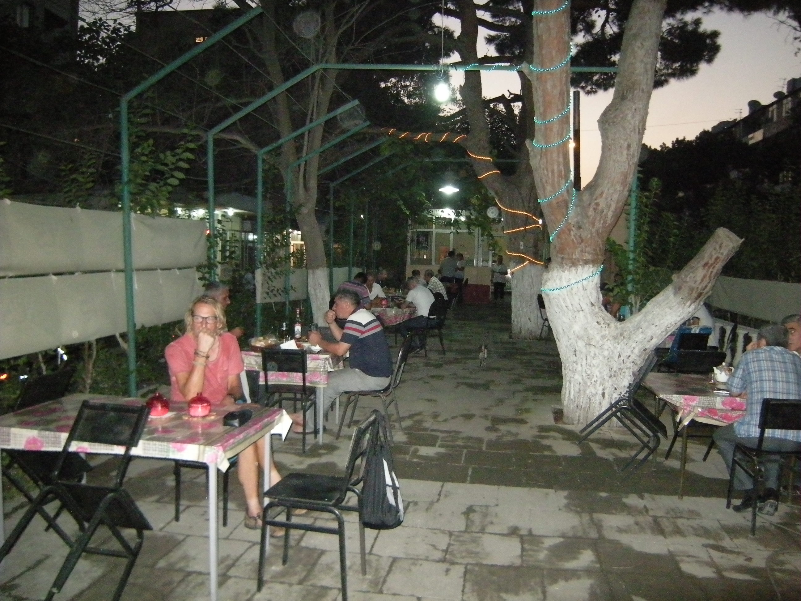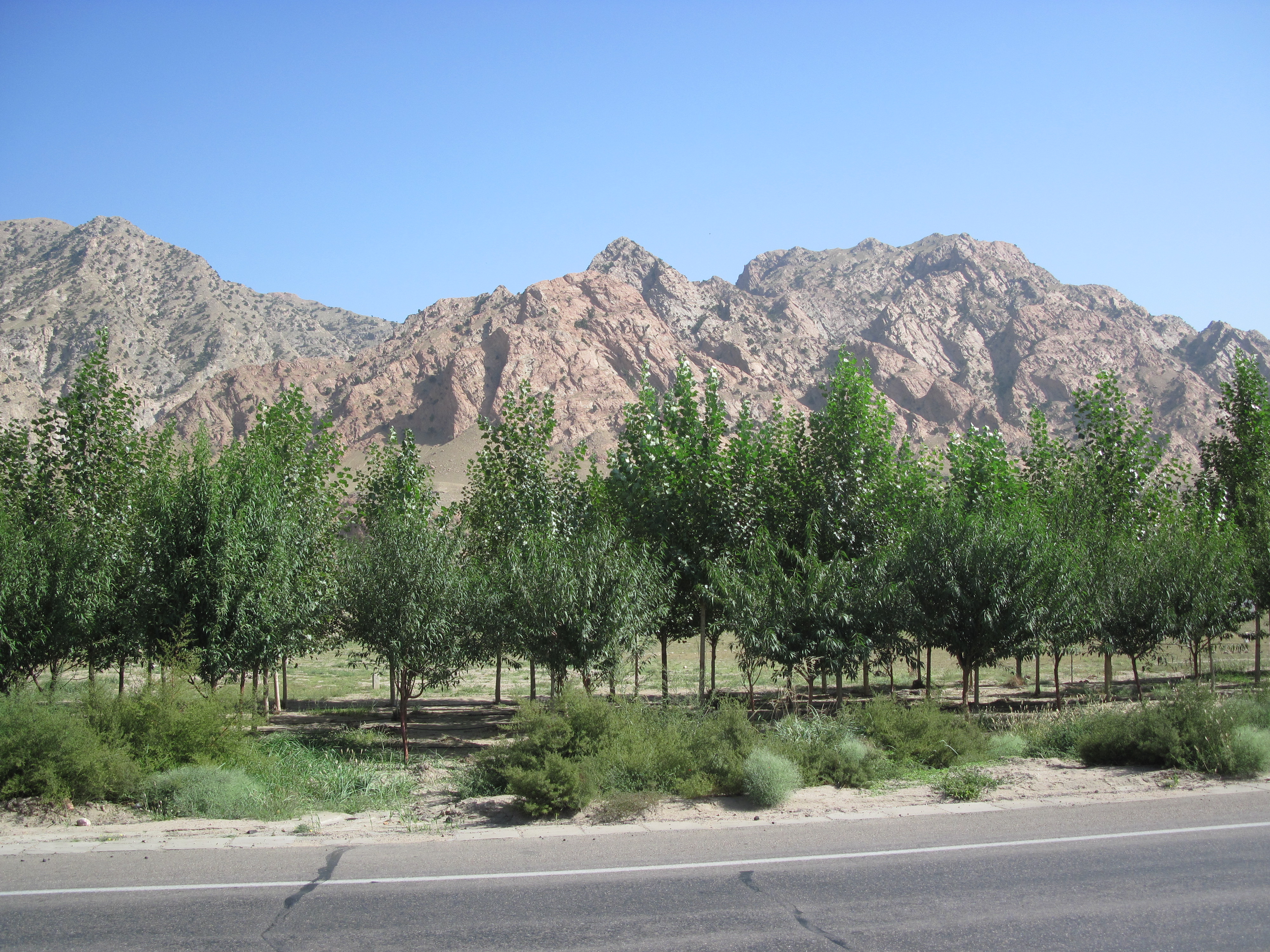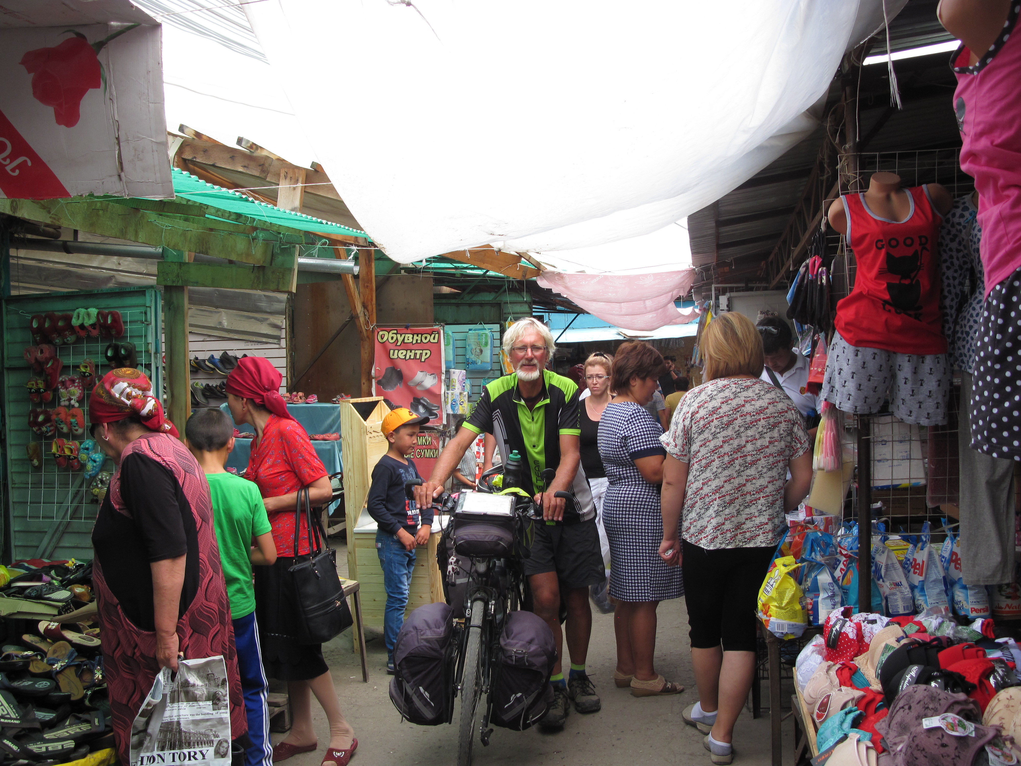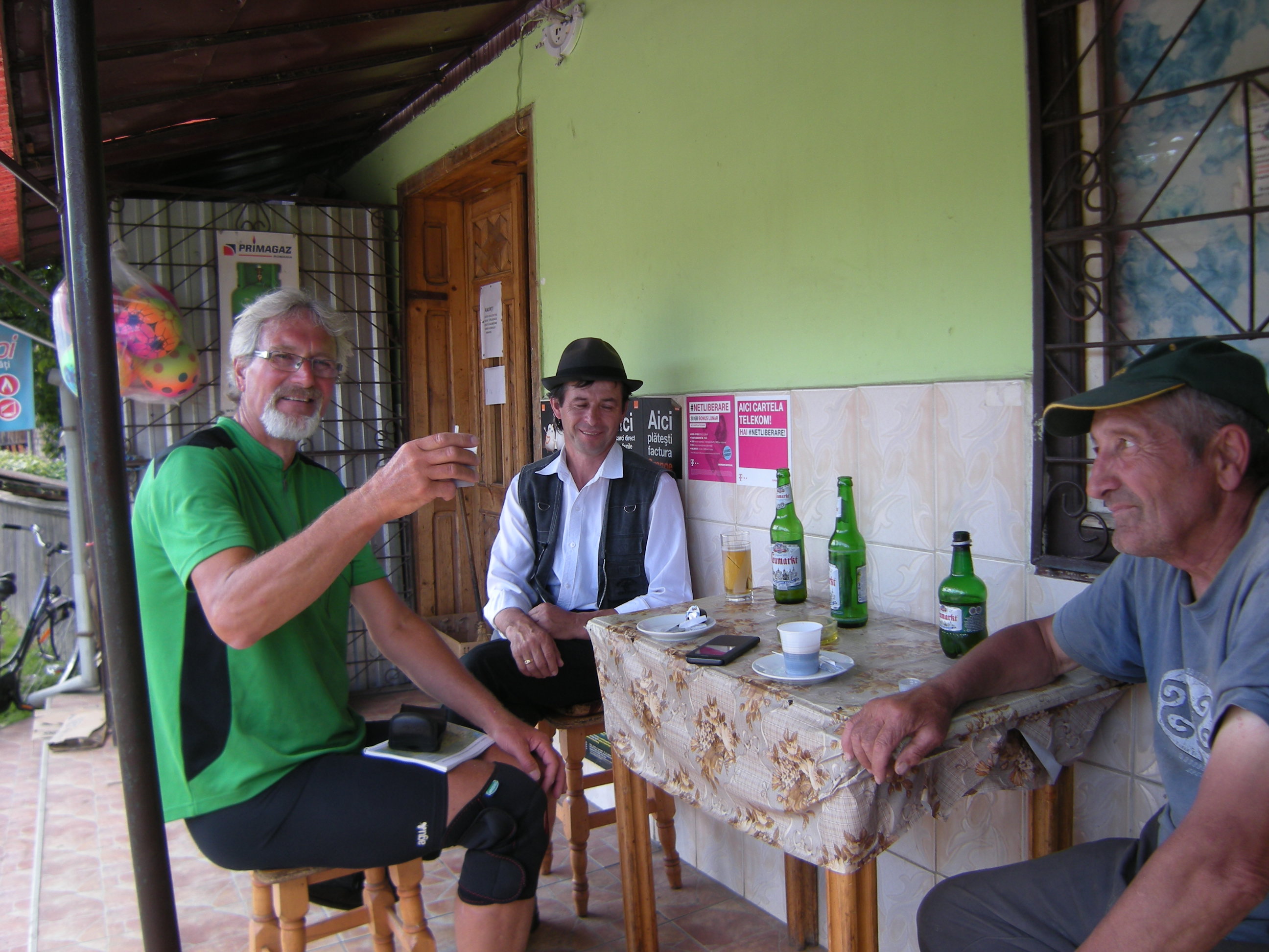 Tot 8 uur slapen we uit. We hebben maar een korte route op de planning staan. De achterband is nog hard we kunnen vertrekken. Voor we de grote stad uitfietsen kopen we in een winkeltje zoals gebruikelijk water. Als we de bidons aan het vullen zijn ontstaat er een toeloop van mensen. Ze hangen krom gebogen over de landkaart dus vertellen we maar weer eens waar we vandaan komen en waar we naar toe gaan. Ze vinden het allemaal prachtig. Vol bewondering gaan de duimen de lucht in. Wij zwaaien ze toe als we verder fietsen. Het duurt een hele tijd voordat we de stad uit zijn. Eigenlijk rijden we de hele dag door de bewoonde wereld. De bergen in het noorden lichten door de hete zon oranje op. De hele dag hebben we wel wat te bekijken en daar nemen we dan ook wel de tijd voor. We stoppen bij een groot kassencomplex om die glastuinbouw wat nader te bekijken. We komen langs een winkel die E-scooters en E-driewielers verkoopt. We hebben er nu al zoveel gezien dat we wel eens willen weten wat die hier dan kosten. Een E-scooter kost 1900 Yuan ( € 243,00) een driewieler 4600 Yuan ( € 587,00). Wytze raakt zo enthousiast over de prijs dat hij met zijn zwager, een ex Philips medewerker een handeltje op wil gaan zetten. Dan is het onderhand tijd om de 110 te gaan verlaten en over de gele weg te gaan. Met maps.me lukt dat goed. De GPS werkt hier niet omdat hij geen satelliet kan vinden. In Tumd Youqi staan we op de plaats waar het geboekte hotel zou moeten staan maar het is er niet dus vragen we het aan een paar meiden die via het vertaalprogramma op hun mobieltje laten weten dat we op ‘the second intersection to the right’ moeten. Dit wordt nog bevestigd door een man op een E-driewieler die tot de afslag met ons meerijdt. We vinden wel een hotel maar niet die waar we gereserveerd hebben. We vragen het nog een keer aan een man van dat het hotel die de route voor ons uittekent en ons daarna ook nog een groot stuk voorrijdt. Ja , daar is ons Jinjiang Hotel, een keten waar we al wel vaker geslapen hebben. Bij binnenkomst logged mijn telefoon meteen in op de Wifi omdat de code in al die hotels hetzelfde is. Omdat we in de wijk rondom het hotel geen fatsoenlijke eettent kunnen vinden eten we in het restaurant van het hotel. We laten de ‘kippenpoep’ met de gestoomde bladgroente en de nasi goed smaken. Bij de receptie kopen we nog een lekker ijsje en een flesje Tsingtao bier voor op de kamer.