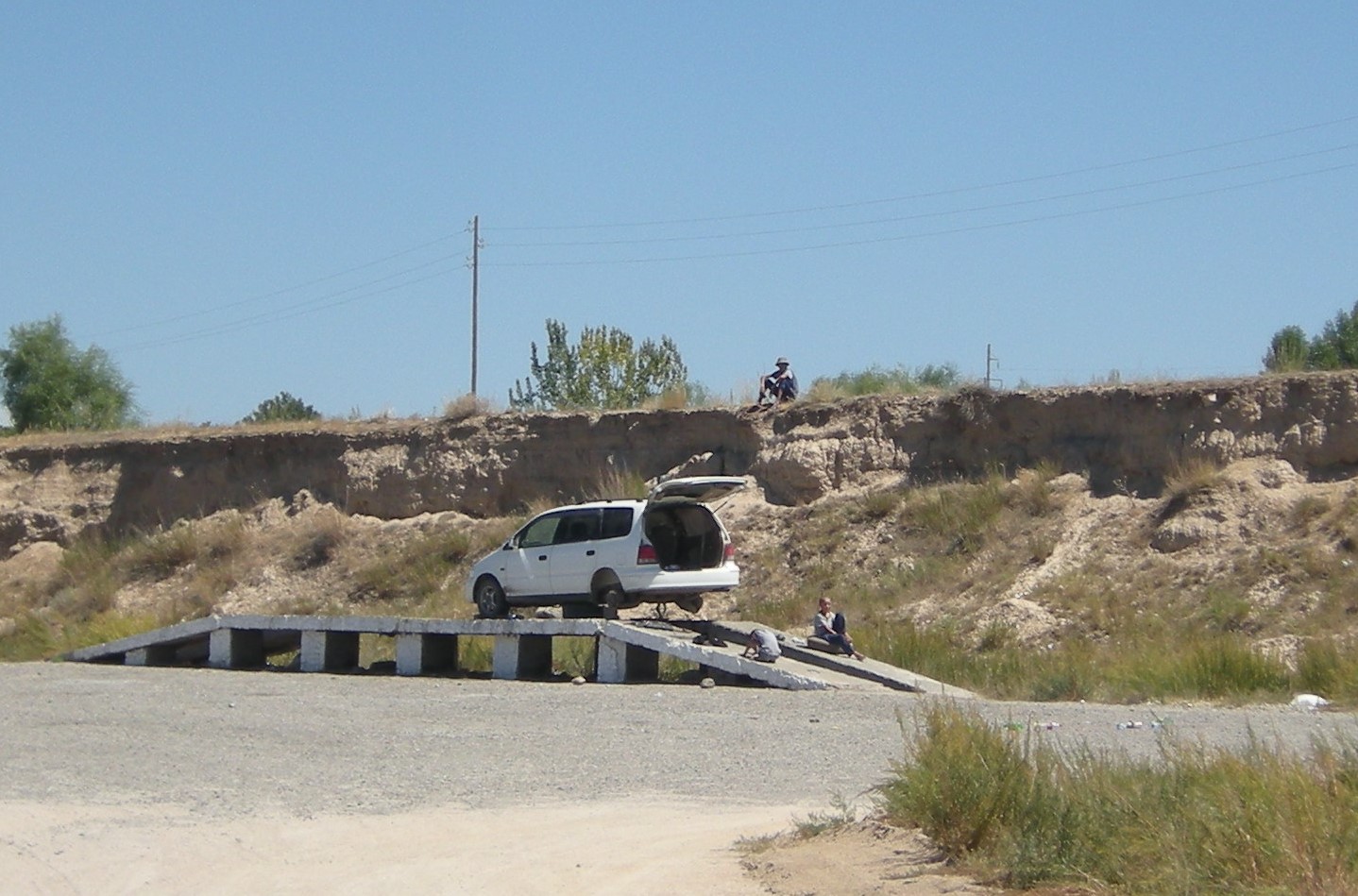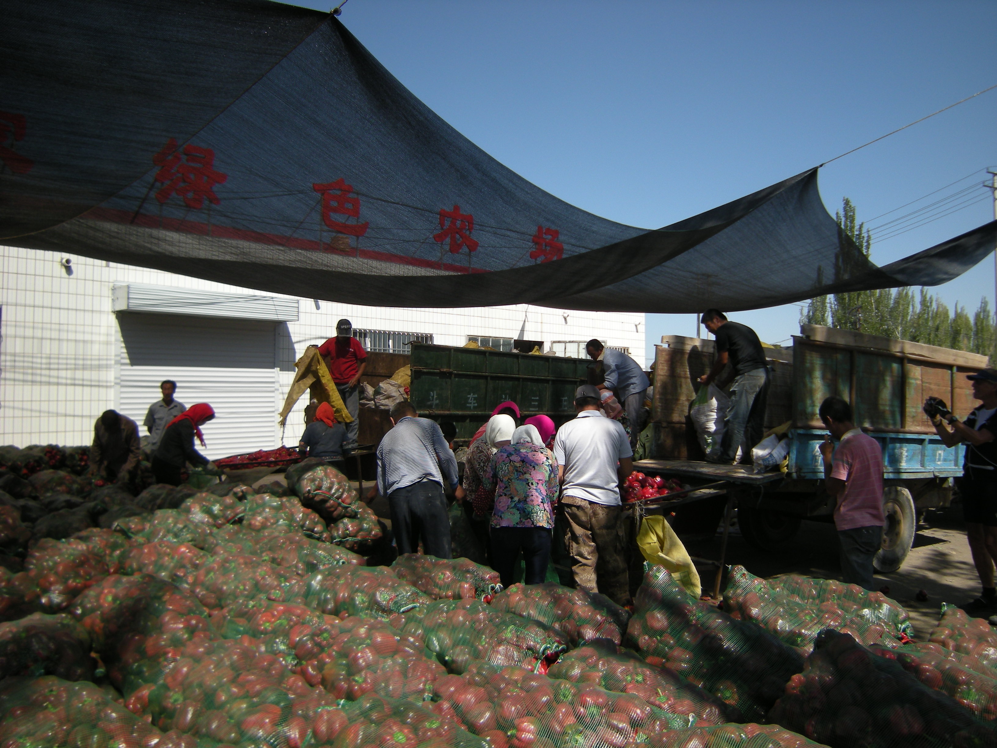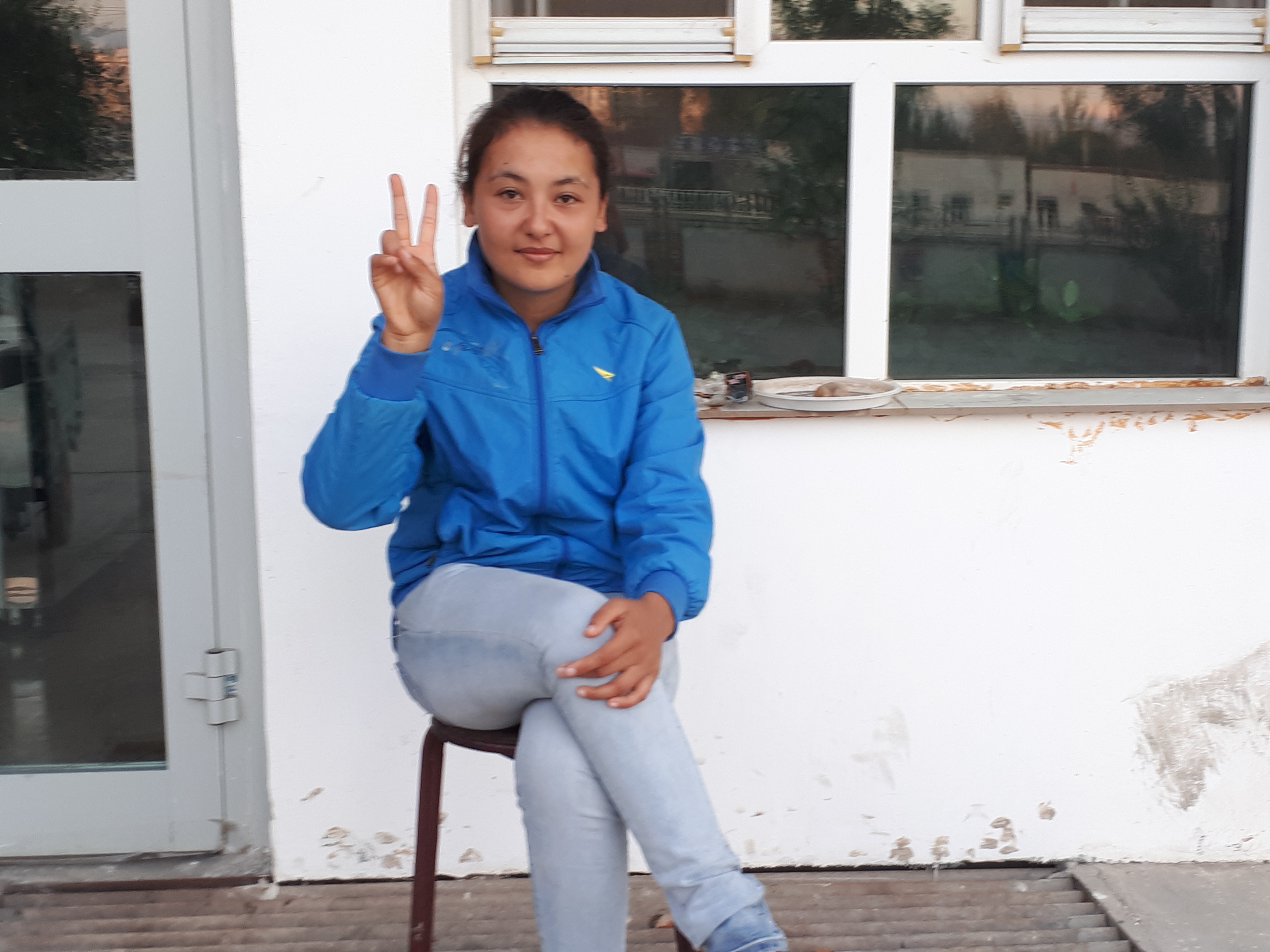 Ook na de tweede nacht in Ürümchi slapen we wat uit. We moeten een beetje tijd rekken want we hoeven pas ’s middags ergens op het station te zijn dus gaan we ook wat later naar ons uitgebreide hotelontbijt. Rond 13.00 uur checken we toch maar uit en hoewel Wytze de deposito bon kwijt geraakt is krijgen we onze 200 Yuan borg toch terug. Een uur later zijn we al bij het station en komen we via een lange ronde voor het station op de juiste vloerhoogte bij de Bagageafgifte uit. Alle tassen moeten door de scanner, de fiets kan erlangs af. De beambte ziet dat er een bezinefles op mijn frame zit en zegt dat ik er die af moet halen anders mag de fiets niet mee. Ik haal de fles, die helemaal onder de modder zit, eraf en stop die samen met een bidon waar nog een beetje water inzit in een plastic zak en dan in de plunjebaal die ik als handbagage mee ga nemen. De tassen worden in een grote zak gestopt en gelabeld en kunnen zo mee. Het versturen van fiets en bagage verloopt soepeler als gedacht dus moeten we nog veel tijd overbruggen voordat we om 20.53 uur op de trein zullen stappen. We gaan naar de vertrekhal maar voordat we daar binnen mogen moeten wij en onze handbagage natuurlijk eerst gescand worden. Ik mag door maar als mijn zak met handbagage door de scanner gaat gaan alle alarmbellen af. De scanner heeft geconstateerd dat er een fles met vloeistof in de zak zit en die moet ik er dus uithalen. Omdat ik problemen verwacht met de benzinefles haal ik de bidon eruit. De bidon heeft wat gelekt en zit helemaal onder de modder van de benzinefles. Gadver wat een troep. Ik moet uit de bidon drinken om aan te tonen dat er slechts water in zit. Ik drink en nu zitten mijn handen en mijn mond onder de modder. Dan komt er toch het verzoek om ook de tweede ‘fles’ uit mijn tas te halen. Dju, ze hebben ze dus toch alle twee gedetecteerd. Ik haal mijn vieze benzinefles uit de tas en zie al aan de gezichten van de beveiligingsbeambten dat ze beet hebben. Ik moet weer drinken maar moet dan toch echt bekennen dat er geen water maar ‘petrol’ inzit. Ze verstaan mij niet maar als ze zelf gaan ruiken begrijpen ze wel waarom ik het niet wil drinken. In een mum van tijd worden we omringd door politieagentes die allemaal vragen stellen die wij niet willen of kunnen begrijpen. Ze graaien nog een keer door mijn handbagage en komen daar alleen maar natte en met modder besmeurde spullen tegen. Meekomen!! Is nu het bevel en dan worden we onder begeleiding van 2 agenten en 4 agentes afgevoerd naar een aparte verhoorruimte in de vertrekhal, waar we meteen gezelschap krijgen van een agent met een videocamera. Als de cameraman geïnstalleerd is en onze paspoorten ingenomen zijn kan de ondervraging beginnen. Via de vertaalapp’s op de mobieltjes van de agenten worden steeds maar dezelfde vragen op ons afgevuurd. Waar komen jullie vandaan? Waar en wanneer zijn jullie China binnengekomen? Waar heb je de benzine gekocht? Wat doe je daar mee? De 2 politiemannen nemen nu ook onze treinkaartjes mee en gaan zich in een andere ruimte beraden. De 4 politiedames blijven nog even doorvragen maar gaan steeds meer op de gezellige toer. Ze vinden ons wel interessant en willen met ons op de foto. Een agente vraagt zelfs of ik zanger ben en of ik een lied wil zingen. De hele affaire die heel spannend begint en ontspannend eindigt duurt bij elkaar wel 2 uur met als uiteindelijk resultaat dat ik mijn bezinefles daar achter moet laten en dat we de tijd uiteindelijk toch wel vermakelijk zijn door gekomen. Hierna moeten we nog uren in de vertrekhal rondhangen en de tijd doden totdat om 21.00 uur onze trein arriveert. In de trein blijkt dat we niet bij elkaar zitten maar gelukkig is de jongen die tegenover Wytze zit bereid om met mij te ruilen. Tot aan station Ürümchi-zuid is er nog plaats genoeg in de trein, maar dan stroomt hij toch wel helemaal vol. Opstaan van de plaats is niet meer mogelijk. Er is nauwelijks ruimte om de benen eens even te strekken of nog wat uit het bagagerek te halen. Het wordt wat dat betreft een verschrikkelijke treinreis. Wytze en ik zitten bij het raam op 2 tegenover elkaar geplaatste 3-persoons banken. Op de 3 zitplaatsen zitten aan de kant van Wytze nog een man en een vrouw met een kind en aan de andere kant bij mij nog een vrouw met een kind en nog een man. Voor de kinderen zijn er geen zitplaatsen gereserveerd dus moeten die mensen elkaar aflossen. Het jongetje langs Wytze kan niet slapen en wordt daarom volgepropt met medicijnen. Hij moet een luier aan maar is dat duidelijk niet gewend dus krijgt hij regelmatig klappen als hij de luier uit wil doen. De vader van het kind is een lompe bruut. Als hij vindt dat zijn vrouw iets niet goed gedaan heeft geeft hij haar een stomp op het oog. De vrouw geeft geen kik en houdt haar hand even op de zere plek. Ik denk dat het niet de eerste keer is dat de man haar slaat. Het kindje naast mij heeft geen luier en ook geen onderbroek aan maar een legging zonder kruis en plast me op een gegeven moment bijna nat. De stoffen bank is echter wel zeiknat. Haar moeder slaapt zittend op een tas tussen de twee banken in en heeft haar hoofd op mijn voeten te rusten gelegd. Na verloop van tijd stinkt het verschrikkelijk in de trein. De mensen hebben bijna allemaal doosjes met noedels bij zich en op de trein is warm water beschikbaar. Er wordt dus wat afgeslurpt. Af en toe komt er een karretje met eten, drinken en fruit langs en dan weer een verkoper van speelgoed, zaklampen etc.. Als de lompe man en zijn vrouw met het jongetje de trein verlaten hebben komen er een vrouw met haar dochter bij op de vrijgekomen plaatsen zitten. De vrouw wil wel buurten en vraagt waar we vandaan komen. We proberen het met behulp van de landkaart in het plaatjesboek uit te leggen en dan ineens staan alle mensen die al uren om ons heen zitten op en komen luisteren. De mensen die wat Engelse woordjes kennen treden op als vertalers. Onze woordenboekjes gaan van hand tot hand en worden goed bekeken. Door he