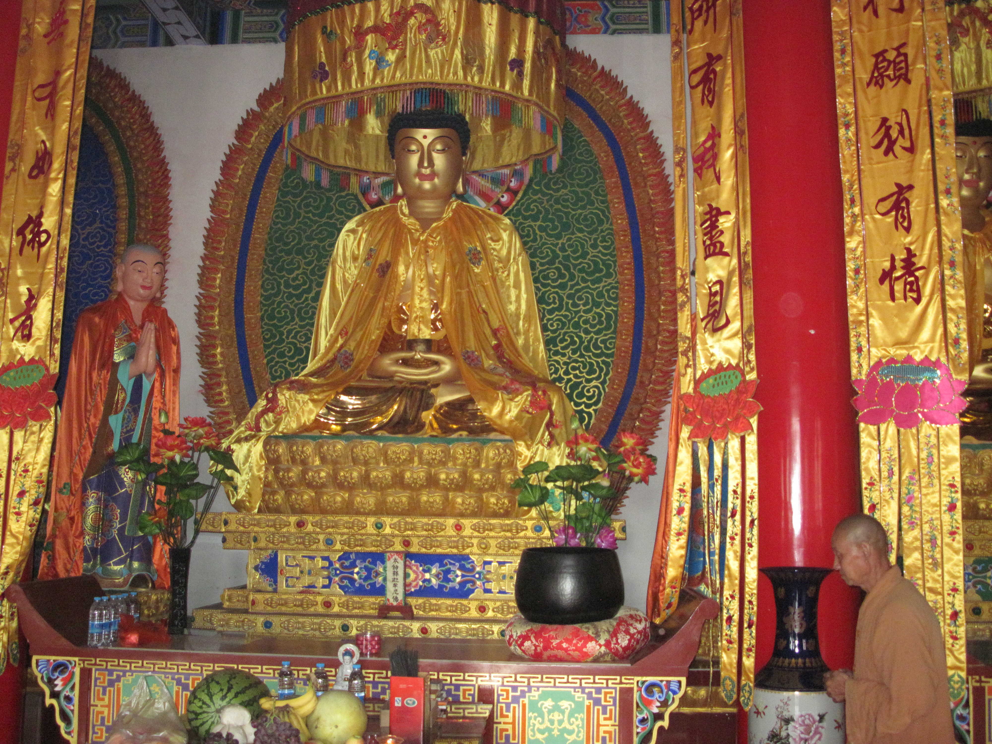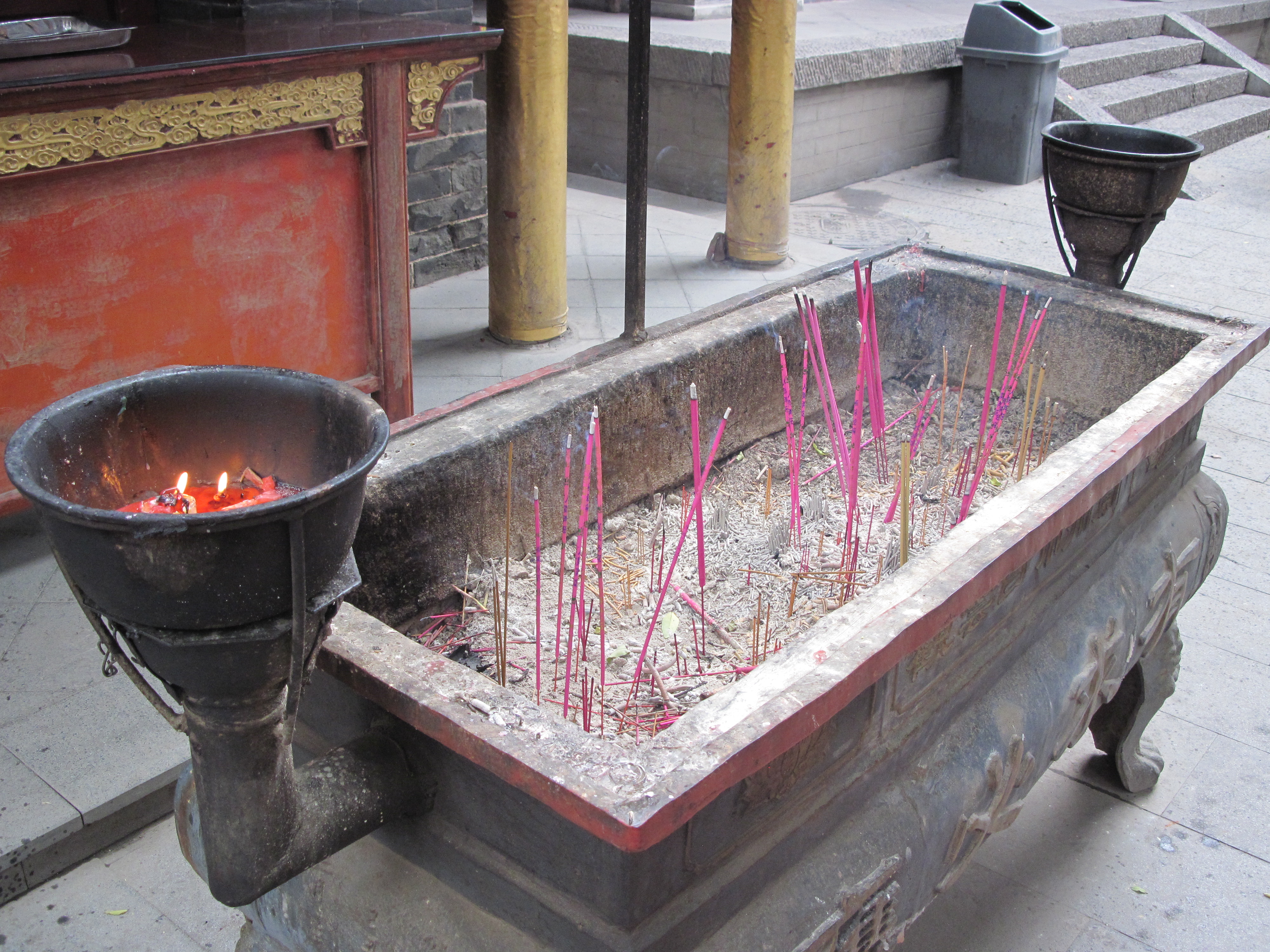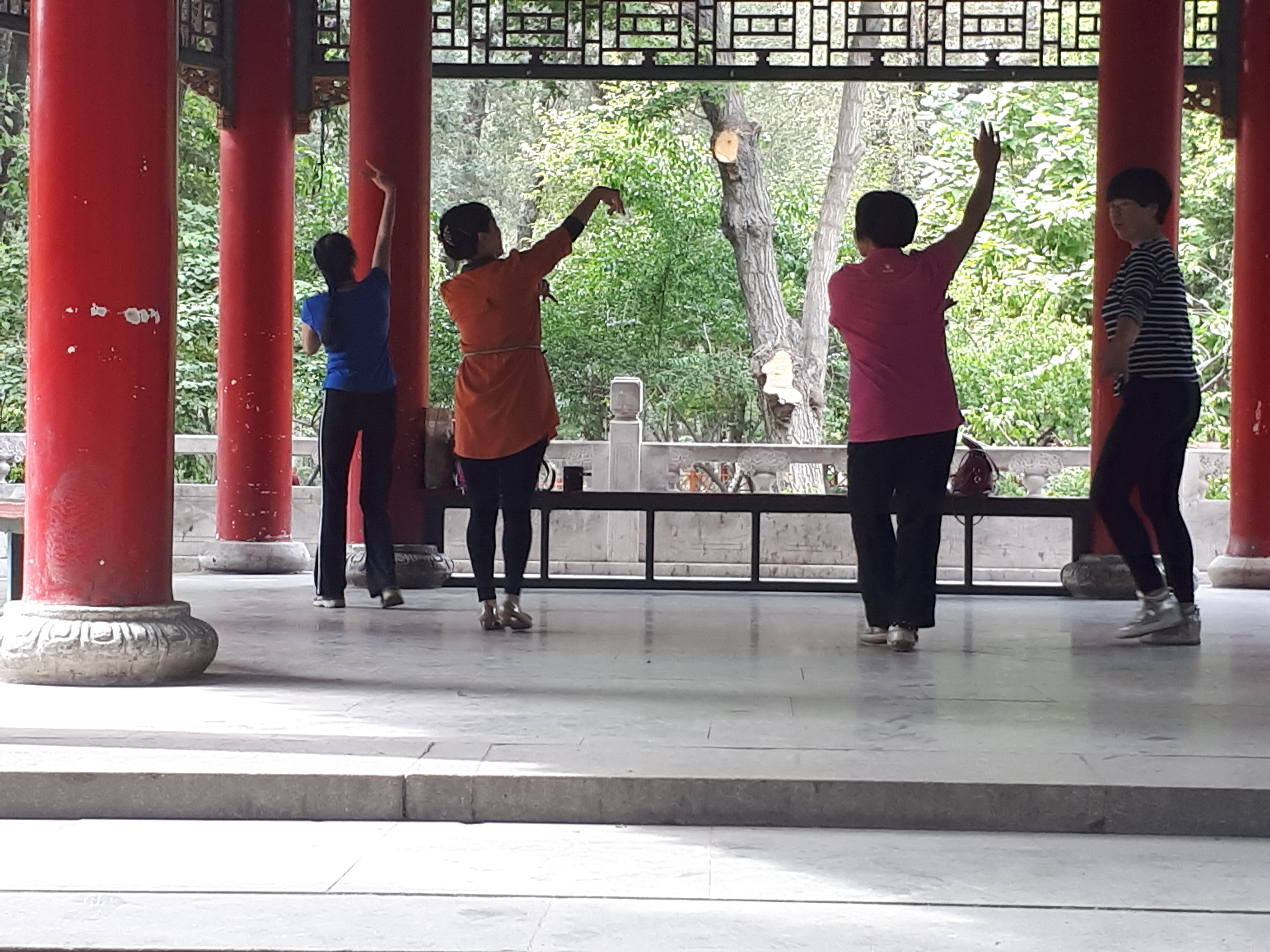 Iets voor half 10s tuurt Sheng een wechat dat de metro vertraging heeft en dat ze dus iets later komt en of het goed is dat haar vriend vandaag ook meegaat. Natuurlijk is dat goed en om goed 10 uur komen ze samen aangewandeld. Haar vriend heeft voor ons een westerse naam aangenomen en stelt zich voor als Rex. Hij komt uit noord-west China uit een plaats dichtbij de Russissche grens bij Wladiwostok. Het is een aardige jongen maar spreekt gebrekkig Engels dus praat het wat ingewikkeld met hem. Ze hebben voor elk van ons een cadeautje meegebracht! Het is een van koperdraad gemaakt fietsje. Heel mooi! Ze hebben het gekocht van een dove jongen die ze toevallig gisteren in een winkelstraat bezig zagen. Ik ben er blij mee maar voel me ook steeds lulliger omdat ik nog steeds geen idee heb over hoe ik dit allemaal goed kan maken. Maar wordt me verzekerd ik mag me niet schuldig voelen want wij zijn hun gasten en zij moeten dus voor ons zorgen. We drinken nog een kop Nescafe in de hoteltuin en gaan dan met de metro in noord-oostelijke richting naar een echte oude volkswijk. Terwijl we door de straatjes langs de kleine grijze terracotta huisjes lopen legt Sheng van alles uit over de betekenis van gebruikte kleuren, versieringen. Volksgebruiken, de manier van leven, de beleving van het geloof etc.. Zo weet ik nu dat de voordeur rood is omdat die kleur boze geesten buiten houdt. Dat sommige affiche en versieringen over nieuwjaarsspreuken gaan. Dat er badhuizen en sauna’s zijn en openbare toiletten. Het leven speelt zich op straat af en niet in het huis. We vragen of ze weet waarom mensen zoals we ergens gezien hebben nepgeld kopen en dat dan verbranden. Blijkbaar doen veel mensen dat en heeft dat te maken met wensen van de mensen voor zichzelf of voor een ander. Het lijkt wel wat op wat wij wel doen met het aansteken van een kaarsje als we bijv. een examen moeten doen of als iemand ziek is. Als je wenst dat het jou of iemand anders financieel beter zal gaan dan zou je dus nepgeld kunnen offeren of een kartonnen auto of een huis van karton. De moeder van Sheng houdt echt geld even tegen een ander leeg papiertje en drukt dan de waarde als het ware over en maakt zo haar eigen nepgeld om de offeren. Voor de lunch gaan we met vieren in een restaurant uiteten en als ik wil betalen is Rex me al weer voor geweest. Hij moet om half 2 gaan werken en heeft meteen maar alles afgerekend. Ik bedank hem bij het afscheid nemen en spreek hem dan nog wat vaderlijk toe door te zeggen dat hij goed voor Sheng moet zorgen en dat hij een goede keuze gemaakt heeft. Na het eten brengt Sheng ons naar een Tibetaanse Lama tempel. Het is een groot complex met veel verschillende tempels. Het hoogtepunt is hier toch wel de zangsessie van een grote groep Tibetaanse monniken, die gezamenlijk met een monotone stem uit een boek lezen en daarbij af en toe onderbroken worden door een belletje en een trommeltje. Sheng zoekt met haar mobieltje razendsnel informatie voor ons op en praat ons constant bij. Mooi! Na het bezoek aan de tempel nemen we de metro naar de winkelstraten ten zuiden van de Zuidpoort van het Plein van de Hemelse Vrede. Het is een drukke naar grote mooie winkelstraat. Wytze is nog naarstig op zoek naar een cadeautje voor Catrien en loopt winkel in en winkel uit, maar komt maar niet tot een keuze. Dan gaan we eerst maar met z’n drietjes in een simpel restaurantje wat eten. Het smaakt er goed en deze keer mogen we gelukkig wel betalen. Na het eten gaan we met de metro weer terug naar het hotel . Ik haal nog wat bier voor Sheng en mij, Wytze viert zijn laatste avond in Beijing met een kopje thee. Hoewel we gezellig in de hoteltuin zitten te babbelen is het duidelijk dat iedereen toch wel moe is van dit dagje Beijing. Het afscheid nemen nadert en het is voor mij wel duidelijk dat Sheng daar een beetje tegen op ziet en geen goed moment kan vinden om naar huis te gaan. Als de gesprekjes ook nog wat stil gaan vallen merk ik maar op dat we op tijd naar bed willen omdat we morgenvroeg alles op tijd ingepakt willen hebben. Sheng begrijpt de hint en is blij als ik voorstel om met haar mee te lopen naar het metrostation. Ik vind dat trouwens ook wel prettiger dan om bij het hotel afscheid te nemen. Al babbelend lopen we naar het metrostation op de hoek van de straat en voelen beiden aan dat er een moeilijk moment aan zit te komen. Voor de metrotrap kijken we elkaar aan en houden elkaar even stevig vast. Sheng moet nu huilen en dan houd ik het ook niet meer droog. Onze afscheidswoorden weet ik niet meer precies maar wel dat ik haar duidelijk heb proberen te maken dat ik haar graag nog een keer in Nederland zou willen ontmoeten en dat ze dan bij ons in huis mag logeren. Ze knikt, en met een laatste ferme afscheidskus zeggen we elkaar vaarwel en dan gaat Sheng de kelder in en ik weer terug naar het hotel. Onderweg kijk ik nog een paar keer om te checken of ze me toch niet achter na komt. Het was een moeilijk en ook een heel fijn moment. We voelden volgens mij beiden dat we hoewel we elkaar maar heel oppervlakkig kennen toch een fijne band met elkaar hebben en dat die nu waarschijnlijk alleen op afstand nog wat onderhouden kan worden. Terug op het hotel kan ik de slaap niet pakken en vraag ik me af hoe Sheng het afscheid ervaart en wat het toch is wat ons bindt. Zij is de enige student waar ik nog contact mee heb en de enige die mij kerstkaartjes en emailtjes is blijven sturen . Is het uit dankbaarheid omdat ik haar als mentor toen haar vader ziek was wat geholpen heb? Ze heeft het trouwens helemaal niet over haar vader gehad, wel over haar moeder en haar grootouders waar ze een goede band mee heeft en trots over vertelt. De toevallige ontmoeting in Parijs? Haar interesse voor film en theater. De voldoende waardoor ze haar P-diploma haalde??? Mijn belofte om op de fiets naar Beijing te komen nagekomen ben??? Eens zal ik het haar vragen.