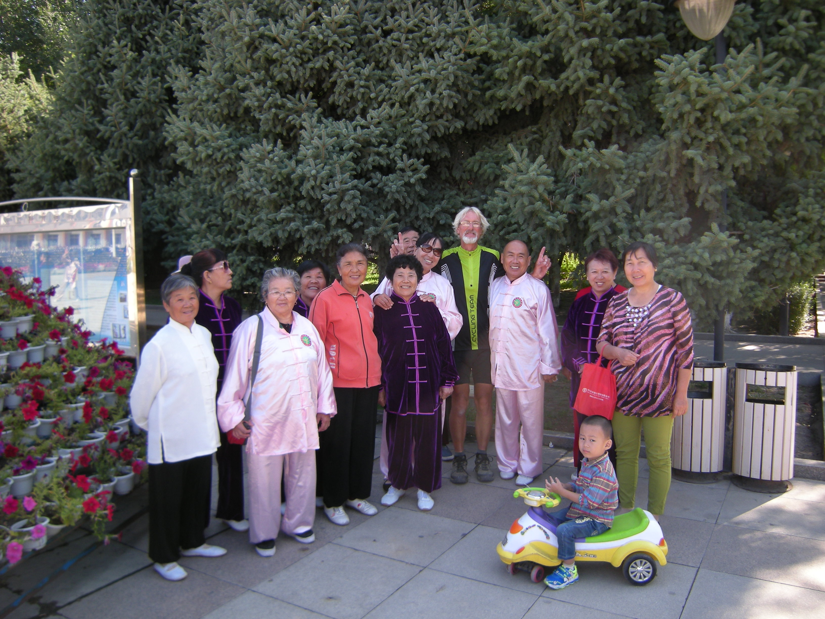 Om kwart over 5 gaat onze wekker af. Ik heb niet best geslapen. De ontmoeting met Sheng speelde nog te veel door mijn hoofd. Om 6 uur staan we mooi op tijd klaar bij de ingang van het hotel. Ook Sheng arriveert even later en neemt ons mee naar de Xisistraat waar de taxi ons op zal pikken. De taxi brengt ons naar een kruispunt waar we nog even moeten wachten op de bus en dan gaan we op weg naar The Great Wall at Mutianyu, op zo ‘n 75 km van Peking . Ik zit langs Sheng en Wytze zit voor ons alleen op de 2-zitsbank. Een meisje links voor ons hoort ons Nederlands praten. Ze spreekt Wytze aan en vraagt of ze bij ons mag komen zitten. Het is naar later blijkt Amanda Verhoef. Ze zit in een vervelende situatie en vraagt of ze vandaag met ons op mag trekken. Geen probleem natuurlijk. Dan vertelt ze dat ze al een maand als au-pair in Beijing werkt en hoewel ze een contract heeft voor 15 maanden nu al door haar gastgezin aan de kant is gezet. Ze logeert nu in een hostel en voelt zich nogal eenzaam. In Mutianyu moeten we in een speciale bus overstappen en worden we afgezet bij het ticket-office waar we kaartjes moeten kopen voor de kabelbaan. Als onze gids omroept dat we over 3 uur terug moeten zijn voor de lunch reageert Wytze nogal teleurgesteld maar het helpt hem wel om in plaats van te voet naar boven te gaan toch ook maar te kiezen voor mijn voorstel om met de kabelbaan te gaan. We kiezen voor de kabelbaan die ons naar wachttoren 14 moet brengen en zullen vanaf daar over de muur naar wachttoren 23 lopen en weer terug. Volgens onze gids is dit dezelfde route als Obama tijdens zijn bezoek aan China heeft gelopen! Als we met de cabine naar boven gaan zien we hoe steil het wandelpad naar boven gaat en zijn we blij niet te hoeven lopen. Er is vanwege ‘Active Day’ wel een hardloop event bezig. Boven is het ook heel druk vanwege een soort van aerobic activiteit. Op ons gemak wandelen we over de muur en ik moet zeggen dit doet me toch wel wat. Ik heb het gevoel er nu echt te zijn en wil rustig kunnen genieten van het mooie uitzicht. Wytze vindt het wat moeilijk om met een groep op stap te zijn en wil laten zien dat het vanwege zijn kennis van Tai Chi wel goed zit met zijn conditie en lichaamsbeheersing. In grote passen loopt hij voor ons uit maar wacht ons gelukkig bij de eerste wachttoren weer op. Ik vind het een prachtige ervaring en loop rustig met de meiden op die ook zichtbaar onder de indruk zijn van het feit dat we op de muur staan. Na de laatste wachttoren van de route, nr. 23 klimmen Wytze en ik nog een half uur verder tot we aangekomen zijn bij het bord: “I have climbed to the peak of the greatwall”. Deze prestatie doet Wytze duidelijk goed en als een volleerde Tai Chi beoefenaar probeert hij zonder handen te gebruiken in een strakke balans over de steile trappen af te dalen. De trappen zijn soms heel steil en de trede’s ver uit elkaar en daar hebben onze dames die bij de wachttoren op ons hebben staan wachten duidelijk moeite mee. Precies op tijd melden we ons om 13.00 uur na de afdaling met de cabinelift bij het restaurant waar met ons busgezelschap een lunch aangeboden krijgen. We komen aan tafel te zitten bij 3 mannen uit Zambia die helemaal overdonderd raken als we vertellen dat we vanuit Nederland op de fiets naar Peking zijn gekomen. Er moeten dus weer veel foto’s gemaakt worden. Ik wil de kosten die Sheng gemaakt heeft voor de Great Wall excursie aan haar terugbetalen maar daar wil ze net als gisteren bij het eten niets van horen. Wij zijn bij haar te gast en dus zal zij de kosten betalen. Het geeft me wel een schuldgevoel waarvan ik nog niet weet hoe ik daar vanaf moet komen. Op de terugreis naar Peking, die vanwege files veel langer duurt dan de heenreis, is het stil in de bus en ook onze meiden vallen van vermoeidheid in slaap. In Peking aangekomen stappen we uit bij een drukke winkelstraat waar veel souvenirwinkeltjes zijn. We wandelen er doorheen om een beetje ‘n idee te krijgen van wat er allemaal te koop is. We zien opvallend veel poppetjes van een konijn. Sheng legt uit dat het konijn uit een fabel komt waarin vertelt wordt dat het konijn op de maan woont en daar kruiden verzamelt waarmee ze zieke kinderen beter kan maken. Het lijkt wel een beetje op onze Klaas Vaak variant. Van deze fabel is ook het Autumn festival ook Moon festival genaamd afgeleid. We vinden het beiden een mooi verhaal en ik denk dat ik al wel weet naar wat voor souvenirs ik morgen op zoek ga. Met de metro gaan we daarna terug naar het hotel. Sheng legt uit hoe het allemaal werkt dus weten we morgen ook hoe het moet. Op de binnenplaats van het hotel drinken we gezellig nog een biertje dat ik vlug bij het winkeltje verderop in de straat heb gekocht. Een vriend van Sheng die toevallig in de buurt is schuift ook nog even gezellig aan. Hij spreekt heel gebrekkig Engels maar schijnt iets in de muziek te doen. Als Sheng en haar vriend weg zijn gaan Wytze en ik op zoek naar een restaurant. Ik stel voor om weer naar het restaurant te gaan waar ik gisteren met Sheng gegeten heb. Als we de menukaart bekijken hoor ik Wytze al mopperen dat het duurder is dan bij het Koreaanse restaurant waar hij al twee dagen gegeten heeft. Met die gedachte werkt hij zijn bord naar binnen en hoewel ik het weer prima vind blijft hij maar mopperen dat het veel te weinig is en ook nog duurder. Gezellig uit eten met Wytze is zal ons niet overkomen dat is mij na 4 maanden wel duidelijk. Als hij ook nog klaagt dat hij niet ‘zat’ is kan ik me niet inhouden om er toch weer iets van te zeggen en leg hem boos uit dat de definitie van uit eten gaan iets anders is dan een poging om zo goedkoop mogelijk de meeste bouwstoffen binnen te krijgen. En dat ik me heel erg stoor aan zijn allergie voor de hogere prijzen in restaurants en op terrassen. Het is toch logisch dat je daar extra moet betalen voor de voorzieningen van bijv. wc, bediening, sfeer, etc.. Soms trek ik het niet meer en ga steeds meer mijn eigen gang. Buiten dit akkef