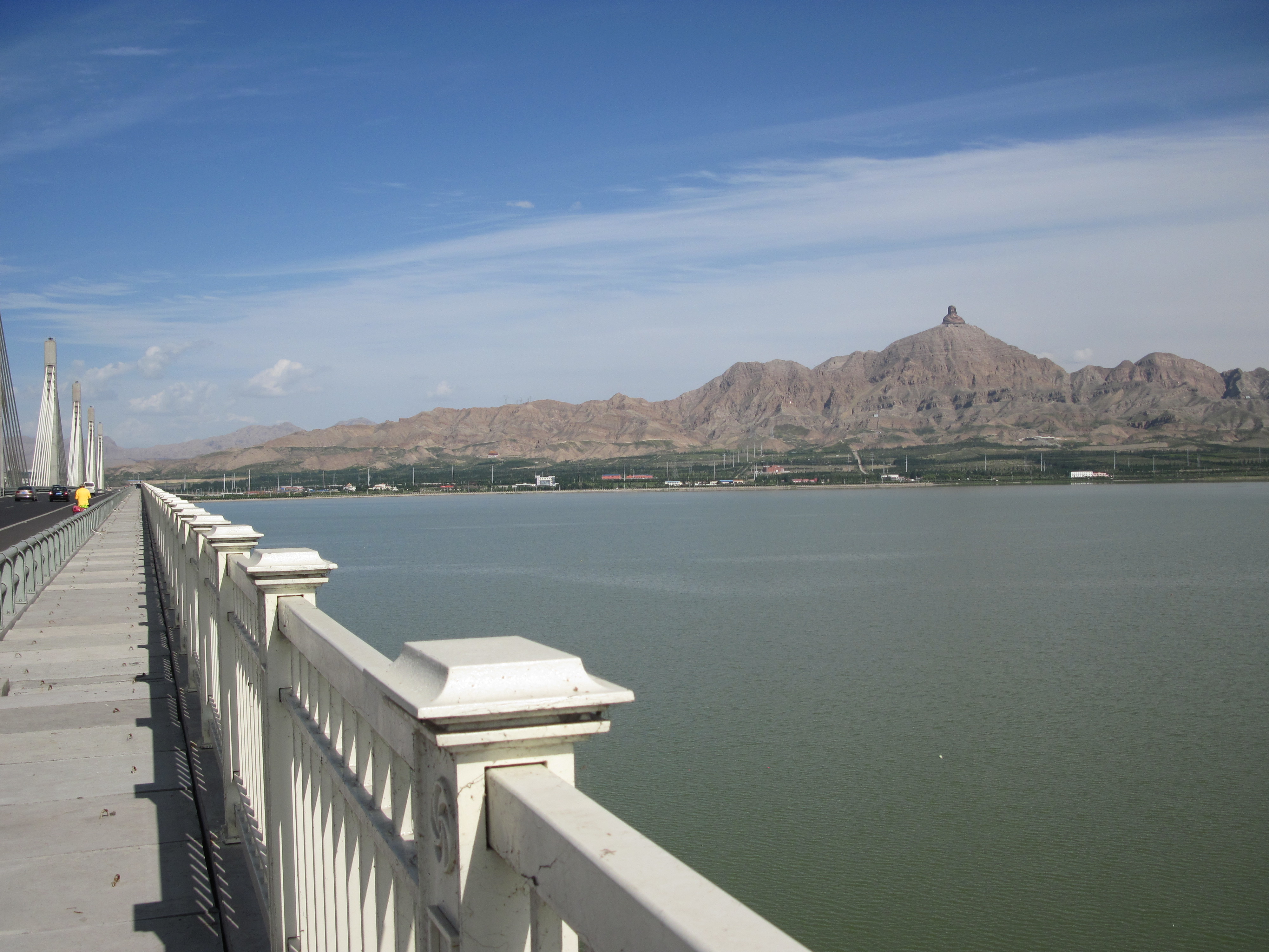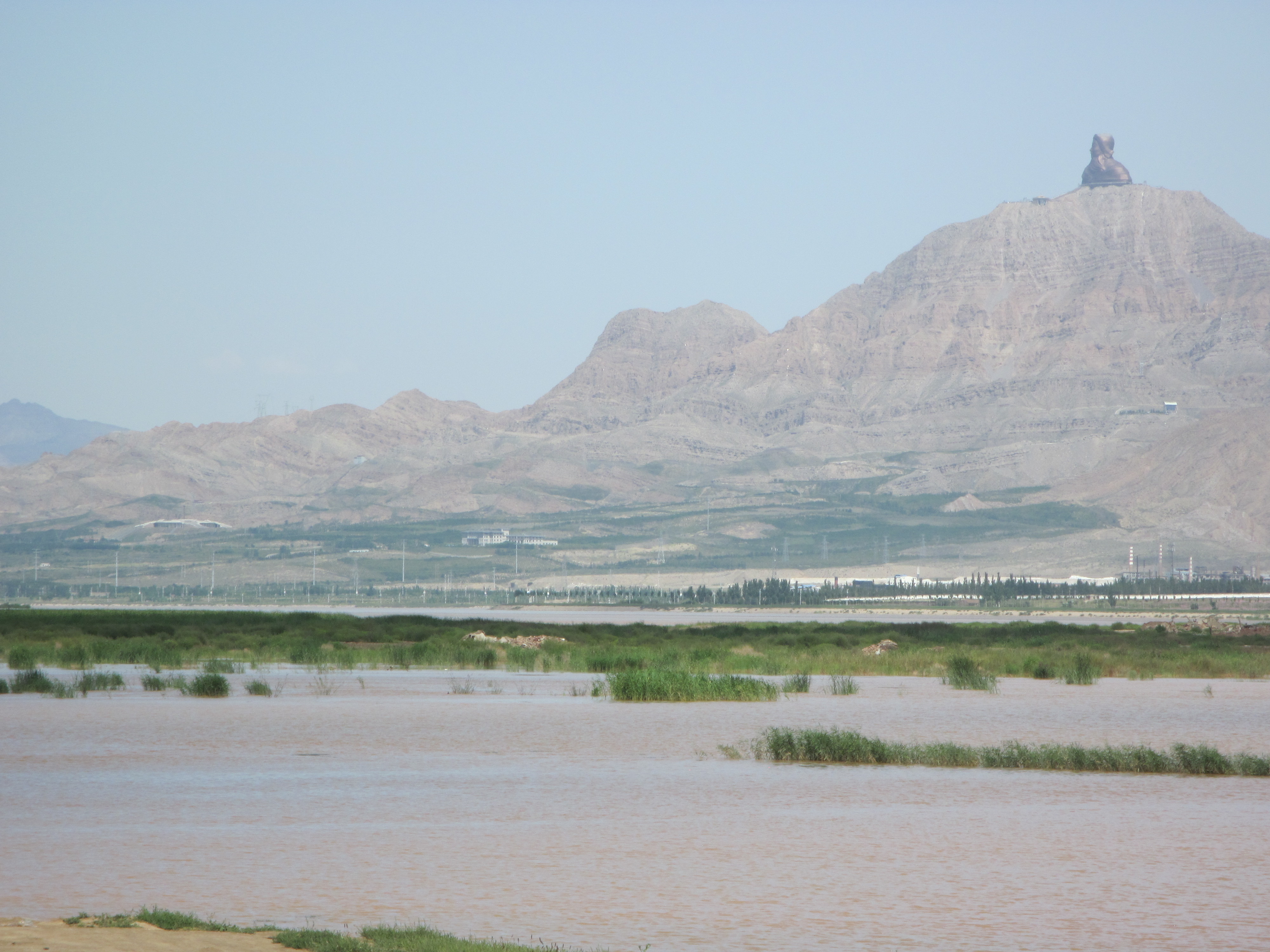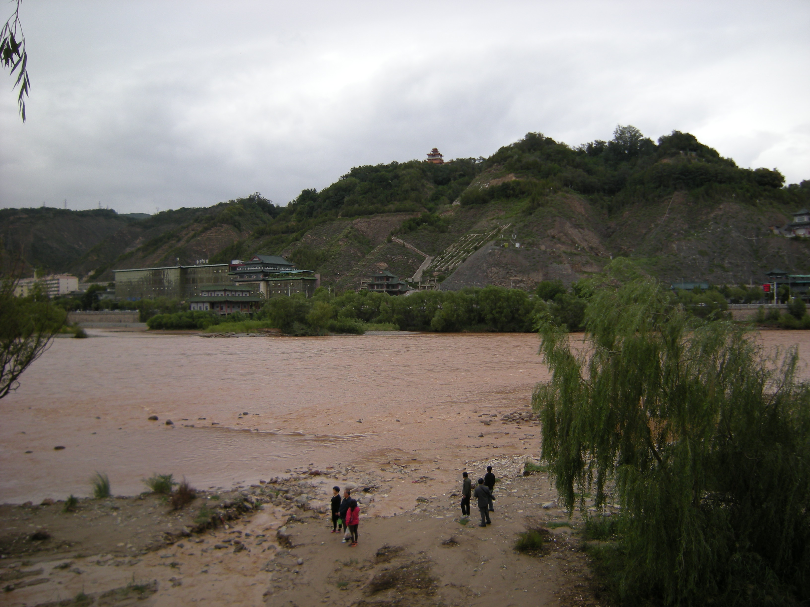 Ik kon gisterenavond maar moeilijk in slaap komen. Er ligt een hard kussen op het bed dat wel met zand gevuld lijkt te zijn. Omdat ik hoofdpijn krijg doe ik het kussen weg en slik 2 paracetamolletjes en dat helpt gelukkig. Tot 2 keer toe vraagt Wytze of ik me om wil draaien omdat ik aan het snurken ben. Het ontbijt is vandaag bij de hotelprijs inbegrepen. Buiten een heleboel warme gerechten kunnen we zelfs ook nog brood kiezen. De organisatie in de ontbijtzaal is niet echt duidelijk met als gevolg dat ik 2 gebakken eieren krijg en Wytze 2 kommetjes melk. Wytze heeft last van zijn maag en durft nog niets te eten. Hij is bang dat het er toch weer meteen uit zal komen. De zon brandt er al flink op los dus moeten we maar weer eens gaan smeren. Als alles goed gaat wordt het vandaag een bijzondere dag omdat we volgens de kaart in de buurt gaan komen van The Great Wall. Iets voorbij Zhongwei aan de overkant van de Gele Rivier zouden we wat restanten van de muur moeten kunnen zien. Als we de rivier overgestoken zijn staan er echter toch geen verwijsborden naar die muur. We vragen het nog aan wat mensen op de straat maar het lijkt wel of ze nog nooit van de Great Wall gehoord hebben. Ze sturen ons naar Zhongwei omdat daar de Gao Milao tempel staat. Het is echter nog zeker 25 km van de route af voordat we bij die tempel zijn waar dan heel misschien ook een stukje van de muur te zien zou zijn, dus vergeten we deze attractie maar en vervolgen onze route. Op grote bruine borden staan er richtingen aangegeven naar de Yellow River Alter en de Yellow River Canyon. Gaan die attracties dan onze dag redden?Het duurt even voor we de juiste afslag naar het Alter gevonden hebben. We rijden eerst nog een industrieterrein op maar worden daar al snel teruggestuurd. De volgende afslag is wel goed en brengt ons naar een grote parkeerplaats en een grote hal waar we de tickets voor een bezoek aan het Alter kunnen kopen. De tickets geven toegang tot een groot park waar je van het ene grote terras naar het andere hoger gelegen terras kunt wandelen om uiteindelijk aan de oever van de Gele rivier bij het Alter uit te komen. Het ziet er allemaal niet zo authentiek en/of historisch uit maar is typisch zo’n gemaakte Chinese attractie. Het is er heel erg heet en Wytze voelt zich zo slap als een tod. Kortom voor Wytze redenen genoeg om geen kaartje te willen kopen. We drinken er nog iets in de schaduw en ik stel dan voor om dan in ieder geval toch maar wel naar de aangegeven Yellow River Canyon te fietsen.Ook hier is de bewegwijzering zo onduidelijk dat we die pas met veel heen en weer gefiets weten te vinden. Bovendien hebben we het woord canyon verkeerd vertaald omdat het hier blijkbaar slechts de betekenis heeft van ‘oever’. Aangezien wij een spectaculaire kloof verwacht hadden valt ook deze bezienswaardigheid teleurstellend tegen. We fietsen nu maar in een ruk door naar onze eindbestemming in Qingtongxia waar we het reeds gereserveerde hotel gelukkig wel vlot kunnen vinden. Dat wil zeggen de receptie. Onze kamer is niet in dat gebouw maar een eindje verderop in de straat. We gaan in een fastfoodrestaurant van ??? waar we kipburger eten met frites en een wrap met rijst en kerrie en .. cola, koffie!! En ook nog een ijsje. Heerlijk, lekker geen chinees vandaag. We sluiten de dag af met het kijken naar het stijldansen op een groot plein.