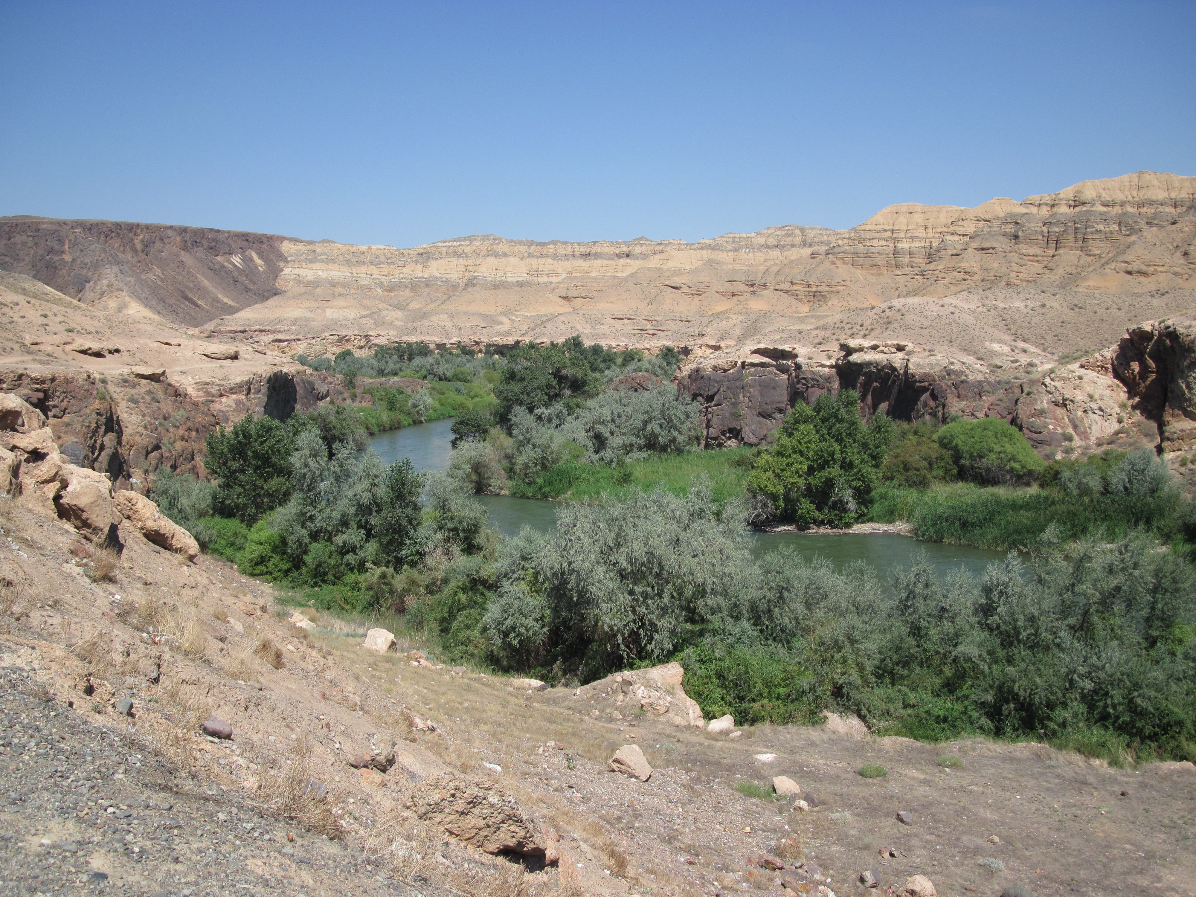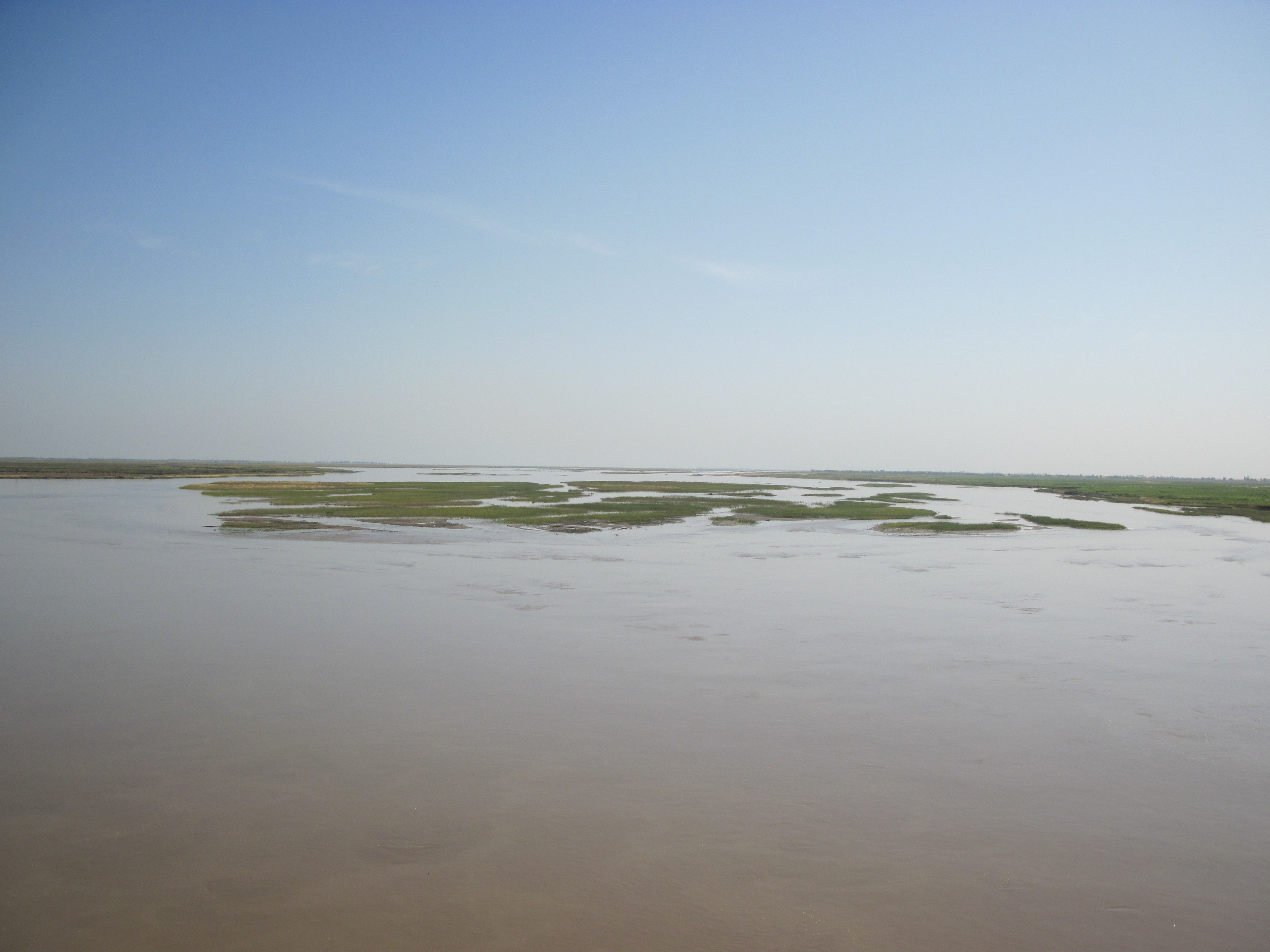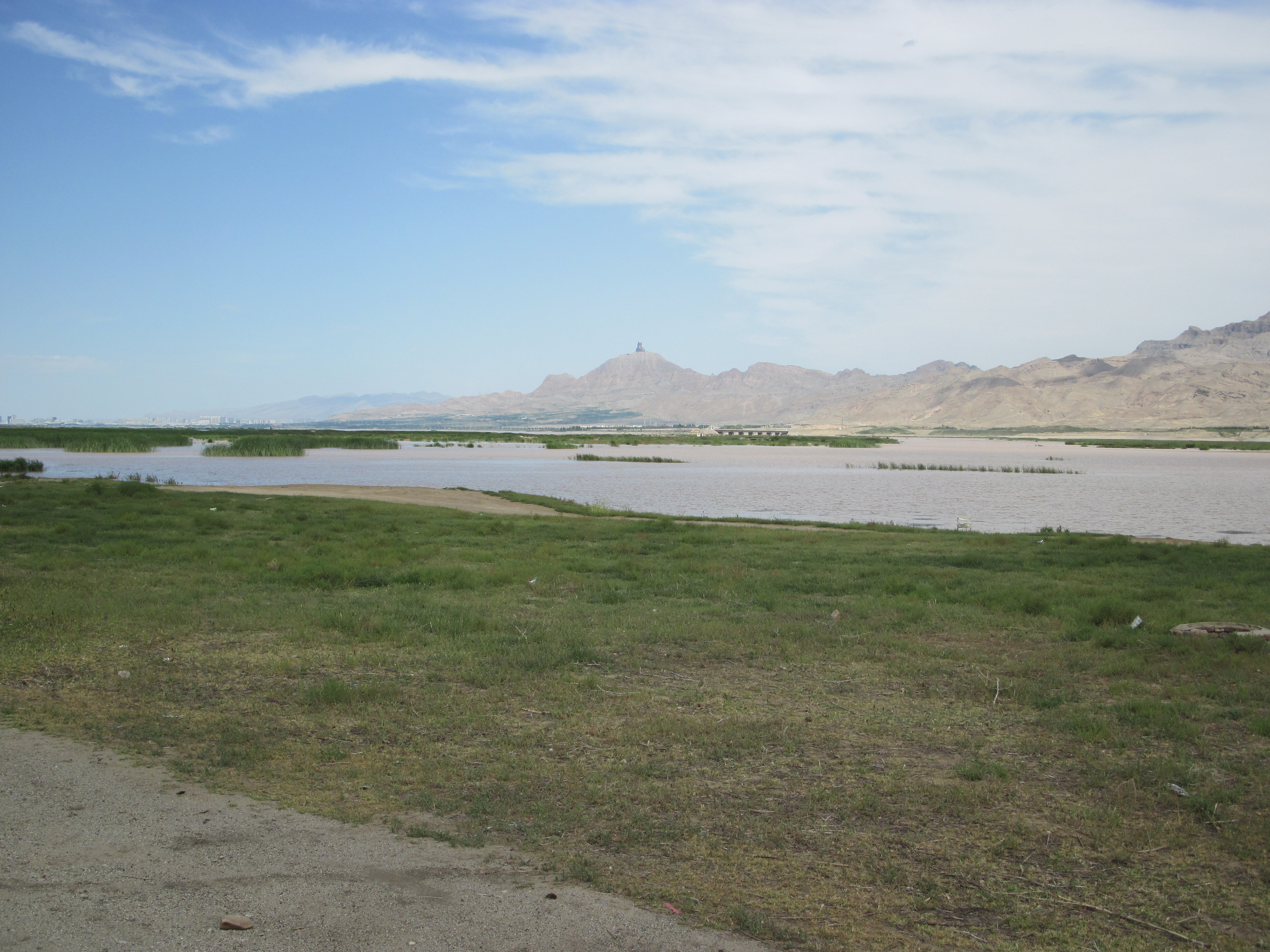 Ik kon gisterenavond maar moeilijk in slaap komen. Er ligt een hard kussen op het bed dat wel met zand gevuld lijkt te zijn. Omdat ik hoofdpijn krijg doe ik het kussen weg en slik 2 paracetamolletjes en dat helpt gelukkig. Tot 2 keer toe vraagt Wytze of ik me om wil draaien omdat ik aan het snurken ben. Het ontbijt is vandaag bij de hotelprijs inbegrepen. Buiten een heleboel warme gerechten kunnen we zelfs ook nog brood kiezen. De organisatie in de ontbijtzaal is niet echt duidelijk met als gevolg dat ik 2 gebakken eieren krijg en Wytze 2 kommetjes melk. Wytze heeft last van zijn maag en durft nog niets te eten. Hij is bang dat het er toch weer meteen uit zal komen. De zon brandt er al flink op los dus moeten we maar weer eens gaan smeren. Als alles goed gaat wordt het vandaag een bijzondere dag omdat we volgens de kaart in de buurt gaan komen van The Great Wall. Iets voorbij Zhongwei aan de overkant van de Gele Rivier zouden we wat restanten van de muur moeten kunnen zien. Als we de rivier overgestoken zijn staan er echter toch geen verwijsborden naar die muur. We vragen het nog aan wat mensen op de straat maar het lijkt wel of ze nog nooit van de Great Wall gehoord hebben. Ze sturen ons naar Zhongwei omdat daar de Gao Milao tempel staat. Het is echter nog zeker 25 km van de route af voordat we bij die tempel zijn waar dan heel misschien ook een stukje van de muur te zien zou zijn, dus vergeten we deze attractie maar en vervolgen onze route. Op grote bruine borden staan er richtingen aangegeven naar de Yellow River Alter en de Yellow River Canyon. Gaan die attracties dan onze dag redden?Het duurt even voor we de juiste afslag naar het Alter gevonden hebben. We rijden eerst nog een industrieterrein op maar worden daar al snel teruggestuurd. De volgende afslag is wel goed en brengt ons naar een grote parkeerplaats en een grote hal waar we de tickets voor een bezoek aan het Alter kunnen kopen. De tickets geven toegang tot een groot park waar je van het ene grote terras naar het andere hoger gelegen terras kunt wandelen om uiteindelijk aan de oever van de Gele rivier bij het Alter uit te komen. Het ziet er allemaal niet zo authentiek en/of historisch uit maar is typisch zo’n gemaakte Chinese attractie. Het is er heel erg heet en Wytze voelt zich zo slap als een tod. Kortom voor Wytze redenen genoeg om geen kaartje te willen kopen. We drinken er nog iets in de schaduw en ik stel dan voor om dan in ieder geval toch maar wel naar de aangegeven Yellow River Canyon te fietsen.Ook hier is de bewegwijzering zo onduidelijk dat we die pas met veel heen en weer gefiets weten te vinden. Bovendien hebben we het woord canyon verkeerd vertaald omdat het hier blijkbaar slechts de betekenis heeft van ‘oever’. Aangezien wij een spectaculaire kloof verwacht hadden valt ook deze bezienswaardigheid teleurstellend tegen. We fietsen nu maar in een ruk door naar onze eindbestemming in Qingtongxia waar we het reeds gereserveerde hotel gelukkig wel vlot kunnen vinden. Dat wil zeggen de receptie. Onze kamer is niet in dat gebouw maar een eindje verderop in de straat. We gaan in een fastfoodrestaurant van ??? waar we kipburger eten met frites en een wrap met rijst en kerrie en .. cola, koffie!! En ook nog een ijsje. Heerlijk, lekker geen chinees vandaag. We sluiten de dag af met het kijken naar het stijldansen op een groot plein.