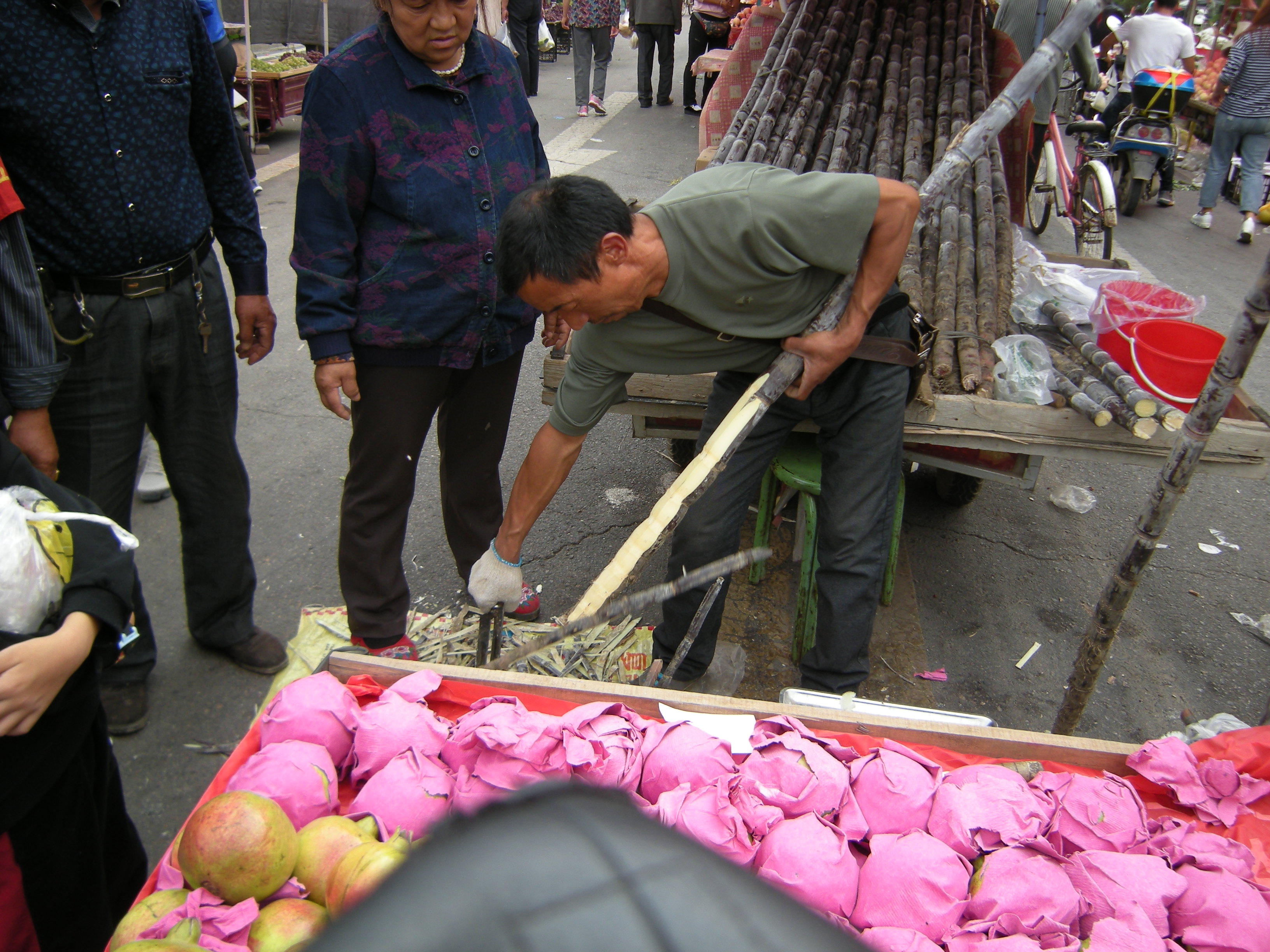 Voor het ontbijt moeten we naar vloer 2, maar dat hebben we pas in de gaten nadat we ons gemeld hebben in het gebouw waar ook de receptie is. We zijn maar net op tijd terug in ons eigen gebouw want als we ons ontbijt opgeschept hebben begint het personeel om kwart voor 9 de gerechten al op te ruimen. De keuze valt ons ook wat tegen. Er is geen rijst! Wel dunne soep en hard gekookte eieren. Maar ook geen gewone thee. Als we na het wat tegenvallende ontbijt de stad uitfietsen komen we langs een markt waar een man 3m-lange suikerrietstokken aan het schillen is die hij dan in stukken snijdt en dan verkoopt. Als we daar foto’s en een filmpje van maken krijgen we natuurlijk weer een hele volksoploop. Opgestoken duimen, poseren voor selfies alles komt weer voorbij. Van een enthousiaste man krijgen we ieder een heerlijk trosje druiven. Een stukje verder, we zijn nog steeds in Qingtongxia treffen we in een park onder een grote namaak boom twee tollende mannen aan en passeren we een tempelcomplex waar we even een kijkje gaan nemen. De twee monniken die er rondlopen vinden het goed als we er wat foto’s maken. Eenmaal buiten de stad komen we door een gebied met veel wijngaarden waarvan de opbrengst op tafeltjes langs de weg te koop wordt aangeboden. Na het fruit zien we voor het eerst ook een paar rijstvelden. Over een brede boulevard fietsen we Yongning binnen. De boulevard met zijn grote kroonluchterachtige straatverlichting en brede perkbermen en parkjes loopt helemaal door tot aan de volgende stad Yinchuan. Hier hebben we een hotel gereserveerd dat we niet een twee drie kunnen vinden. Onze fietsen mogen achterom in een steegje gestald worden. Bij het oversteken valt Wytze met fietsen al om. Na die almaar voortdurende diarree wordt hij toch wel steeds zwakker. Hij zegt nu ook dood op te zijn. Ik heb onderweg naar het hotel nog wat oliekoeken en een broodbolletje gekocht en eet dat op de kamer op. Wytze wil er niets van hebben en eet nog een paar rijstkoekjes die we onderweg bij een benzinestation gekocht hebben. Lang blijven ze er niet in. Op de kamer liggen wat toeristische folders die ik even opensla om de zien of er misschien interessante excursies vanuit deze stad te maken zijn. Er zijn er wel, maar voor 2 personen zijn die toch wel heel duur, bovendien reageert Wytze niet echt enthousiast. Zijn gezondheid moet snel beter worden anders ben ik bang dat we Peking niet fietsend zullen gaan bereiken. Na het douchen gaan we toch maar even de stad in. Op een kruispunt vlakbij het hotel staat een soort van stadspoort. Het is een groot lomp ding met een tempeldak. Achter de poort ligt links af een parkje en rechtdoor een druk winkelgebied met veel winkels, kramen, verkopers, bedelaars en natuurlijk veel winkelend publiek. Wytze wil het liefst het parkje in en een beetje op een bankje gaan zitten niksen. Ik wil graag naar de drukte en het liefst ergens op een terrasje iets te drinken of eten bestellen en dan van het drukke leven in de winkelstraat genieten. Gelukkig krijg ik mijn zin en gaat Wytze mee want anders had ik me denk ik toch alleen onder het winkelende volk begeven. Aan het einde van de straat is een overdekte winkelgalerij waar we in een rustig hoekje wat gaan drinken. In de winkelstraat eten we bij de Burgerking. Wytze gaat voor het eerst een beetje op de rem met de hoeveelheid eten. Het is duidelijk dat het hem niet smaakt. Na het eten gaan we nog op zoek naar een T-shirt voor Wytze, maar het is al snel duidelijk dat er niks gekocht zal gaan worden. Het is altijd wel wat. Te groot, te klein, te duur en altijd maar weer die twijfel of het een goede aankoop zal zijn. Omdat de E-reader van Wytze het een tijdje terug al begeven heeft wil hij een Engelstalig boek gaan kopen. We vinden wel een paar boekhandels maar die hebben alleen Chinese boeken. Als we weer terug zijn in het hotel zijn we allebei het kamernummer vergeten en moeten we onze kamer gaan zoeken door met de magneetkaart langs de deuren te gaan tot er 1 open gaat. Eenmaal binnen moet Wytze zoals gebruikelijk weer meteen naar de WC en is hij alle voedsel weer kwijt. Ik vind zijn eetgewoonte, om tegen heug en meug alles toch maar naar binnen proppen, niet slim maar zal me er maar niet mee bemoeien. Hij hoest vandaag ook als een blaffende hond. Mijn diagnose is dat hij oververmoeid is. Later op de avond geeft Wytze dan ook aan dat hij denkt dat de geplande etappe voor morgen van 115 km naar Huinong wellicht te ver voor hem zal zijn en dat het misschien zelfs verstandiger is om morgen op bed te blijven en uit te rusten. Ik adviseer hem om morgenvroeg contact op te nemen met zijn huisarts maar daar heeft hij absoluut geen trek in. “Die geeft me toch maar dezelfde pillen als die ik nu al slik” is zijn gedachte hierover. Om 22.00 gaat Wytze slapen. Ik hoop maar dat hij zich morgen wat beter voelt. Ik chat nog even met Peet die eerst met Thamila naar de opening van de expositie van Mark van den Heuvel gaat en daarna naar het terrasconcert van de RiBoBiBa. Hoewel het nog heel warm is op de kamer probeer ik daarna ook of ik de slaap kan vatten.