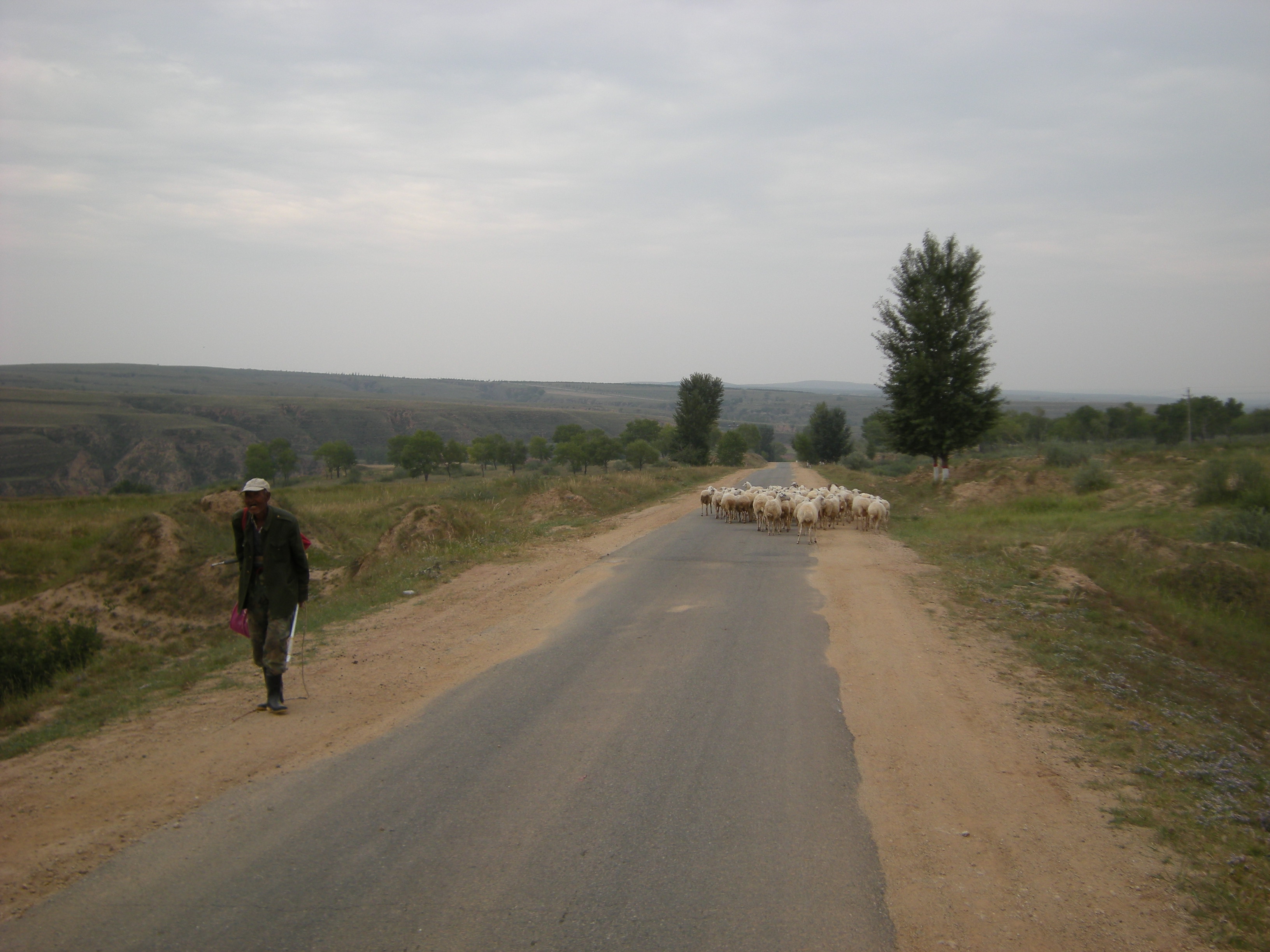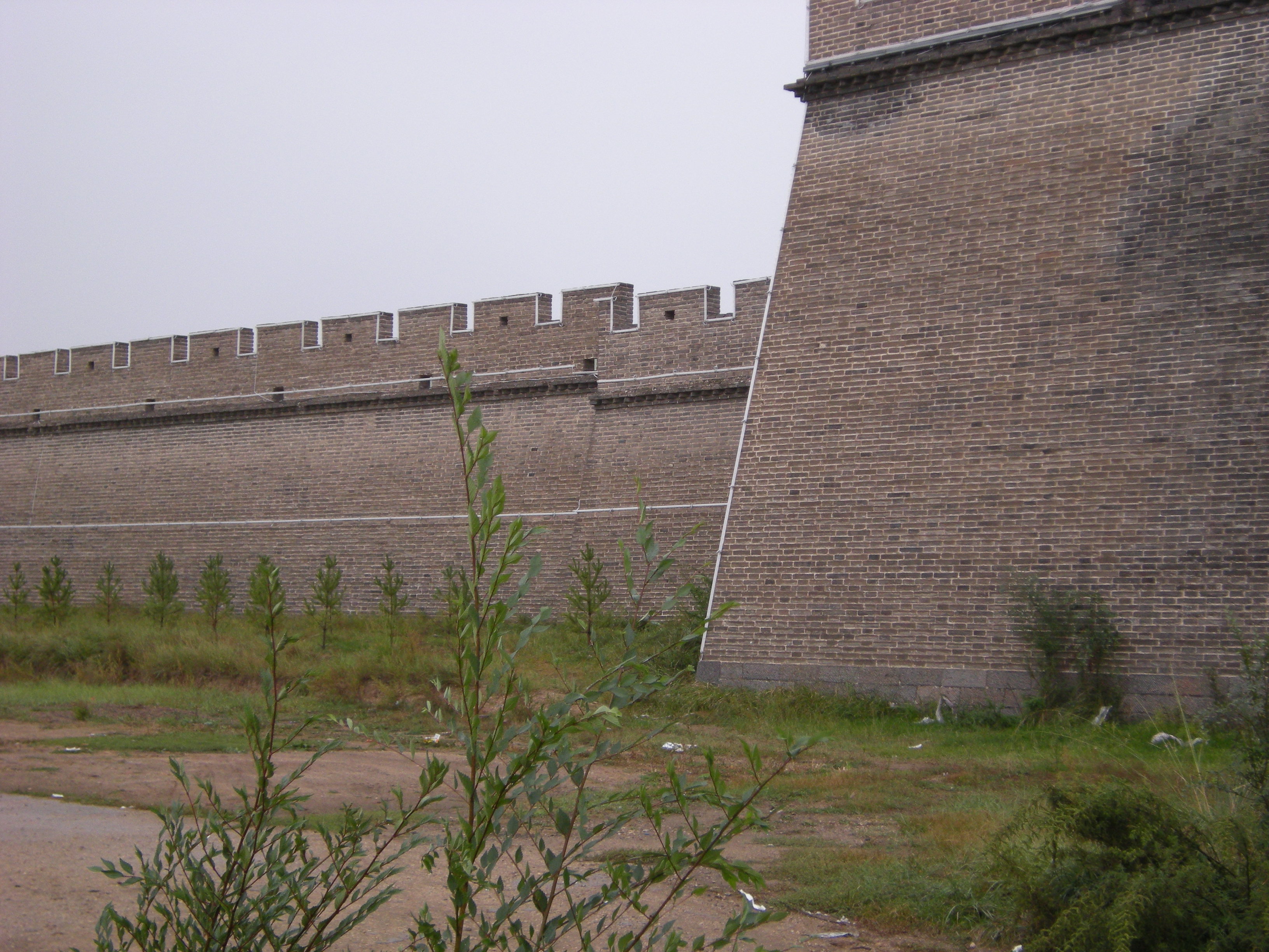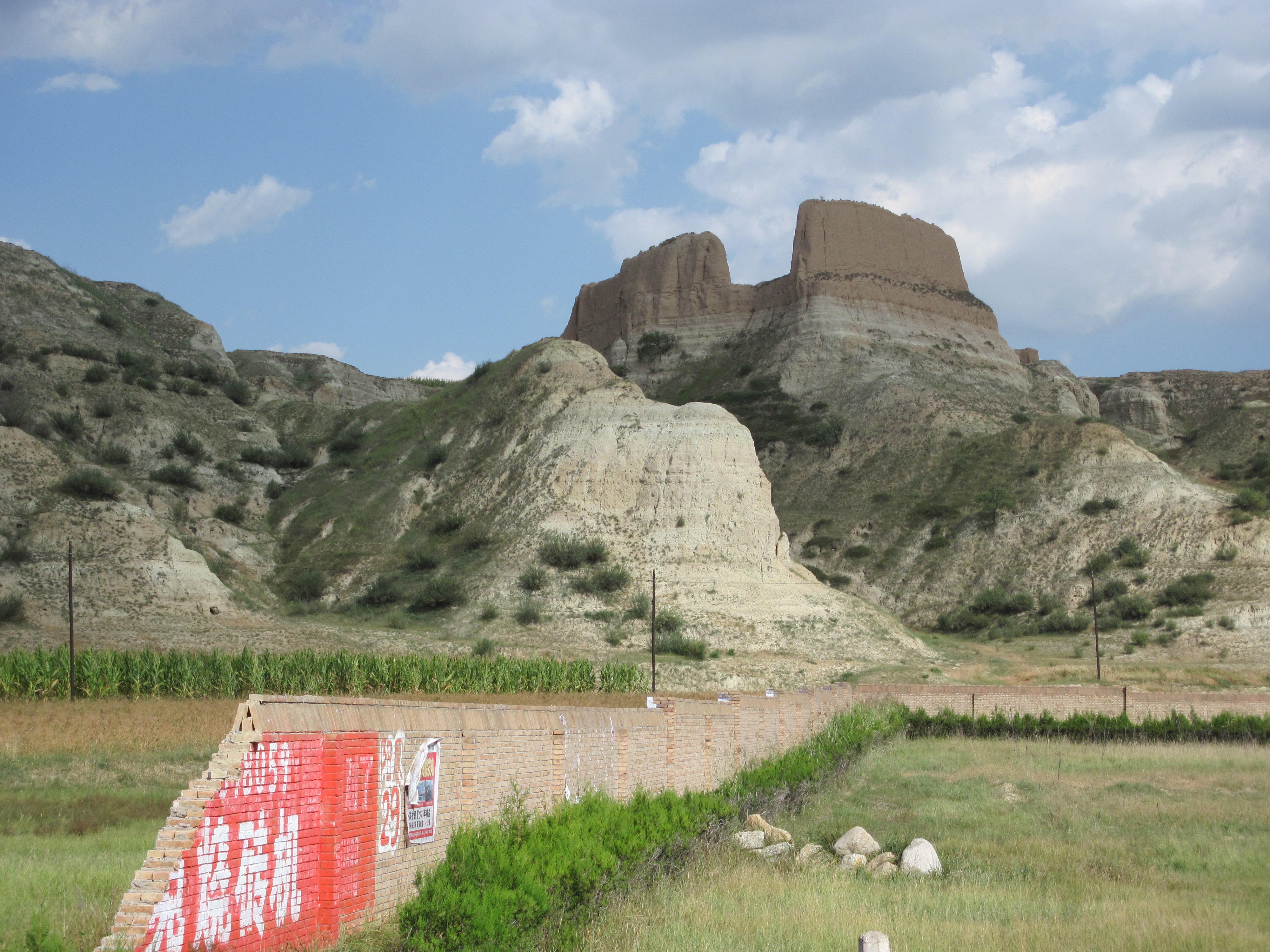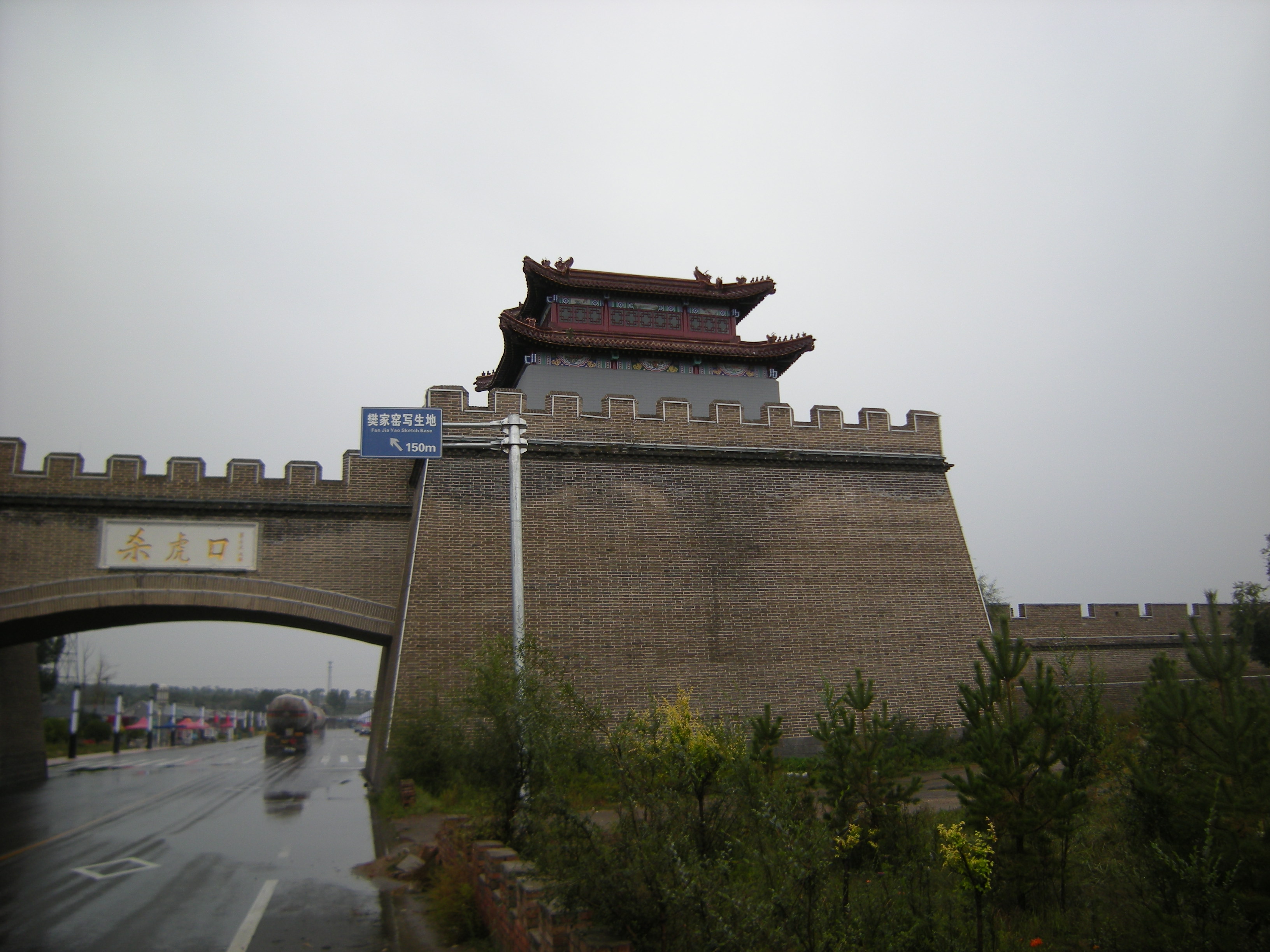 Vandaag gaan we proberen om over een dun rood weggetje vanuit Horinger langs de Ham Dynasty Tombs Murial en restanten van de Great Wall te fietsen. Via een klim fietsen we het stadje uit. We passeren in een dorpje een groepje met wat oudere mensen die staan de kijken bij een machine die wol aan het kaarden is. We kijken even mee en hebben dan natuurlijk weer volop belangstelling. Daarna fietsen we verder de bergen in die typische steile diepe kloven en spelonken hebben. Prachtig! Eindelijk zijn weer in een landschap, waarvoor we regelmatig afstappen om foto’s te maken. Plotseling pfff loopt mijn achterband leeg. Het lek zit bij de aanhechting van het ventiel en kan dus niet gerepareerd worden. Het achterwiel moet er dus weer uit en er moet een nieuwe binnenband in. Het gaat vlot maar we zijn er toch gauw weer een half uurtje mee bezig. Het is de hele dag al bewolkt en natuurlijk gaat het juist nu ook regenen. Jammer! Het is wel lekker fietsweer maar met wat meer zon maakt het landschap meteen wel veel mooier. In een bushalte tegen over een winkeltje eten we onze lunch op. Zoals gebruikelijk cakebrood met cola. Op de hellingen zien we veel herders met geiten en er wordt ook nog veel handmatige landarbeid verricht. Hier en daar zien we dat er zelfs weer wat hennep verbouwd wordt. Als we in Xindianzi aankomen moeten we de Tombs Murial ergens gepasseerd zijn zonder dat we ze gezien hebben. Het begint nu ook steeds harder te regenen en de regenjassen moeten aan. Borden langs de weg geven aan dat we Inner Mongolien verlaten en Xangi binnenfietsen en …. dat er een toeristische attractie op komst is. We fietsen een hoekje om en jaaaa daar is ie dan De Muur!!! We hebben ‘m gevonden!! De Muur is hier tevens de toegangspoort voor het dorpje Shahukou. Binnen de Muur ligt een grote parkeerplaats voor een museum. Vanwege het weer gaan we eerst maar eens bij het museum binnen. Helaas is alle informatie in het Chinees en dus lopen we vrij snel langs de archeologische vondsten die er tentoongesteld zijn. Dan op naar de Muur. Als we eenmaal op de muur staan is het met de euforie vrij snel gedaan. De Muur is hier duidelijk helemaal opnieuw gebouwd. Waarschijnlijk heeft het zijn glorietijd als toeristische attractie ook al een tijdje achter de rug. Er liggen nog restanten van ledverlichtingsslangen te slingeren en er zijn nauwelijks bezoekers. Op de grote parkeerplaats staan slechts een paar auto’s en de vele winkeltjes zijn veelal gesloten. We hebben het dus gauw gezien. Bij het uitfietsen van het dorp komen we langs een politiestation. Ik vraag daar aan een agent of er misschien een hotel in de buurt is. Blijkt dat we er zowat voor de deur staan. Door een poort rijden we langs een restaurant het terrein op en komen dan bij een hotel aan dat er wat verloren en verwaarloosd bij staat. Er zit ook helemaal niemand achter de balie. Als we het hotel weer uitlopen komt er een meisje aangelopen. Ja hoor er is voor ons nog wel een tweepersoons kamer vrij en die gaat ons 128 Yuan kosten. Na deze informatie loopt ze weg. We hebben geen idee waarom tot ze even later terug komt met een uitgewerkte rekening. Paspoort of verdere informatie heeft ze niet nodig. De kamer ziet er redelijk uit en wij zijn waarschijnlijk de enigste gasten. Als we willen douchen blijkt dat er geen warm water is. Er is wel een restaurant waar we met hulp van een menu met foto’s en zelfs een Engelse beschrijving ons maaltje uit kunnen kiezen. Het wordt rijst met een paddenstoelenmix en een salade. We hebben goed gegeten en ik drink er nog een lekker biertje bij. Als we tegen de serveerster, die ook de receptie van het hotel doet, zeggen dat er geen warm water op de kamer is reageert ze heel laconiek met Oh ja inderdaad dat klopt ja. Er is geen warm water! Alsof dat de normaalste zaak van de wereld is. Terug op de kamer krijg ik van Sheng het bericht dat ze ons in Peking wel rond wil leiden en dat we even door moeten geven wat we graag willen gaan zien. Via email ontvang ik de rouwkaart van Ad. Hij wordt komende maandag in Tilburg gecremeerd. Frans Verouden zal daar Ad’s lied zingen uit de Rock opera Le Moulin Rouge. Nadat ik me nog vlug even koud gedoucht heb videochat ik nog even heel kort met Peet want de verbinding is slecht en Wytze ligt al op 1 oor.