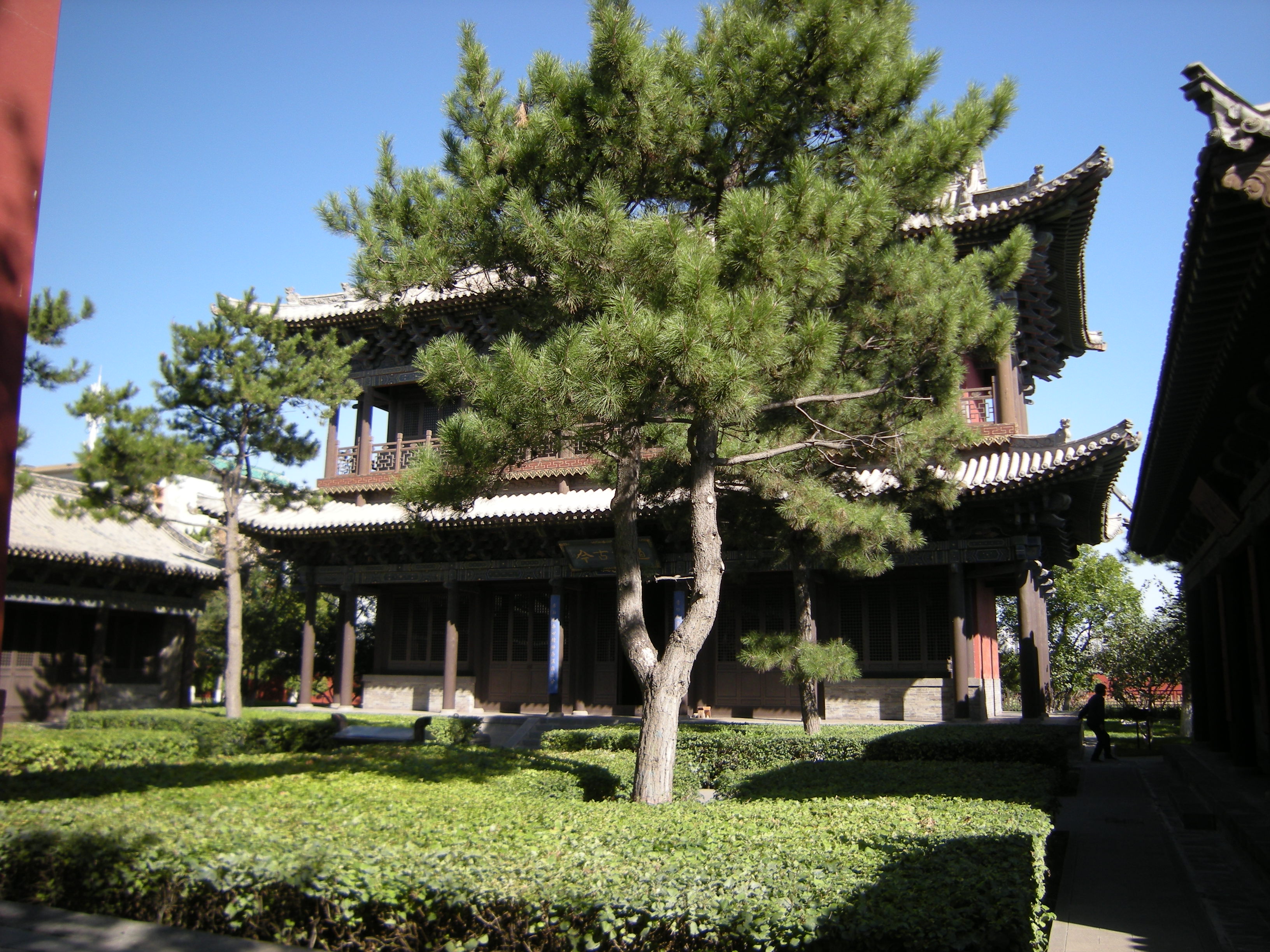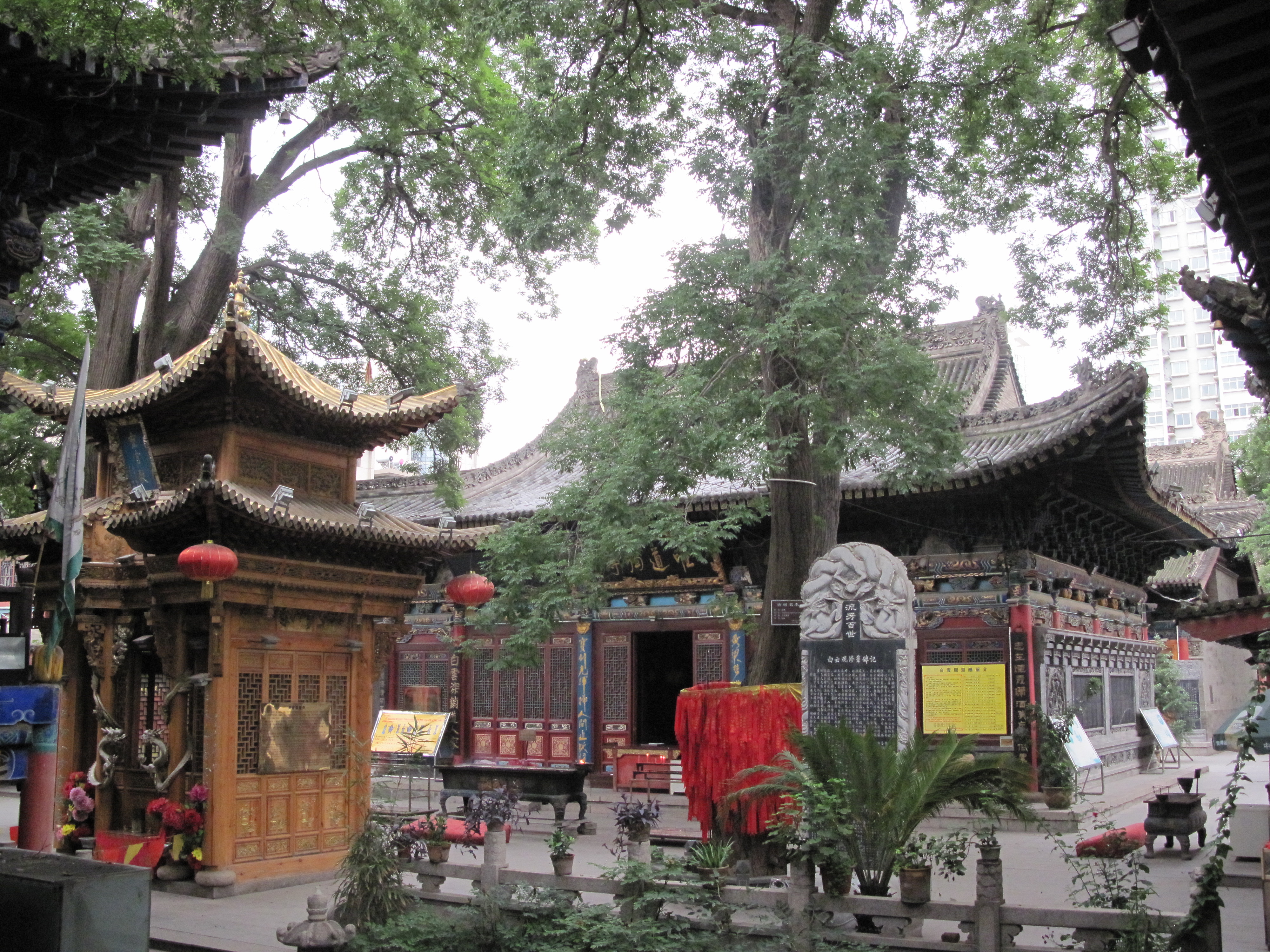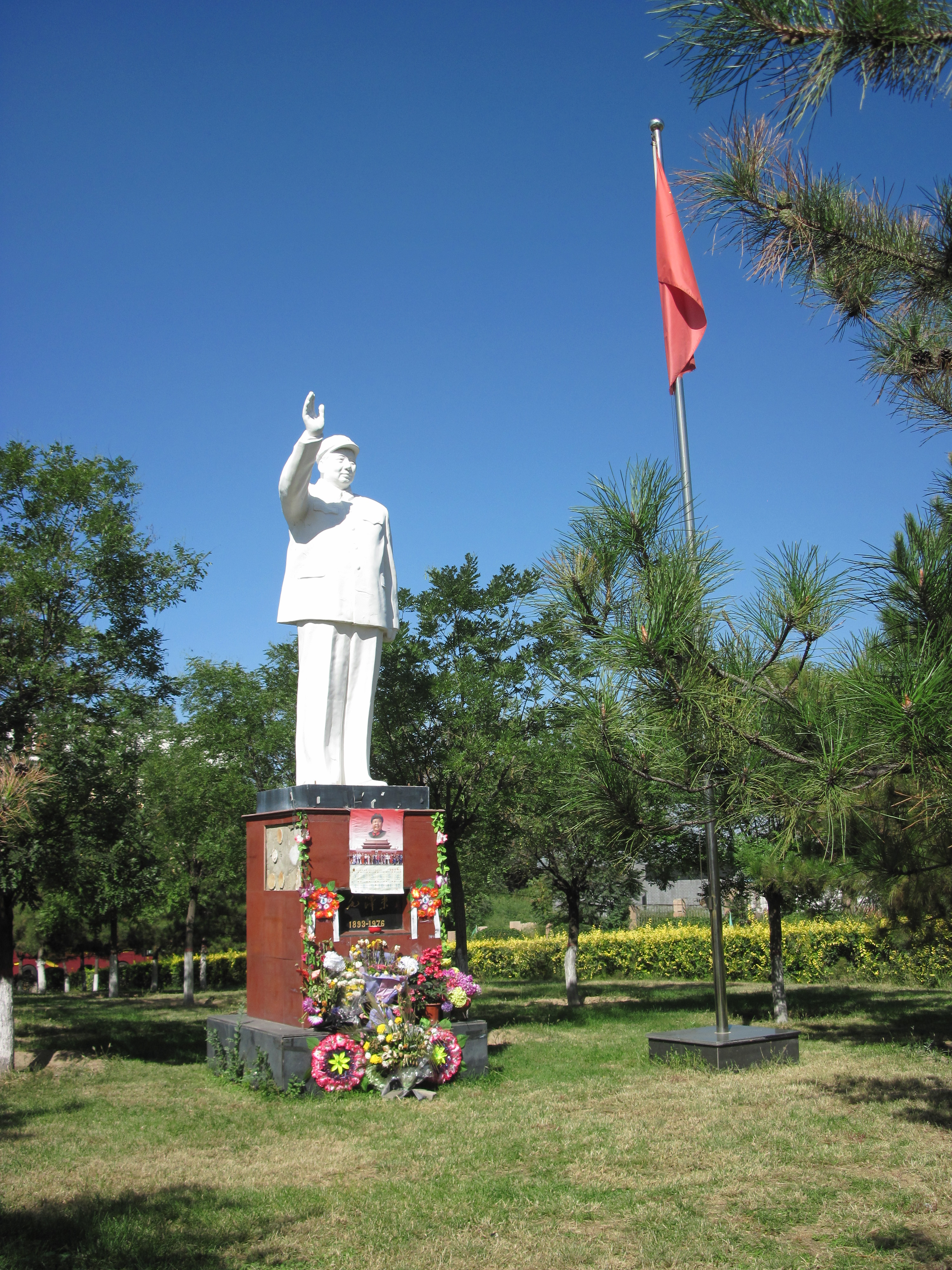 Ons ontbijt hebben we gisterenavond al in een buurtwinkeltje gekocht. We starten de dag dus op de kamer met koffie en een fruitbread. Nog even pinnen en dan gaan we opzoek naar een oude wijk van Datong waar we nog een oude tempel zouden moeten kunnen vinden. De oude wijk is helemaal omgeven door een hoge stadsmuur. Via een poort in de muur komen we waar we willen zijn. Langs de weg naar de oude tempel staan kleine monumentale huisjes die opgetrokken zijn uit donkergrijze bakstenen. Tegenover de tempel wordt op een plein weer flink gedanst. Daarna gaan we naar de tempel waar we op vertoon van onze ID-kaarten vanwege onze leeftijd gratis in mogen. Het bezoek aan de mooie tempel levert ons niets verrassends op dus is ons verblijf maar kort van duur. Voor we Datong definitief uit fietsen willen we ook nog een bezoek brengen aan een standbeeld van Mao dat in een park langs onze route naar de 109 zou moeten staan. We moeten er nog wel naar vragen maar vinden het daarna wel. De grote kleine leider staat er maar wat verwaarloosd bij. Er ligt nog wel een bosje plastic bloemen aan zijn voeten maar er groeit ook al wel heel veel onkruid rond zijn sokkel. Met veel moeite komen we daarna uiteindelijk op de 109 uit. De GPS stuurt ons namelijk over niet meer bestaande wegen door een groot uitbreidingsplan van Datong waardoor we een beetje op het gevoel de goede kant op hopen te fietsen. Door in-en uit- te zoomen op de GPS kan ik dat wel een beetje in de gaten houden maar Wytze gunt me er de tijd niet voor en fietst maar door. Mijn aanwijzingen van de GPS om op een kruising rechtsaf te gaan gelooft hij niet en dus vraagt hij het liever bij een benzinestation. Uit de aanwijzingen van de man begrijpt hij dat we pas bij de volgende kruising rechtsaf moeten. Hoewel ik dat niet geloof fiets ik dan toch maar achter hem aan tot we inderdaad blijkt dat we op een doodlopende weg aan het fietsen zijn. Al klunend en over ’n vangrail klimmend kunnen we toch nog terug komen op de weg die mijn GPS eerder aangegeven heeft. Het blijft me frustreren dat Wytze mijn aanwijzingen maar niet serieus kan nemen. Ook vandaag fietsen we weer langs mooie oude dorpjes door een mooi landschap. Langs de weg ook wel weer veel goed onderhouden bermperken met wilgjes en heesters die overal met pompen en slangen voorzien worden van voldoende water. Om half 5 zijn we in Yangyuan waar het eerste hotel dat we aandoen ons niet wil hebben, het tweede en derde wegens een verbouwing dicht zijn en we uiteindelijk terecht kunnen in het vierde. Maar ook daar loopt niet alles vanwege wat communicatieproblemen niet helemaal vlekkeloos. Er ontstaat een misverstand waardoor we op een gegeven moment twee deurpasjes krijgen voor 2 kamers. Het duurt even voor we dat we dat weer rechtgezet hebben. Eten doen we ’s avonds bij een fastfood Chinees met frites, rijst met vlees en een kipburger. Op de weg terug naar het hotel scoren we nog een ijsje en een lekker blikje bier.