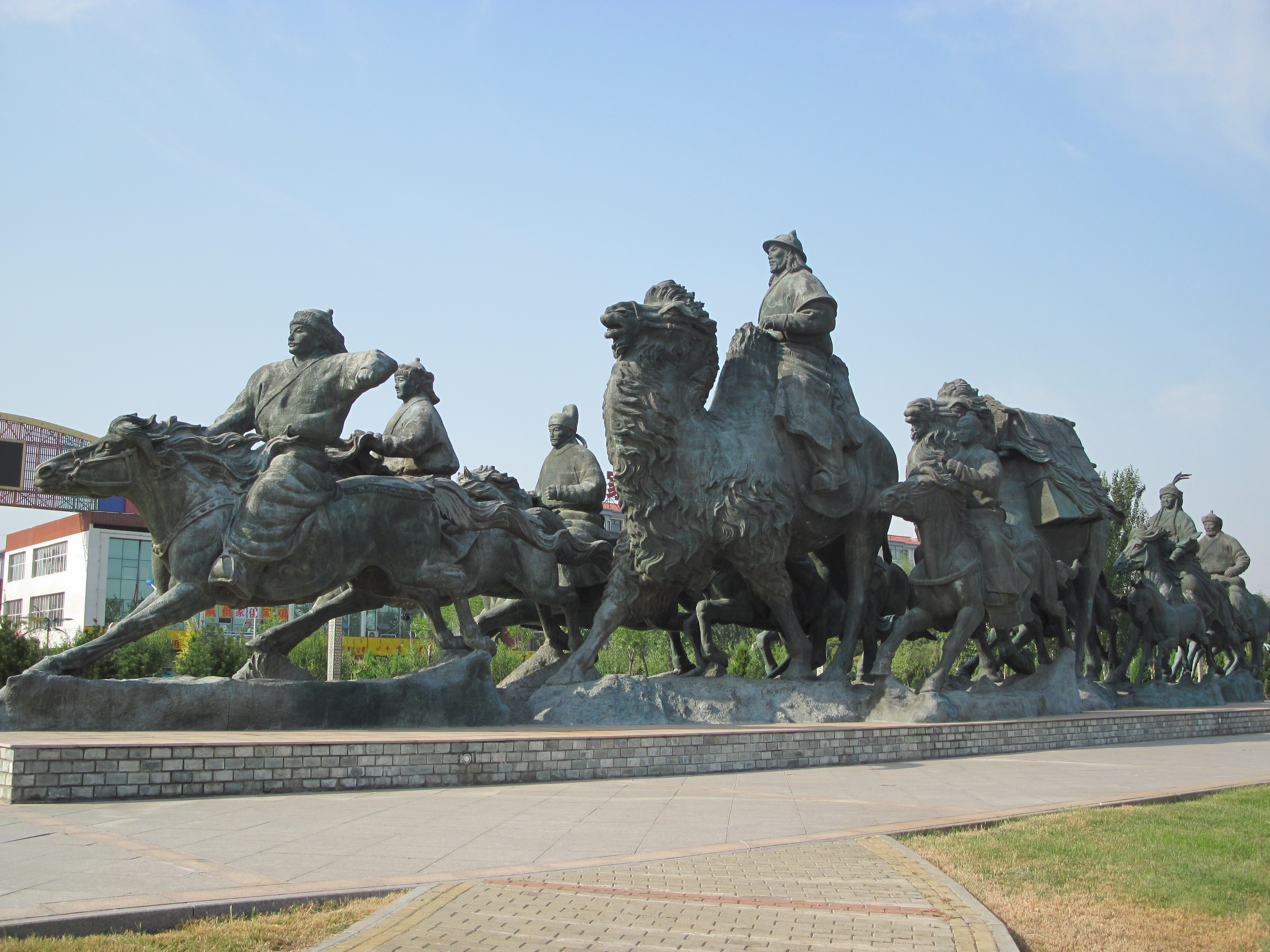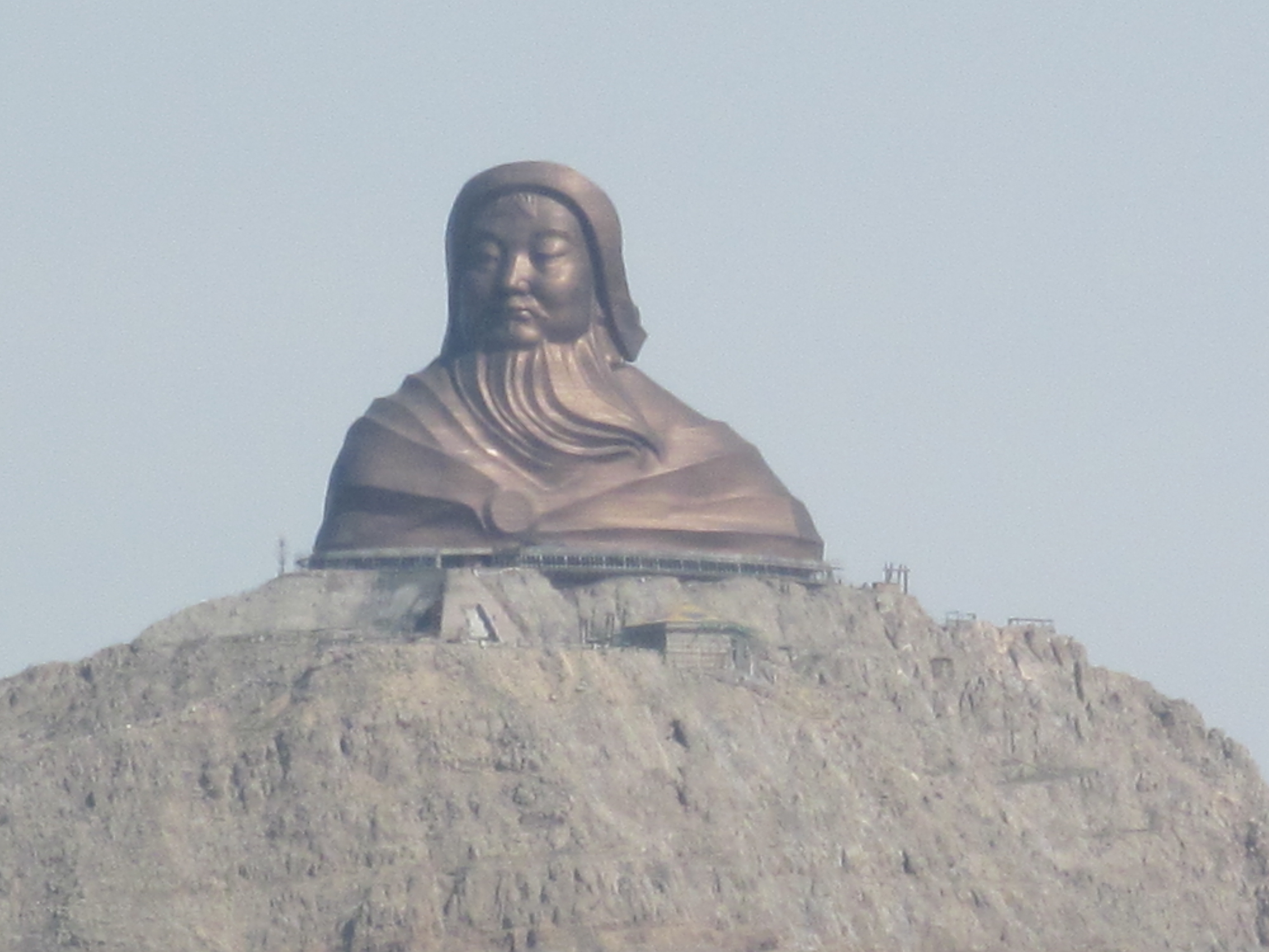 Wytze kreeg vannacht om 5 uur een blaffende hoestbui dus zijn we allebei al vroeg wakker. Om 8 uur sta ik toch maar op want van slapen komt toch niets meer. We maken een kopje Nescafé en eten nog een broodje van gisteren. Met Maps.me en de GPS proberen we de gele weg naar Togtoh te volgen. Als we onderweg bij een winkeltje stoppen voor water en brood worden we in no time weer omringd door een hele hoop nieuwsgierige mensen. De route wordt er wat mij betreft niet mooier op. We rijden steeds verder weg van de bergen. Het landschap wordt door het vlakke en weidse karakter wat mij betreft alsmaar saaier. Wytze daarentegen zegt dit een ‘ideale’ omgeving te vinden!! De witte huisjes veranderen in oranje huizen en er wordt hoofdzakelijk mais verbouwd. Het lijkt soms wel of we door de Kempen rijden. Ik hoop maar dat we straks nog wel iets bijzonders zoals ‘de muur’ zullen vinden anders ga ik waarschijnlijk nog spijt krijgen dat we niet via Hohhot zijn gegaan. Buiten dat we grote hopen met grote brokken steenkool passeren zien we op onze route niets spectaculairs. In Togtoh vinden we met wat moeite het via Ctrip geboekte hotel. Het ligt helemaal buiten de stad. We passeren een langwerpig park waarin een enorme bronzen beeldengroep van Genghis Kahn staat. Voor ons avondeten kunnen we ook in het hotel terecht. We krijgen een plekje in een zijzaaltje waar even later ook een hele horde Chinese toeristen met hun bagage neer zal strijken. Hoewel ik niet het eten krijg wat ik besteld dacht te hebben smaakt het me toch wel goed. Na het eten gaat Wytze nog even een blokje om en ga ik proberen of ik Peet kan bereiken want op mijn E-mail lees ik in een bericht van Loes dat Ad Hoeven overleden is!! Ik lees dat hij overleden is tgv van complicaties na een darmoperatie. Ik krijg Peet wel te pakken maar die zit in de auto en is duidelijk aangeslagen dus videochat ik nog een keer als ze thuis is. Ze vertelt dat er bij Ad darmkanker geconstateerd was en dat hij daar gisteren aan geopereerd is maar dat er bij het aanleggen van een stoma een niet te stoppen bloeding ontstaan is waardoor hij een hartstilstand gekregen heeft. Hij is op de operatietafel overleden. Ook bij Toos van Deursen is veel verdriet na het overlijden van haar schoonzus en Thamila heeft een klaplong opgelopen en die ligt ook nog in het ziekenhuis. Ze heeft het er maar druk mee en is als voorzitter en vriendin heel emotioneel betrokken bij al die vervelende gebeurtenissen. Als ze het maar volhoudt!! Voel me nu toch wel heel ver weg en machteloos. Ik videochat om 23.00 met Faas. Hij zal Peet in de gaten houden. Ik zet vandaag maar niets op Facebook er zijn belangrijkere dingen in het leven dan mijn reis naar Peking.