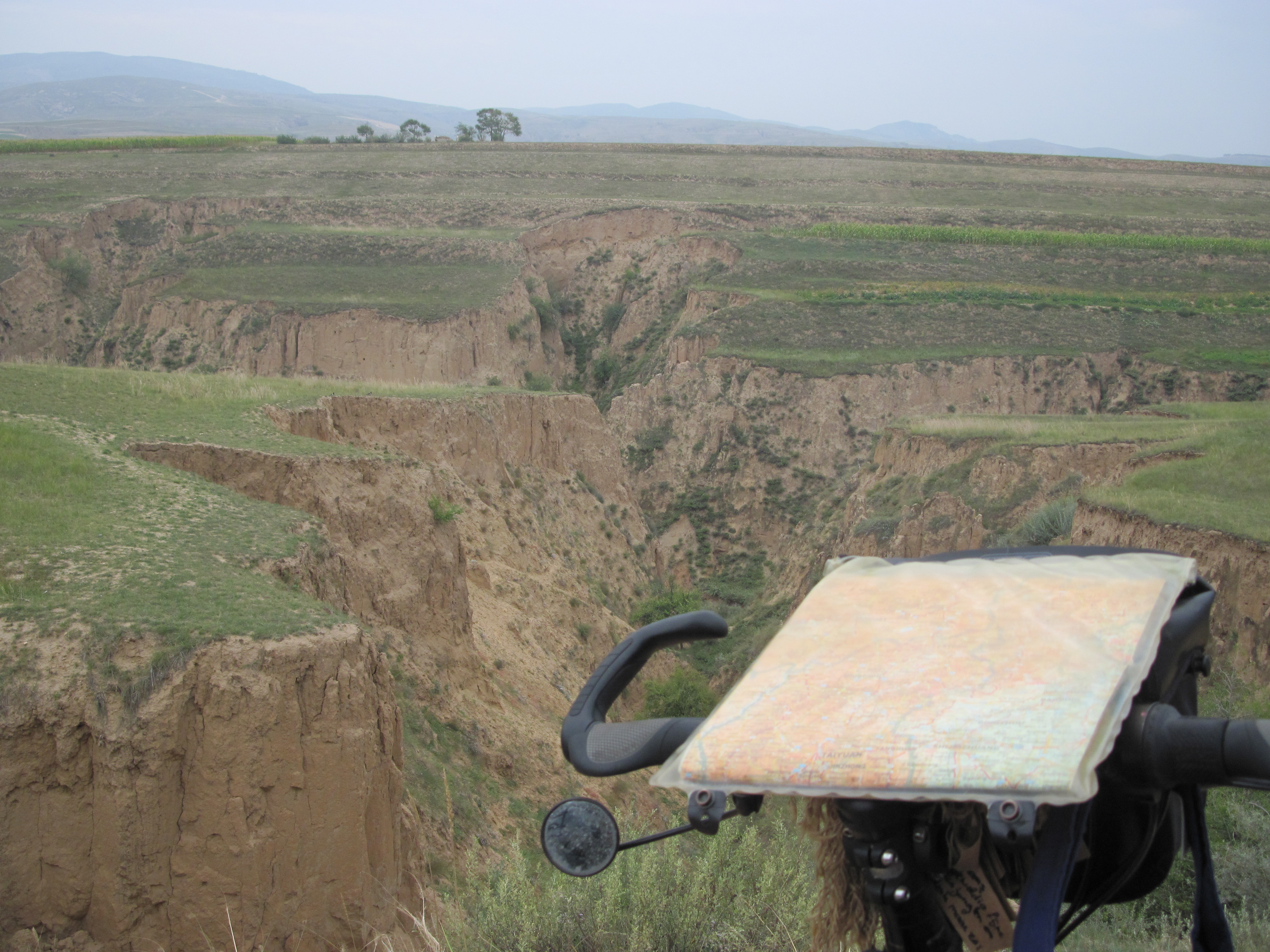 Om weg 109 weer terug te vinden is toch moeilijker dan we gisteren dachten. We fietsen eerst weer naar de Gele Rivier maar komen dan toch iets te ver naar het oosten uit. Langs de rivier fietsen we dan eerst naar het westen en komen dan langs een parkje waar we 2 mannen bezig zien en horen die met een zweepje aan het tollen zijn. Even kijken dus. Iets verder kijken we nog even rond in weer een ander een park waar een heleboel watermolens staan. En dan zitten we eindelijk op de lang gezochte 109. We zijn Lanzhou nog maar amper uit of we komen op een opgebroken weg uit. Door de vele regen van gisteren is de weg een grote modderpoel geworden. Maar liefst 15 km ploeteren we samen met de autofile door de modder en diepe waterplassen. Eenmaal op de harde weg komen we langs een soort van autowasserette en laten we de modder van onze fietsen spuiten. Lang hebben we er echter geen plezier van want we komen een paar kilometer verderop opnieuw in de modder terecht. We proberen bij een tolstation de snelweg G6 op te komen maar worden daar helaas terug geroepen. Eerder stoppen gaat niet want we hebben in Baiyin een hotel besproken. Het landschap is overigens heel mooi met veel bergen waarin veel grotten in uitgehouwen zijn. Ook de weg in Baiyin is over een lengt van 2 km opgebroken, maar met maps.me komen we vrij soepel bij het gereserveerde hotel uit. We melden ons eerst bij de verkeerde receptie maar het personeel is zo vriendelijk om ons naar de goede balie te brengen in een ander gebouw. Als we ons daar melden kijkt het personeel wel even heel verbaasd en wat geschrokken. We zien er door het geploeter door de modder niet uit en onze fietsen en bagage al helemaal niet, maar we mogen toch blijven en krijgen kamer 518. We brengen onze smerige tassen met de lift naar de 5e verdieping maar worden daar opgevangen door iemand van de receptie. We moeten met onze smerige troep terug naar beneden en slapen blijkbaar toch in het gebouw waar we ons in eerste instantie gemeld hebben. Een heel gedoe dus ik ben blij als ik me uiteindelijk op het bed kan laten ploffen. Ik ben er moe van en heb hoofd- en keelpijn. Ik heb geen trek meer in eten en pak wat paracetamol, een paar capsules norit en wat keeltabletten en kruip onder de wol. Wytze gaat wel even eten en brengt nog een lekker fruitbrood voor me mee. Ik eet er toch maar een stuk van op en val daarna vrij snel in slaap.